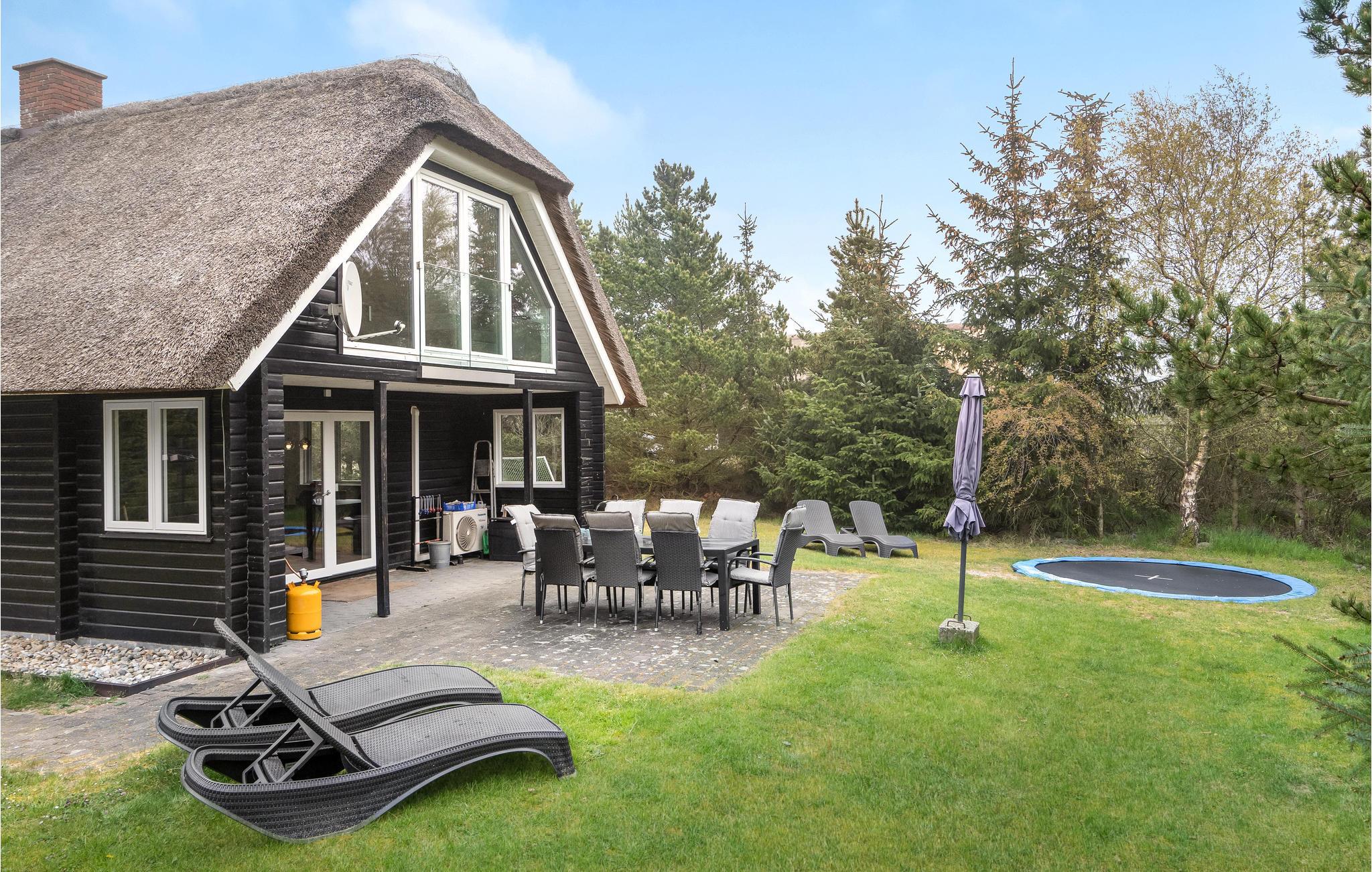 Gemütliches Ferienhaus mit Schilfdach, Whirlpool und Sauna in Blåvand, ideal für entspannte Tage und Aktivitäten.