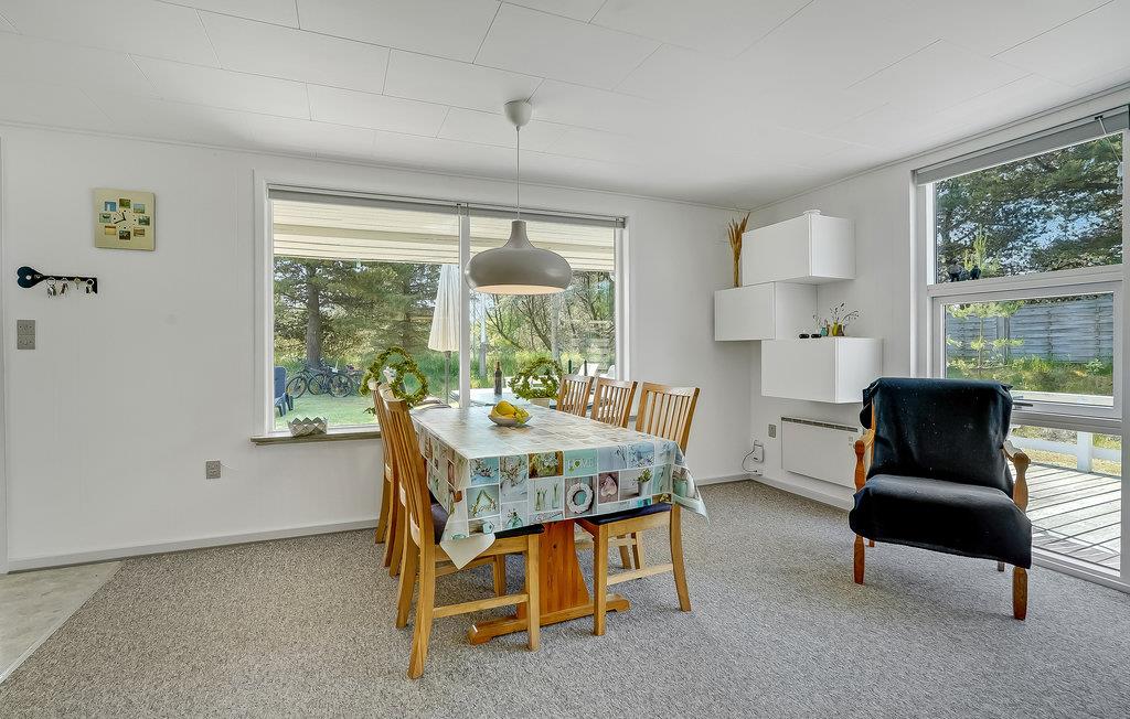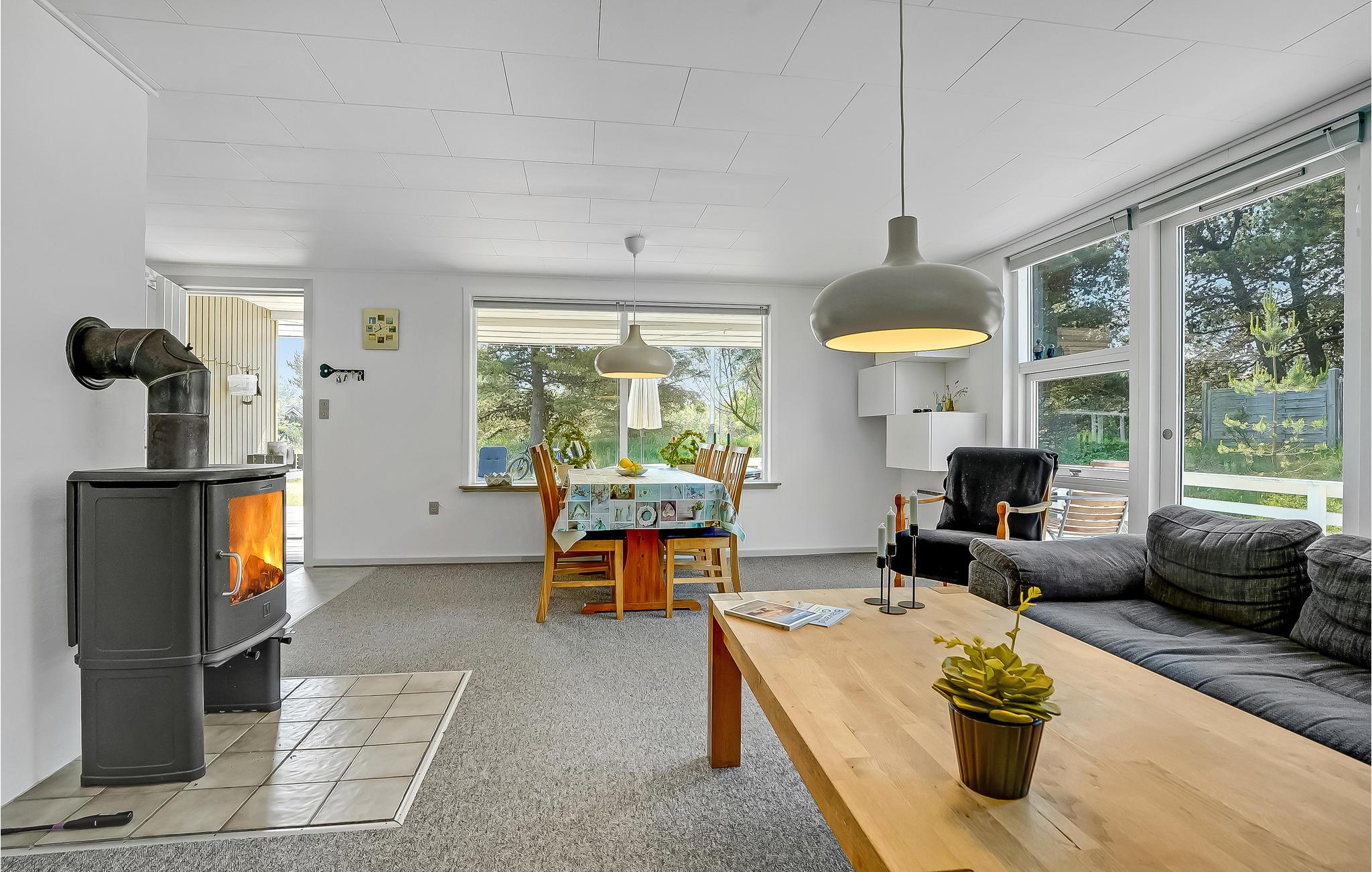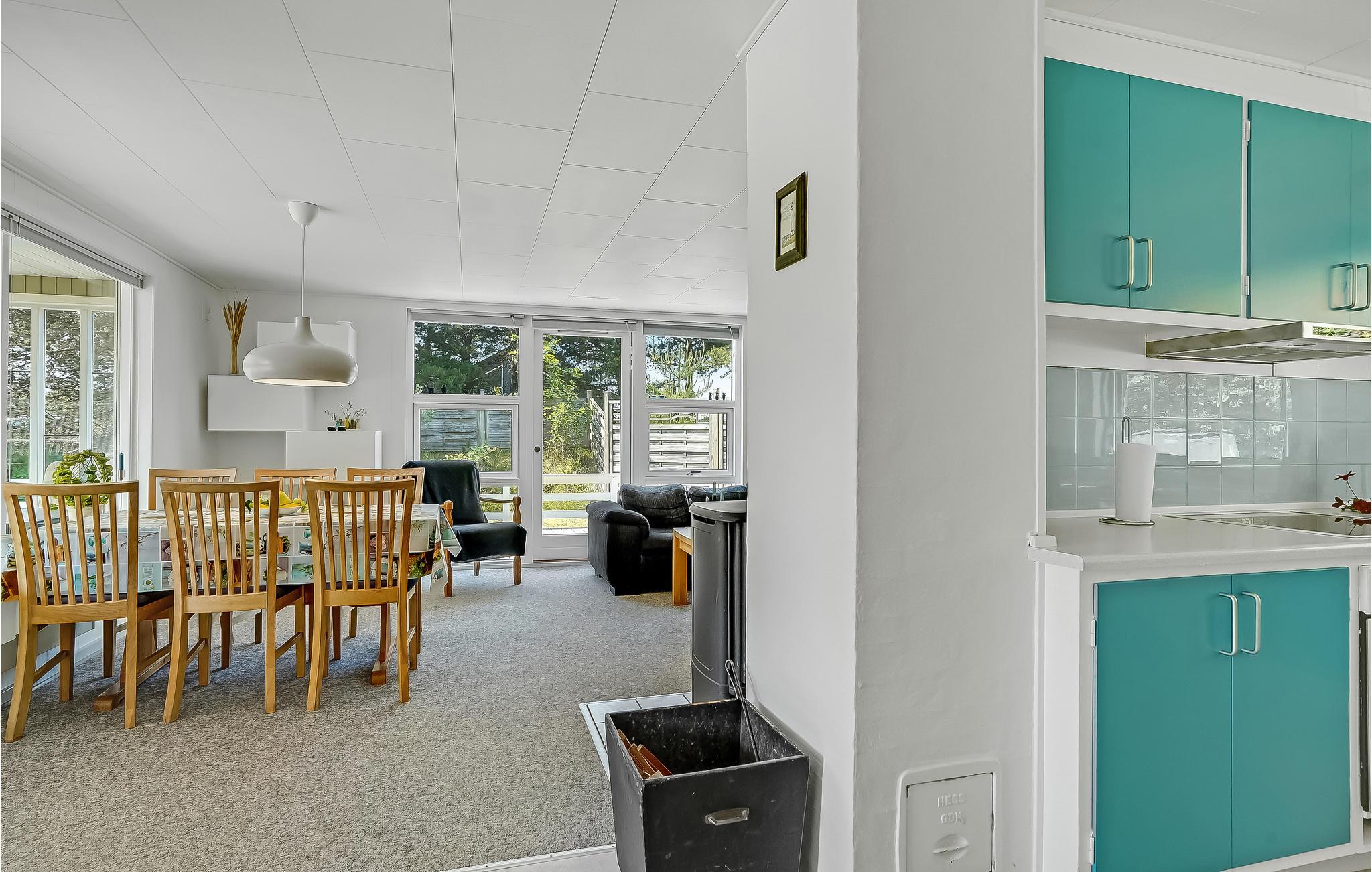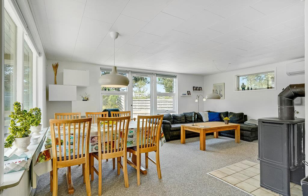 Nur wenige Gehminuten vom Zentrum von Blåvand entfernt, erwartet Sie dieses gemütliche, sandfarbene Holzhaus auf einem großzügigen Naturgrundstück. Hier finden Sie alles, was Sie für einen sorgenfreien Urlaub mit viel Zeit für die Familie und unvergesslichen Momenten in der Natur benötigen. Die großen Fensterfronten im Wohnzimmer lassen das Tageslicht hereinströmen und schaffen eine helle, einladende Atmosphäre. Im Küchenbereich können Sie gemeinsam mit den Kindern einen Kuchen backen, den Sie anschließend am Esstisch oder in der Sofaecke genießen, vielleicht bei einem spannenden Brettspiel oder einer unterhaltsamen Familienquizrunde.