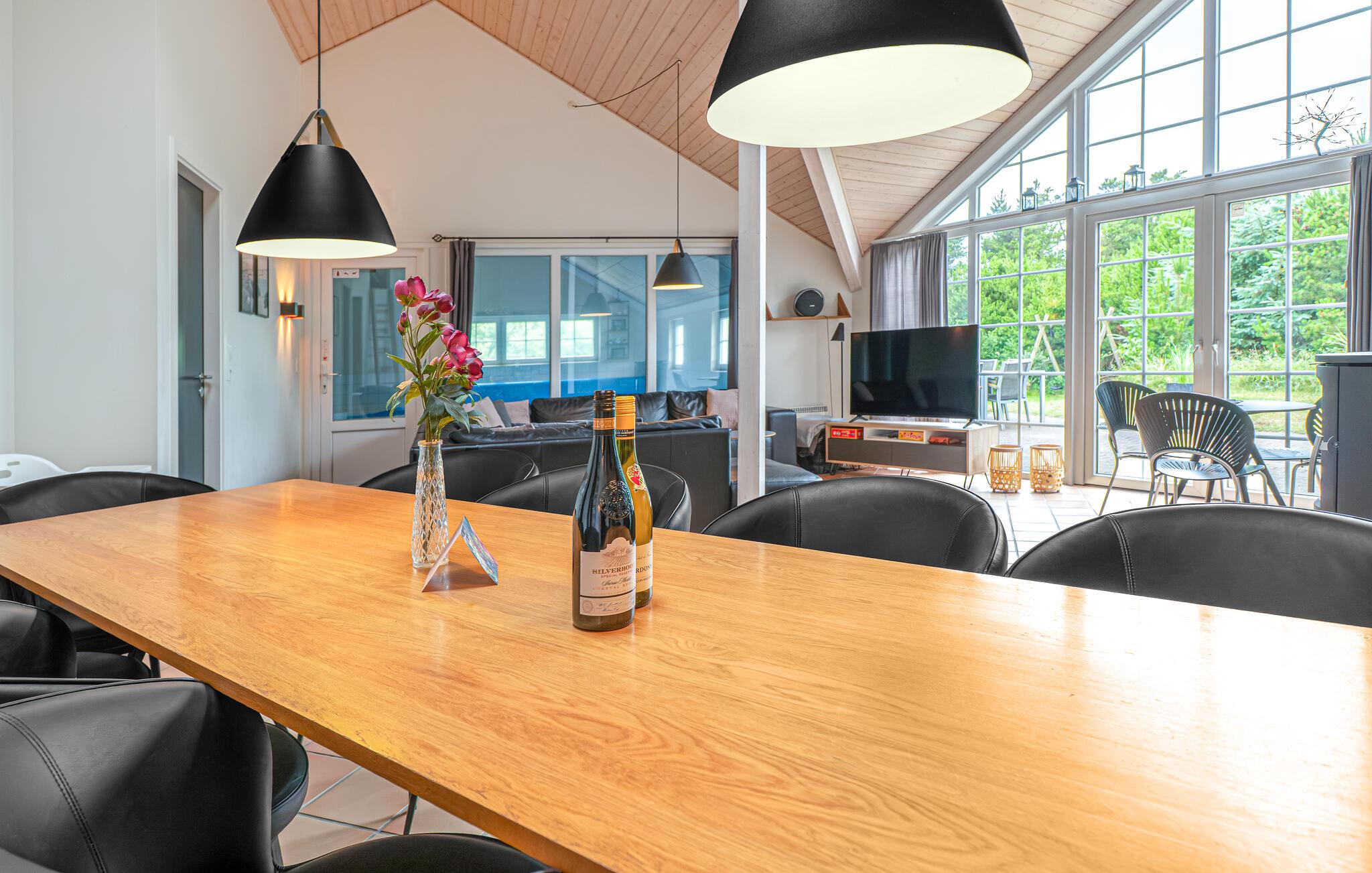 Ganz besonderes Ferienhaus, ein architektonisches Werk mit schiefen Winkeln undgutem Lichteinfall. Das Urlaubsgefühl unterstreichen auch die fünf Schlafzimmer und zwei Hemse, die für Ihre Kinder wie geschaffen sind. Einer besitzt Schlafgelegenheiten, der andere ist ein Spielzimmer. Großes, phantastische helles Wohnzimmer in der Mitte von Haus mit bis zum Giebel offener Decke und Dachfenstern. Freier Blick auf den Pool vom Wohnzimmer, das Zentrum des Urlaubsvergnügens. Hier liegen auch der Whirlpool und die Sauna. Draußen können Sie in vollen Zügen die Terrasse genießen, die fast das ganze Haus umschließt und den einen oder anderen Sonnenplatz bietet. Doppelter Carport gleich beim Hauseingang. Im Gehabstand sind der schöne Sandstrand, der Ort Blåvand und seine gute Auswahl an Geschäften zu finden.
