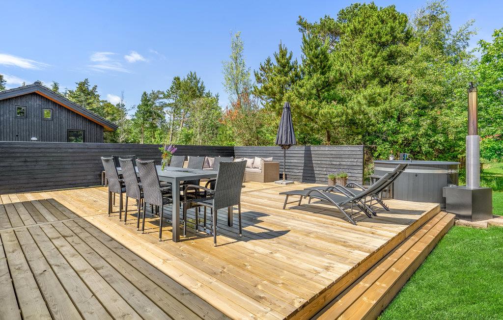 Draußen erwartet Sie ein schöner Außenbereich. Die riesige Holzterrasse strahlt Gemütlichkeit und Wohlbefinden aus, die den Rahmen für einen unvergesslichen Urlaub bilden können. Im Wildnisbad auf der Terrasse lässt sich ein wunderbarer Abend im herrlich warmen Wasser genießen.
