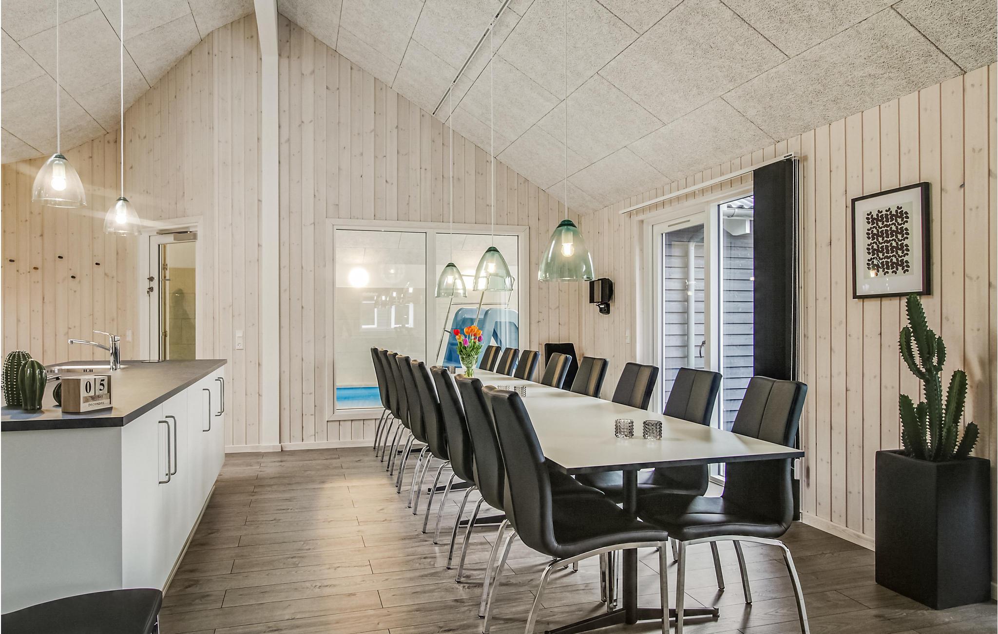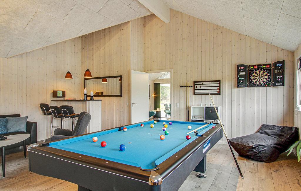 Dieses luxuriöse Ferienhaus liegt wunderschön in Blåvand und ist mit schönen Wellnesseinrichtungen wie einem Außenwhirlpool, einem Innenpool, einem Innenwhirlpool und einer Sauna ausgestattet. Das Haus bietet Platz für 18 Personen und 2 Haustiere. Im Schwimmbadbereich innen finden Sie einen Pool, der über eine römische Treppe, eine Wasserrutsche, ein Wasserpoolnetz und ein Gegenstromsystem verfügt. Hier können sich Wasserrattem den ganzen Tag über entspannen und planschen. Ihre Kinder werden den Aktivitätsraum lieben, hier finden Sie verschiedene Spieloptionen für jeden Geschmack: Billardtisch, Tischtennis, Tischfußball, Dart und PlayStation 4. Von der schönen Bar in der Ecke aus können Sie den Spielern kühle Getränke servieren und einen gemütlichen Abend verbringen.