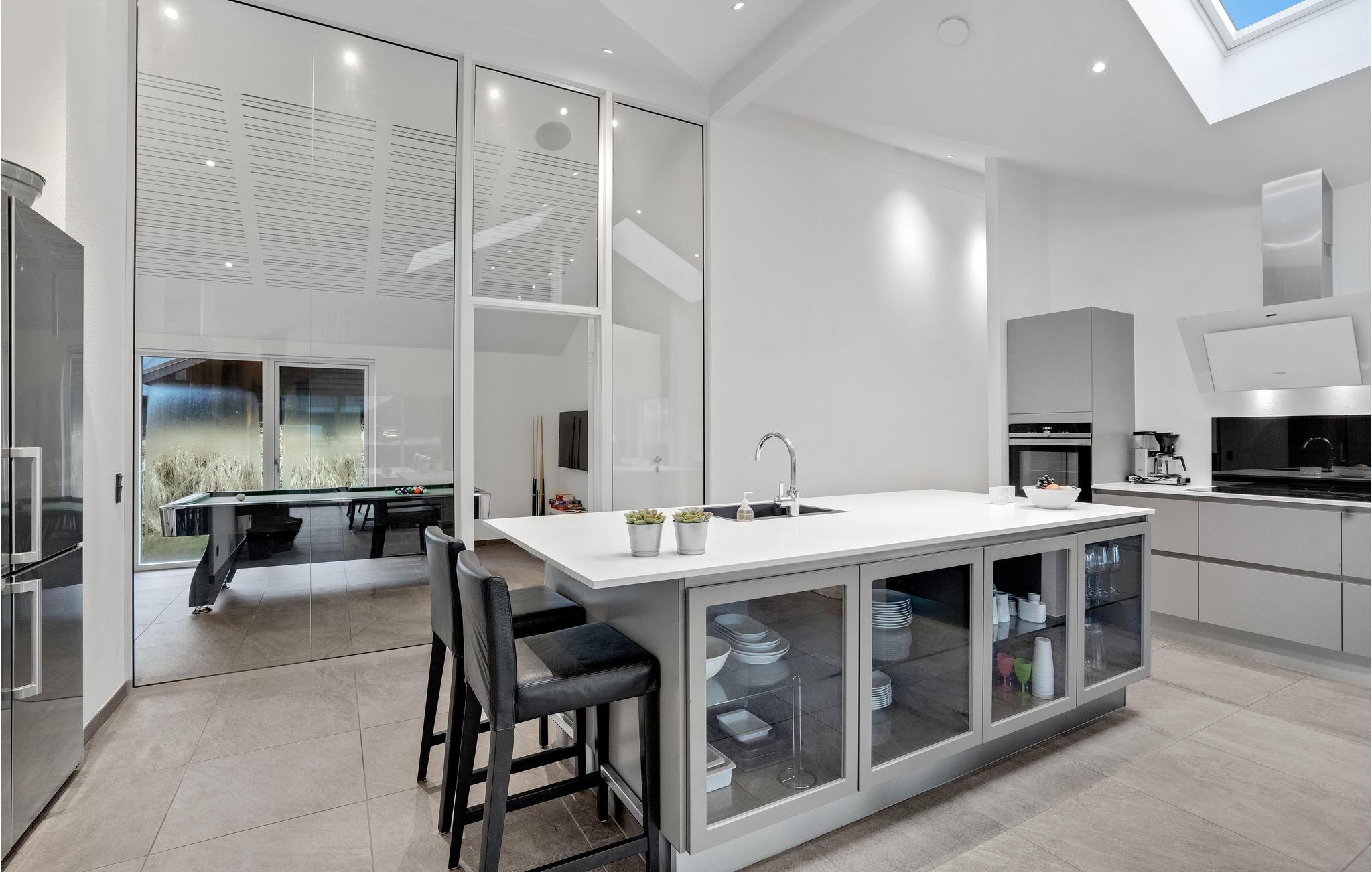 Das Haus empfängt Sie in guter Lage nur einen kurzen Spaziergang vom herrlichen Nordseestrand entfernt und bietet Ihnen alles, was für einen unvergesslichen Urlaub nötig ist. In den großzügigen, modern eingerichteten Räumen können Sie so richtig abschalten und den hektischen Alltag hinter sich lassen. Großflächige Fenster sorgen für einen schönen Einfall von Tageslicht. Genießen Sie die gemeinsamen Mahlzeiten bei fantastischer Aussicht, fordern Sie die anderen Familienmitglieder zu einer Partie Billard oder Darts heraus und entspannen Sie nach einem aktiven Tag in der Sauna oder im Whirlpool, bevor Sie es sich gemeinsam am Kaminofen gemütlich machen.
