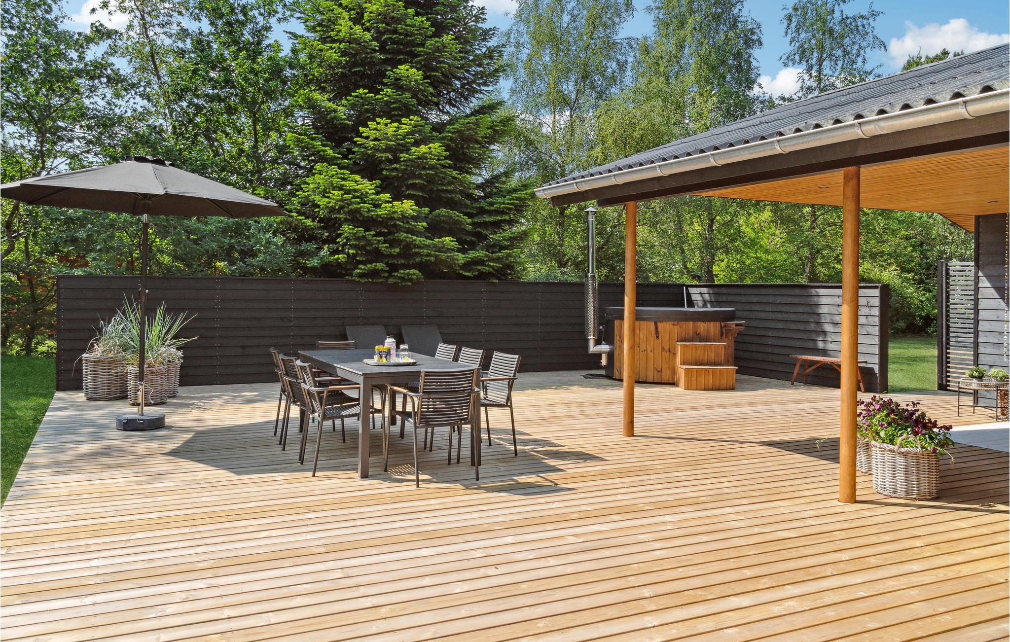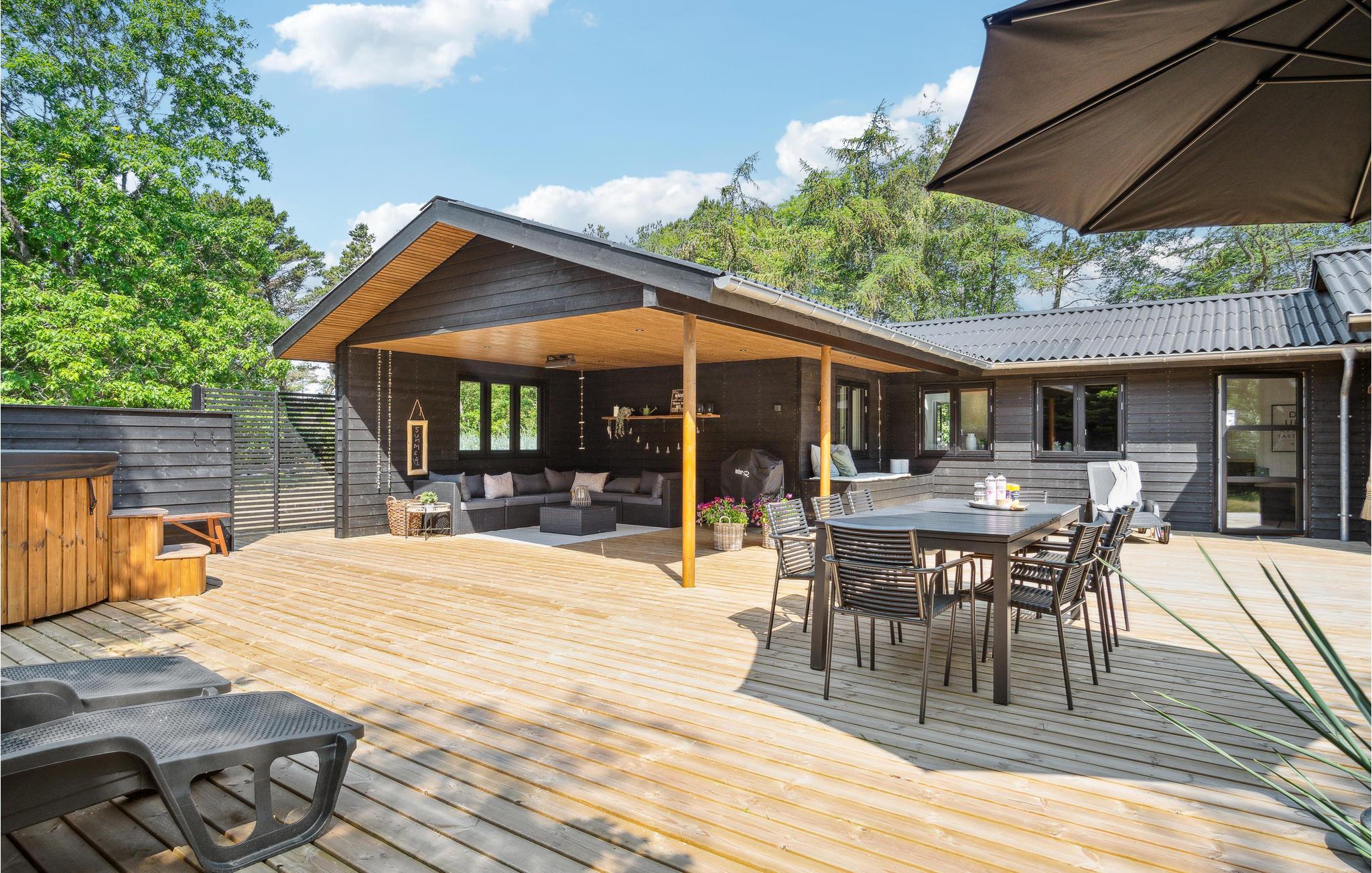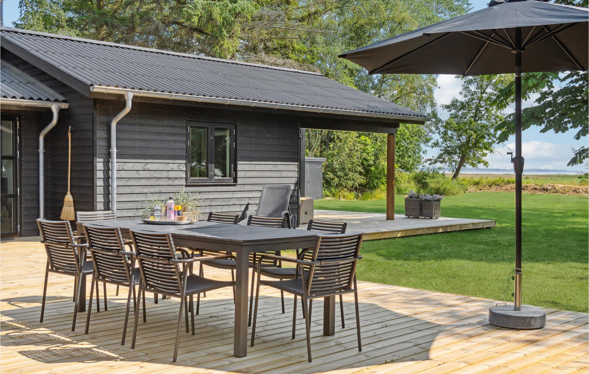 Willkommen in diesem einladenden Ferienhaus in ruhiger Lage. Verbringen Sie Ihren Erholungsurlaub gemeinsam mit Ihrer Familie oder befreundeten Paaren. Kommen Sie hier zusammen und fühlen Sie sich wohl. Der große und offenen Wohnraum, wird zum natürlichen Treffpunkt Ihrer Familie oder Reisegruppe und vereint das Kochen in der modernen Küche, das Beisammensein und Spielen am Esstisch und das Relaxen auf dem Sofa. Hier können Sie nicht nur Ihre Lieblingsfilme ansehen, sondern auch den Ausblick durch das große Fenster genießen. Treten Sie auch hinaus auf die teilweise überdachte Terrasse und genießen Sie Ihren Morgenkaffee mit Blick auf die Bucht.