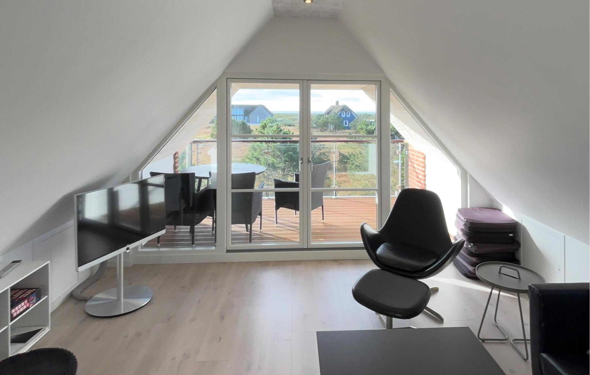 Stilvolles Ferienhaus in Blåvand mit Panoramablick auf Dünen und Meer, Sauna, Whirlpool und großzügigen Terrassen.