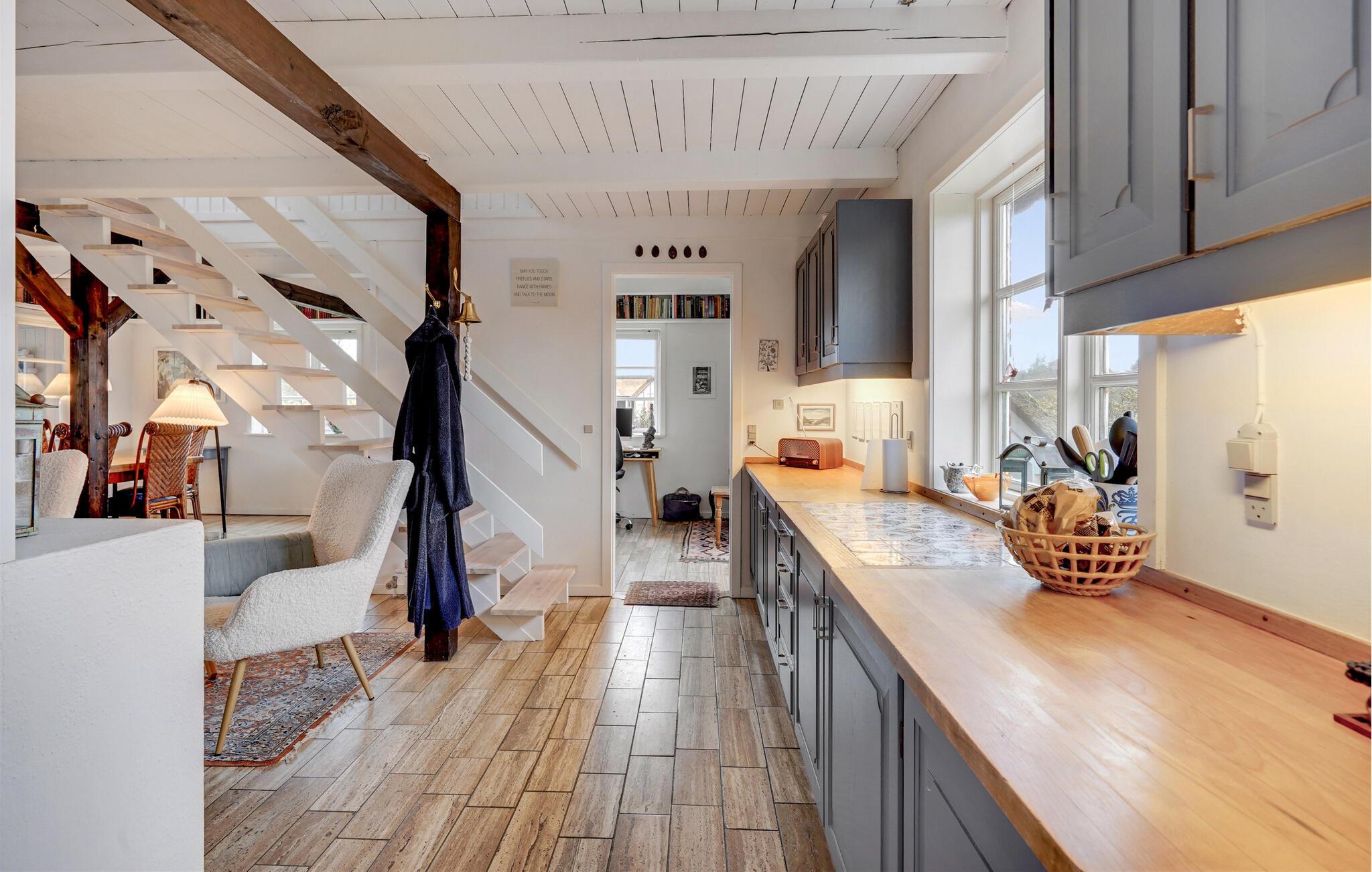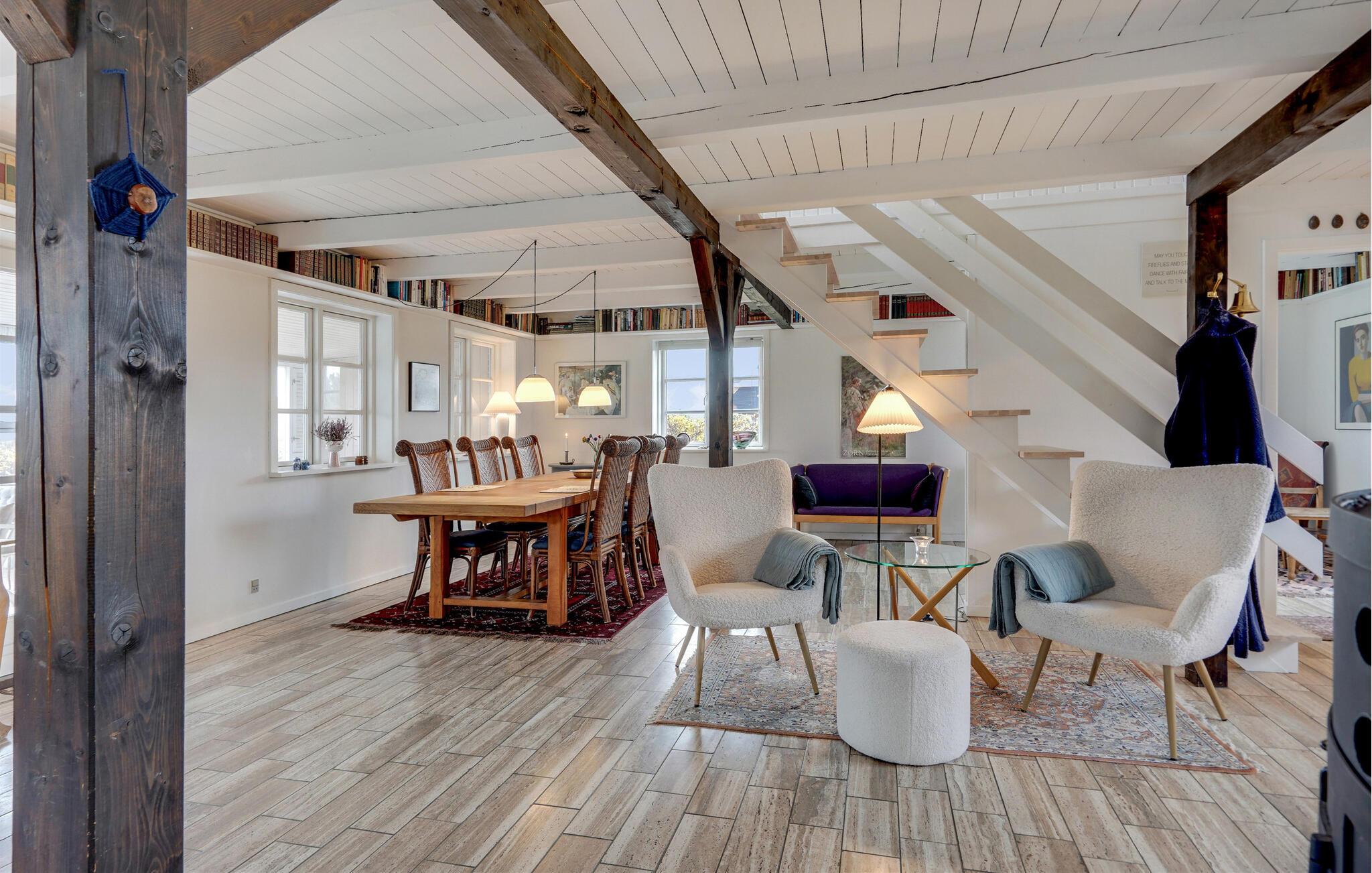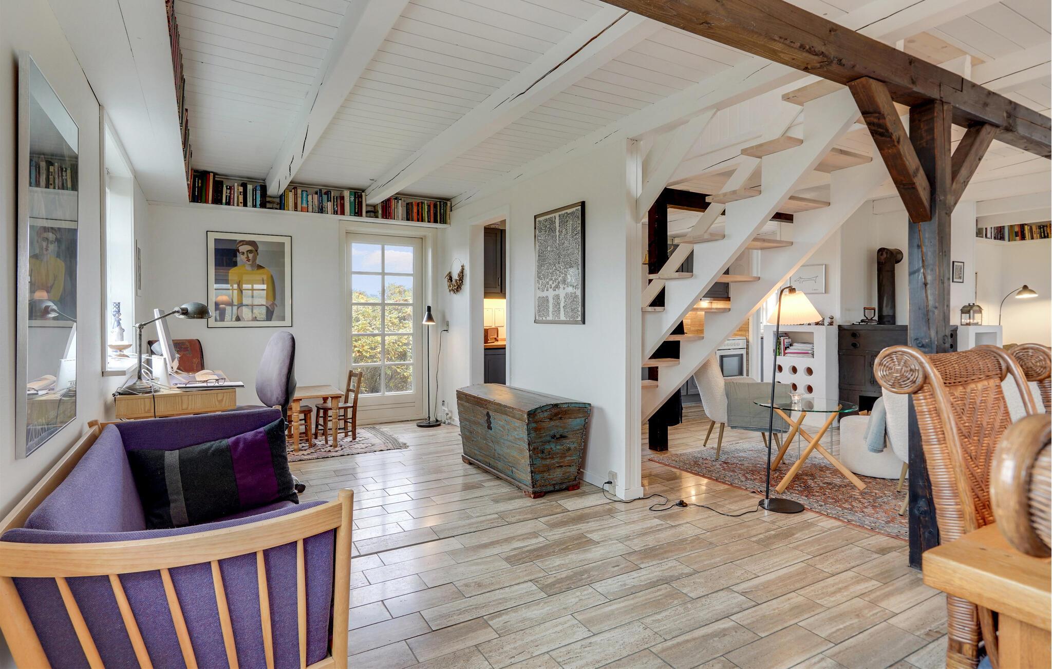 Dieses Haus besticht nicht nur durch seine Lage in erster Reihe zum Meer, sondern auch durch sein historisches Flair und seine liebevolle Gestaltung. Holzbalken, ein imposanter Kaminofen und eine bequeme Sofalandschaft schaffen eine Atmosphäre, in der Sie schnell in den Urlaubsmodus kommen. Lehnen Sie sich mit einem Kaffee zurück, vertiefen Sie sich in ein gutes Buch oder verbringen Sie einen gemütlichen Spieleabend.