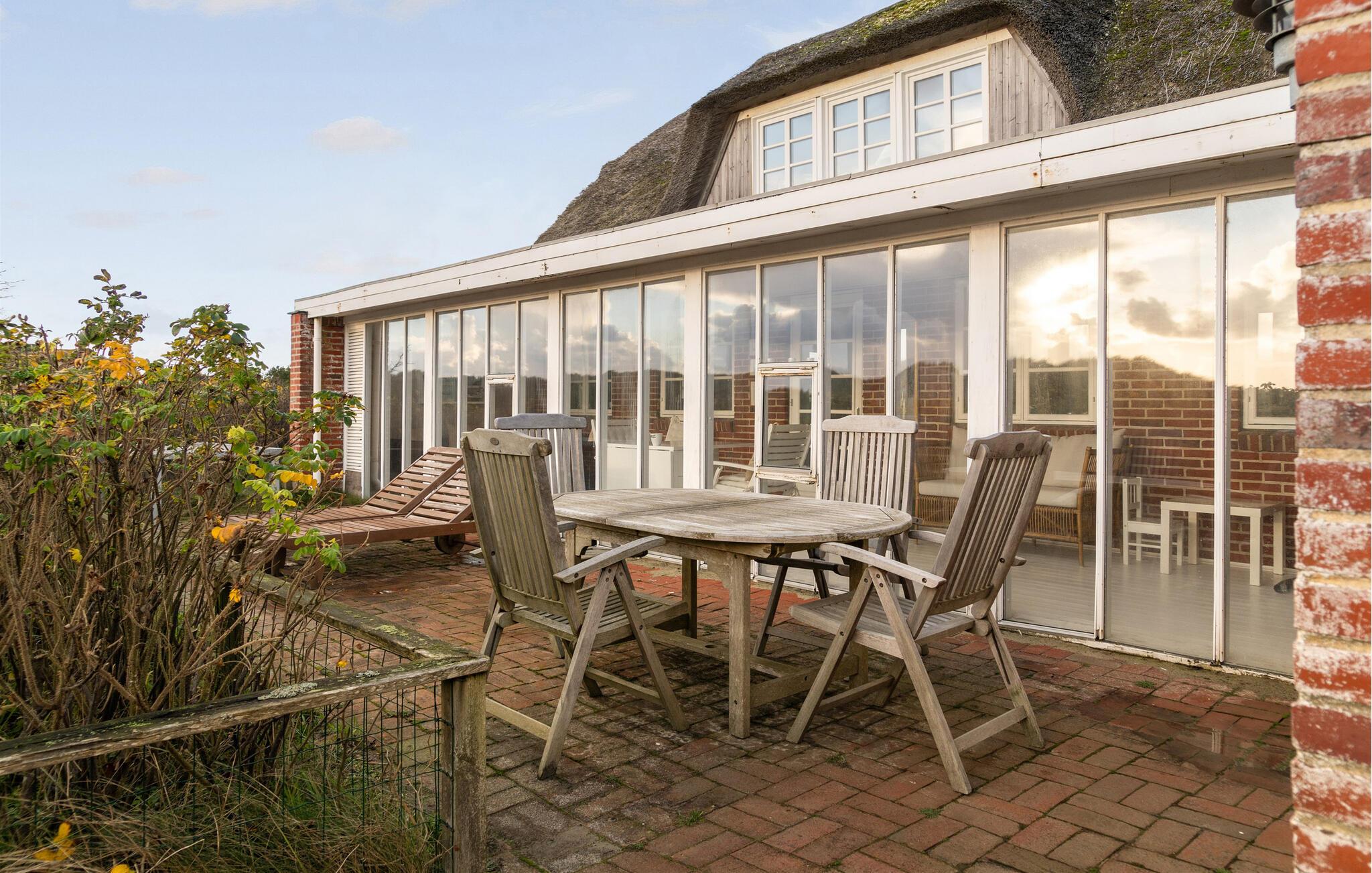 Bei schönem Wetter lädt die Terrasse zu entspannten Stunden im Freien ein. Genießen Sie einen herrlichen Blick über die Dünen bis hin zum Meer, frühstücken Sie in aller Ruhe oder machen Sie nachmittags ein Schläfchen auf der Sonnenliege. Entzünden Sie an lauen Sommerabenden den Grill und genießen Sie ein leckeres Grillessen in geselliger Runde.