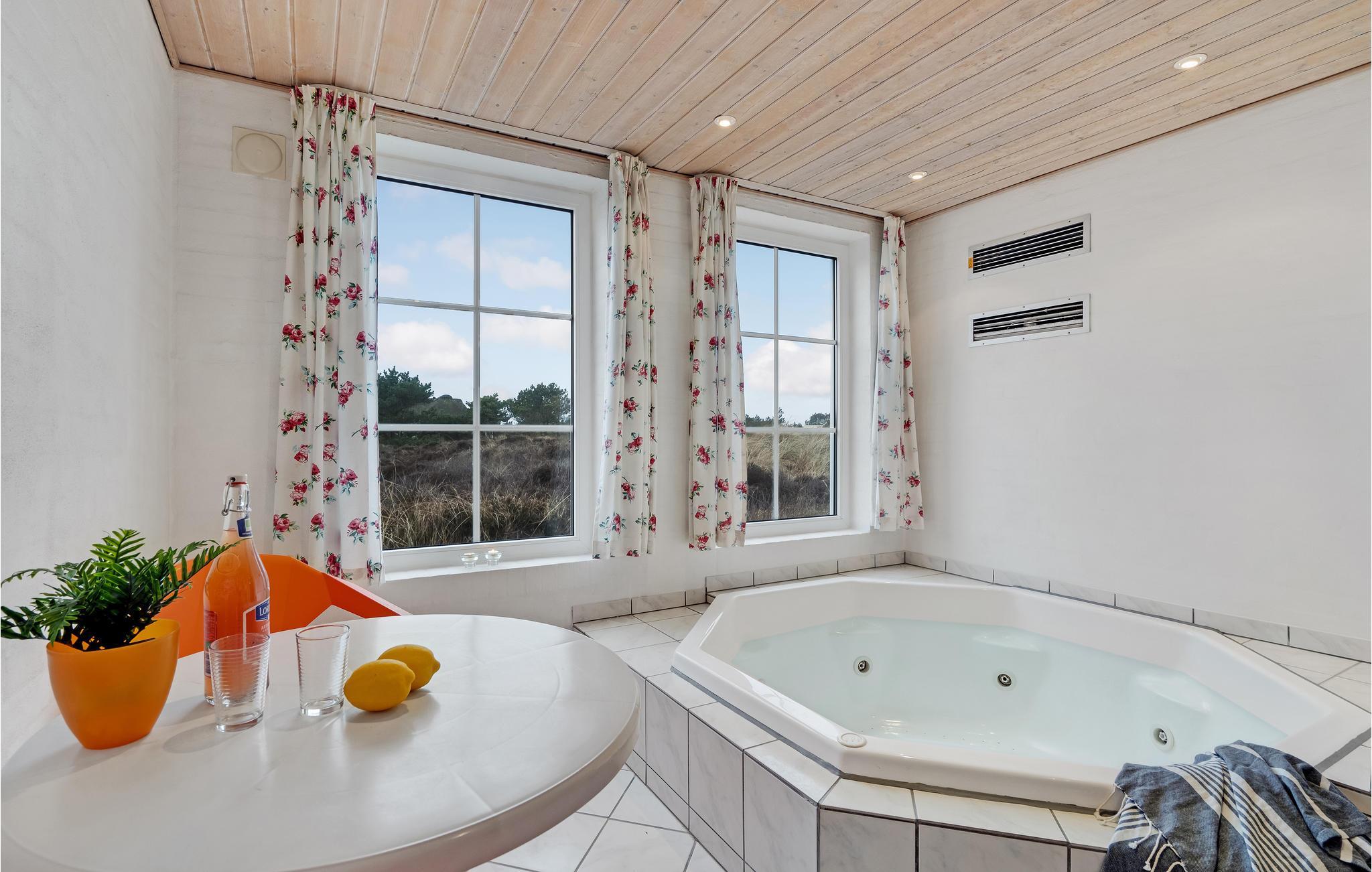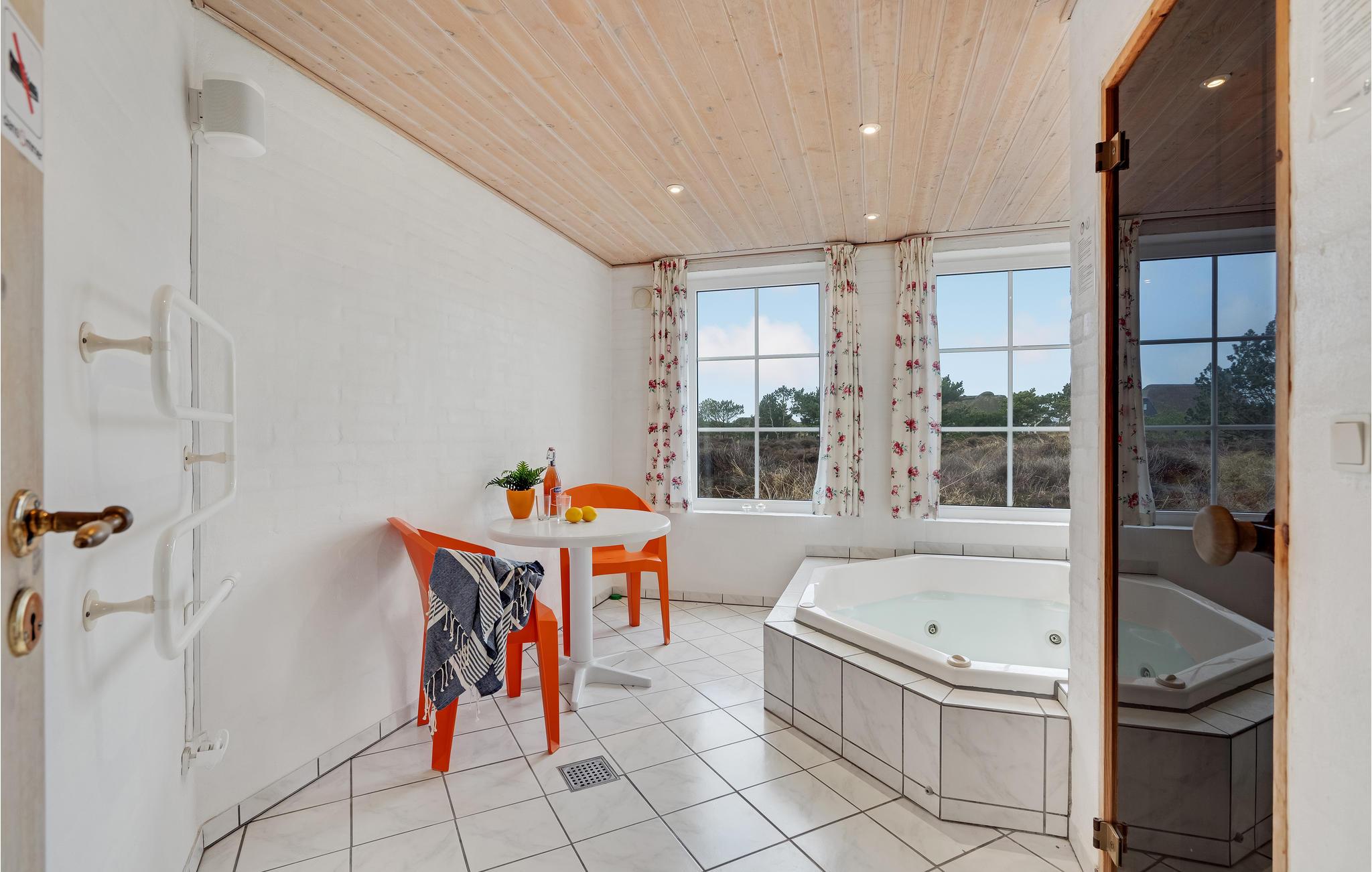 Dieses hübsche strohgedeckte Backsteinhaus befindet sich auf einem großen Naturgrundstück mit Platz für Aktivitäten der ganzen Familie und in unmittelbarer Nähe zum schönen Sandstrand von Blåvand. Das Haus hat zwei große Wohnzimmer und zwei Schlafzimmer im ersten Stock und zwei Schlafzimmer im Erdgeschoss, zusätzlich ein Badezimmer auf jeder Etage. Dies macht das Haus zur idealen Wahl, wenn Sie mit mehreren Familien reisen. Im Wohnzimmer können Sie die Wärme des Ofens genießen und von der schönen Küche / dem Familienzimmer des Hauses aus haben Sie direkten Zugang zur Terrasse des Hauses, auf der Sie die Sonne genießen und entspannen können. In Ihrem Wellnessbereich können Sie nach einem langen Tag am Strand im Whirlpool und in der Sauna entspannen. Vom Spa aus haben Sie einen fantastischen Blick auf die Natur Westjütlands. Das Haus ist sehr gut für Familien mit Kindern geeignet, da es auf dem Grundstück sehr gute Spielgeräte gibt. Besuchen Sie auch Esbjerg mit ihren vielen Sehenswürdigkeiten und Geschäften auf der längsten Fußgängerzone Jütlands. In der Miete ist freier Eintritt zum Badeland sowie dem Fitnesscenter in Blåvand und dem Golfplatz in Ho enthalten.