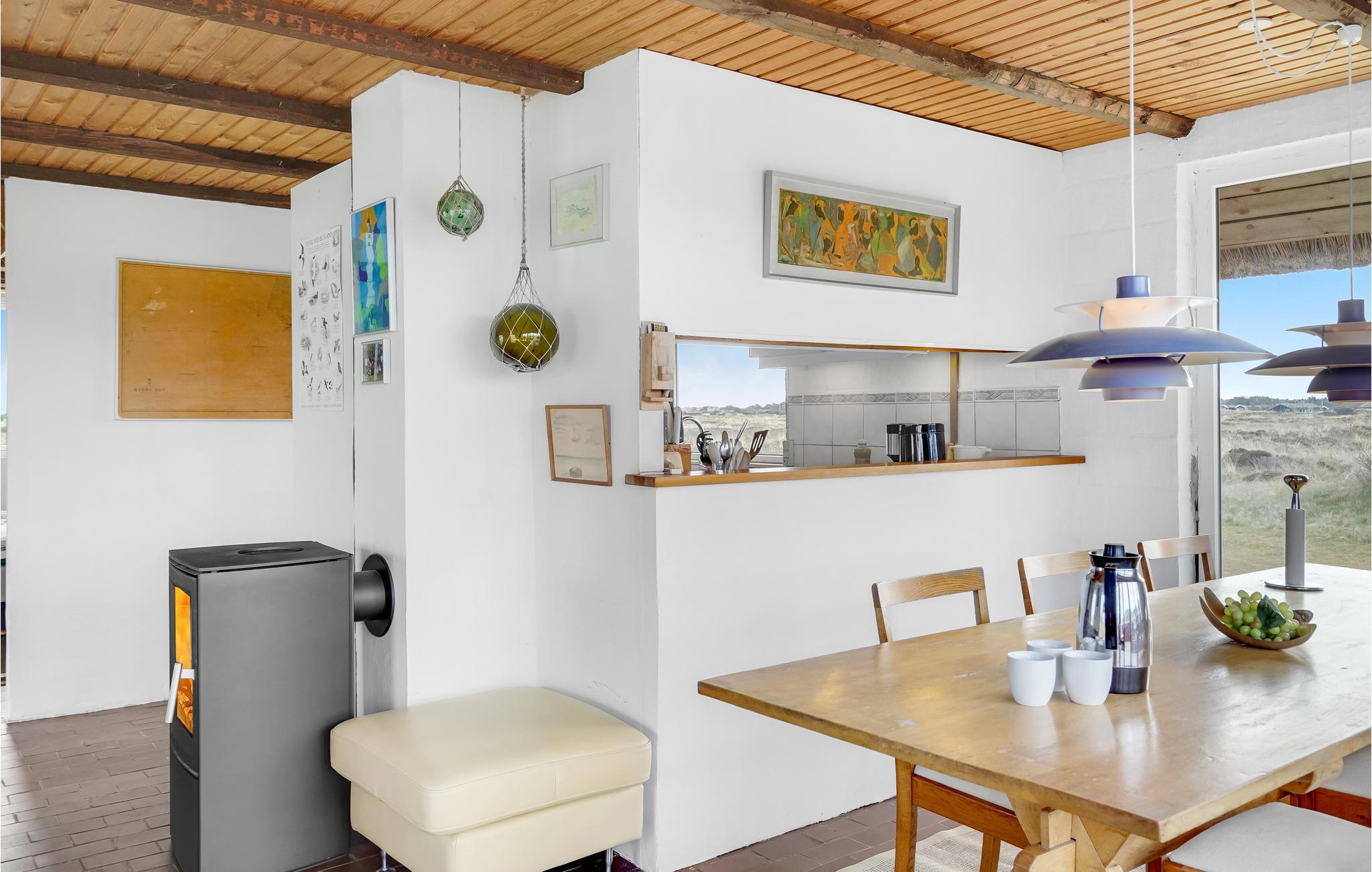 Am westlichsten Punkt Jütlands finden Sie dieses hübsche, geräumige Ferienhaus vor, das mit seinem Reetdach und der schönen roten Farbe ein Blickfang in der Landschaft ist. Genießen Sie eine entspannte und ruhige Zeit mit Ihren Liebsten und lassen Sie sich von der schönen Landschaft in Dänemark verzaubern. Das Haus bietet Ihnen viel Platz und viel Licht, sowie gemütliche Zimmer und eine wohlige Wärme dank des Kamins. Auf der Terrasse können Sie Ihren ersten Morgenkaffe trinken und sich die frische Seeluft um die Nase wehen lassen oder am Abend die schönsten Färbungen des Himmels beim Sonnenuntergang beobachten.