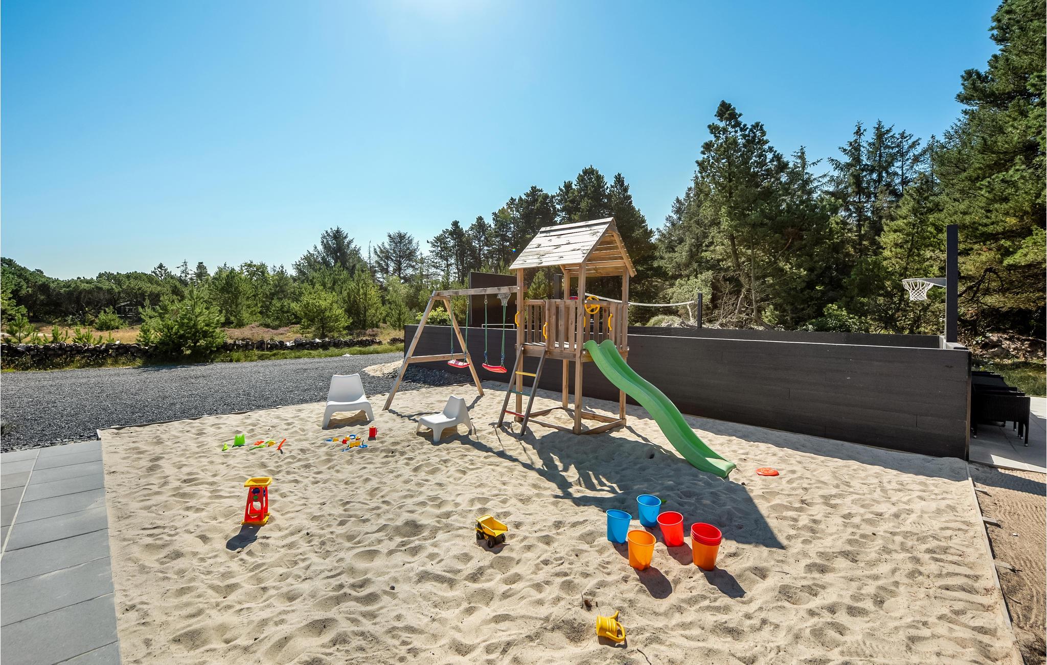 Steigen Sie morgens aus dem Bett und kochen Sie sich eine gute Tasse Kaffee mit der eingebauten Kaffeemaschine in der Küche und genießen Sie sie auf der Terrasse. Vielleicht sind die Kinder schon auf dem Klettergerüst herumgesprungen oder haben ein Basketball- oder Volleyballspiel auf dem eingezäunten Platz vor dem Haus begonnen. Oder vielleicht haben Sie die Möglichkeit, einen ruhigen Vormittag an der frischen Luft zu genießen. Sobald alle aufgestanden sind, können Sie gemeinsam am langen Esstisch in der Wohnküche frühstücken, während Sie die Aktivitäten des Tages planen.
