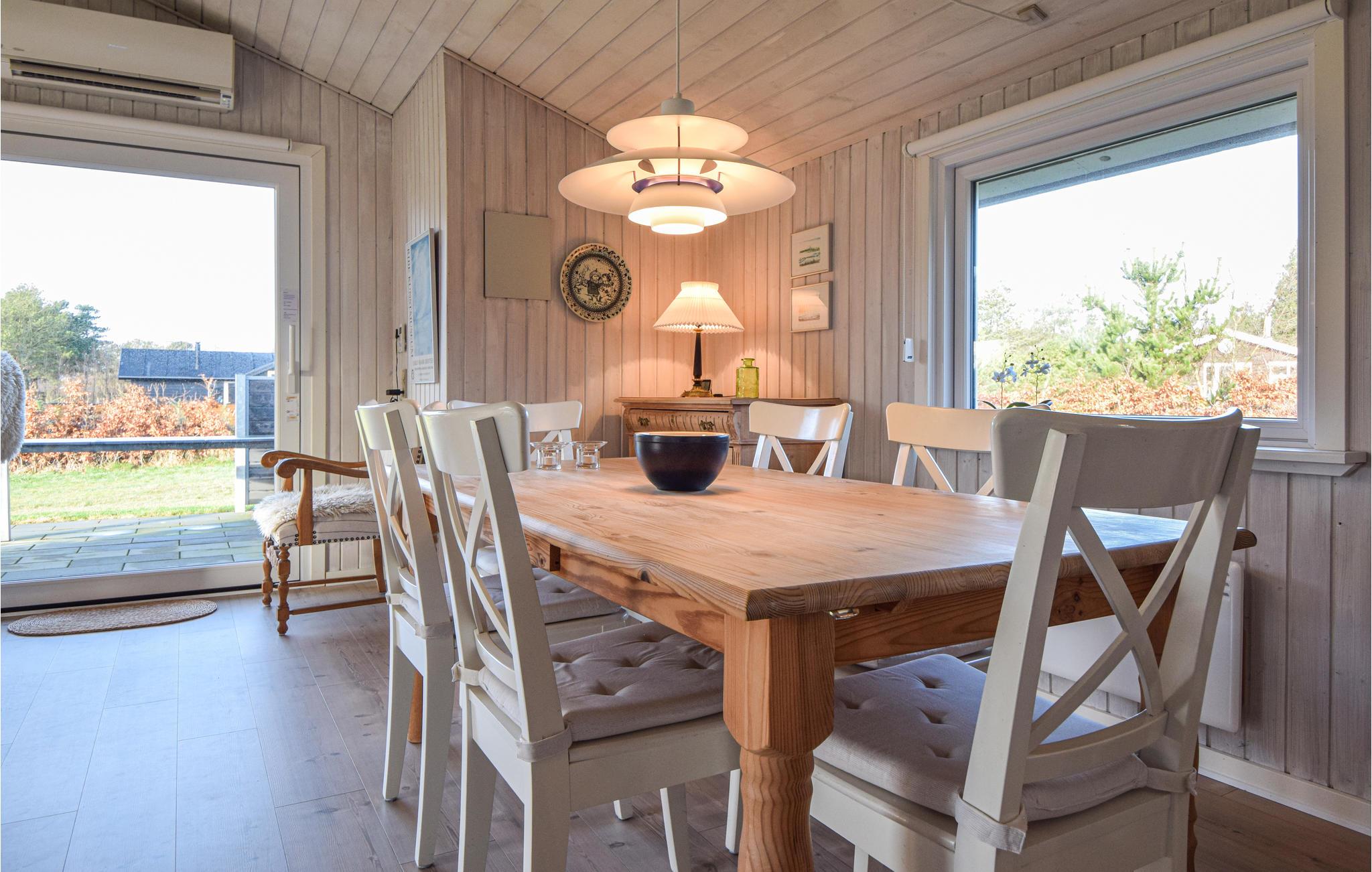 Mitten in Blåvands fantastischem Ferienparadies liegt dieses gemütliche und gut ausgestattete Holzferienhaus, in natürlicher Umgebung, nur einen kurzen Gang vom Blåvand Strand und dem Ort Blåvand. Hier gibt es gute Einkaufsmöglichkeiten, viele schöne Geschäfte, gute Restaurants, gemütliche Cafés, die alle ganzjährig geöffnet sind, und eine Vielzahl an Freizeitaktivitäten wie ein Erlebnisbad sowie Tennis-, Squash- und Badmintonplätze bietet. Das Haus mit Holzfußböden ist sehr geschmackvoll eingerichtet. Mit wenigen hundert Metern bis zum Strand merken Sie deutlich die fische Seeluft und das leise Rauschen der Nordsee. Der Strand und die Natur rund um Blåvandsind ganz besonders. So weit das Auge reicht sind hier breite, weiße Sandstrände, blaugrünes Meerwasser, imposante Dünen, weitläufige Heide und Wald- und Plantagengebiete, die vom größten Rothirschbestand Dänemarks bevölkert sind. Besuchen Sie die geschützte Halbinsel Skallingen, die von vielen Zugvögeln als Ruhe- und Nahrungsgebiet genutzt wird, oder erleben Sie den bezaubernden Sonnenuntergang über der Nordsee am Strand, in den Dünen oder im Ort. Bei einem Strandspaziergang haben Sie gute Chancen, Bernstein zu finden, wenn die Wind- und Wetterverhältnisse günstig sind. An Dänemarks bestem Badestrand dem Hvidbjerg Strand, haben Sie alle Vorteile der Nordsee. Außerdem ist der Strand sehr gut für Kinder geeignet, da er im Schutz des Riffes Horns Rev liegt, das etwa 12 km draußen im Meer liegt und als Fundament für einen großen Windmühlenpark dient. Besuchen Sie den 39 m hohen Turm Blåvandshuk Fyr, der sich an Dänemarks westlichstem Punkt befindet und von desse Spitze Sie eine herrliche Aussicht über das Meer und Blåvand haben. Im Ort gibt es viele offene Werkstätten zu besichtigen. In der Umgebung gibt es auch viele schöne Ausflugsziele, wie z.B. die alte Domkirchenstadt Ribe, die älteste Stadt in Dänemark, und Esbjerg mit dem Fischerei- und Seefahrtsmuseum und einem großen Hafen, sowie natürlich Legoland, den Löwenpark in Givskud eine gute Autostunde von hier.