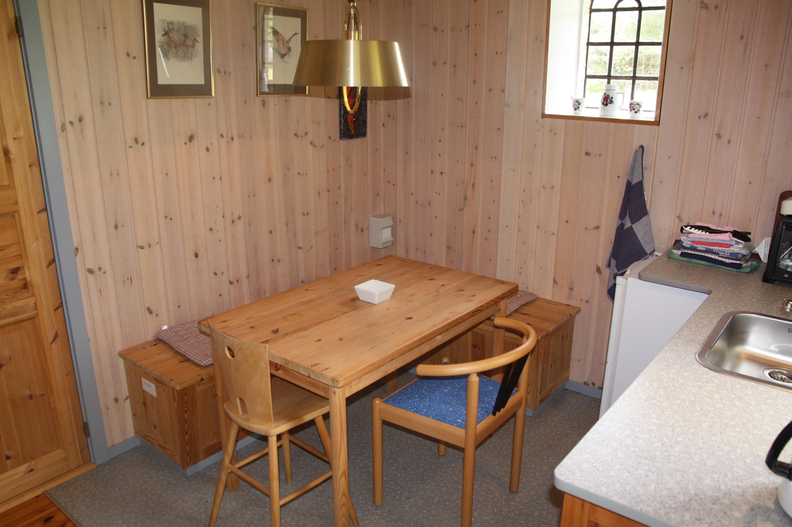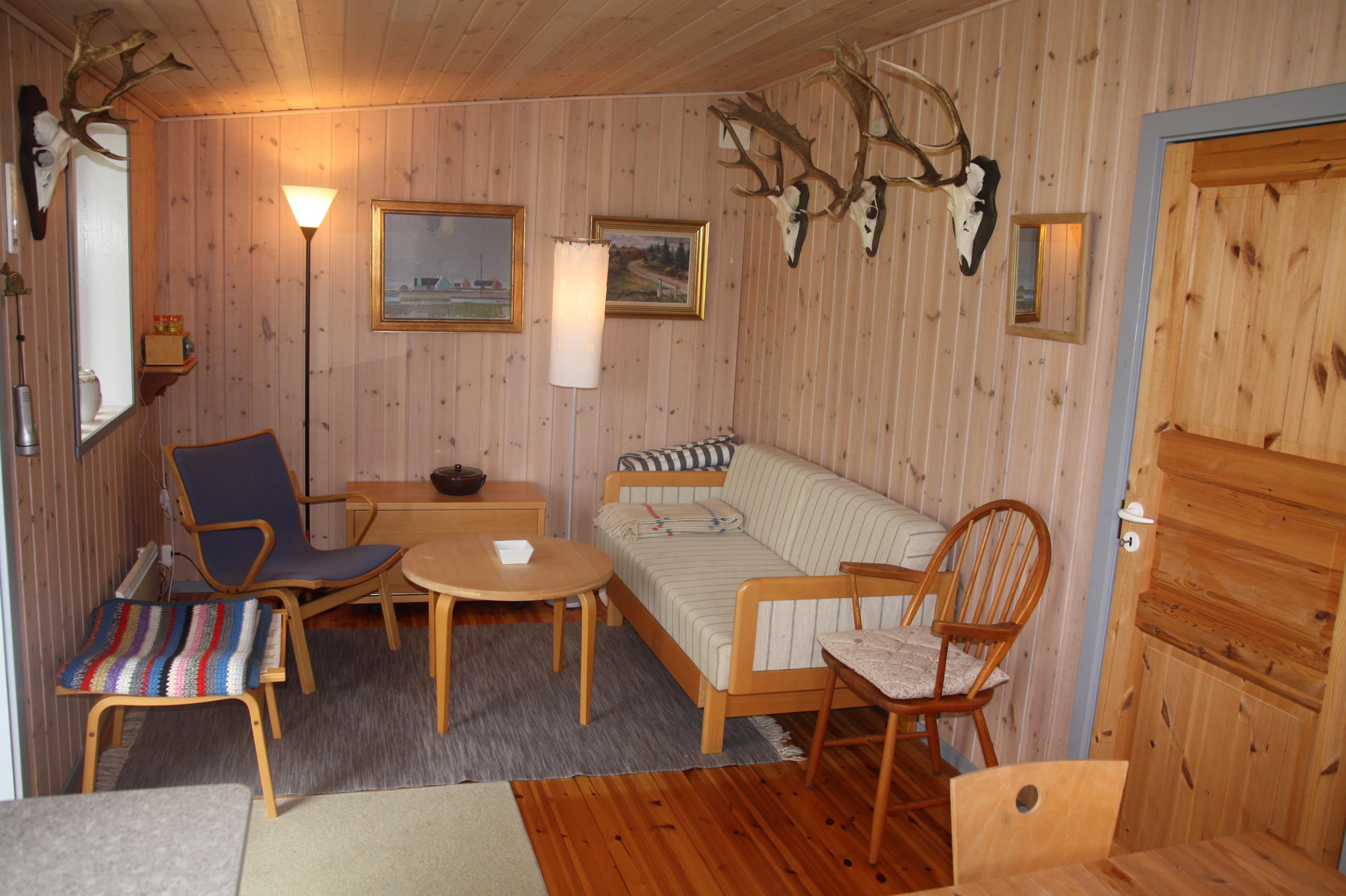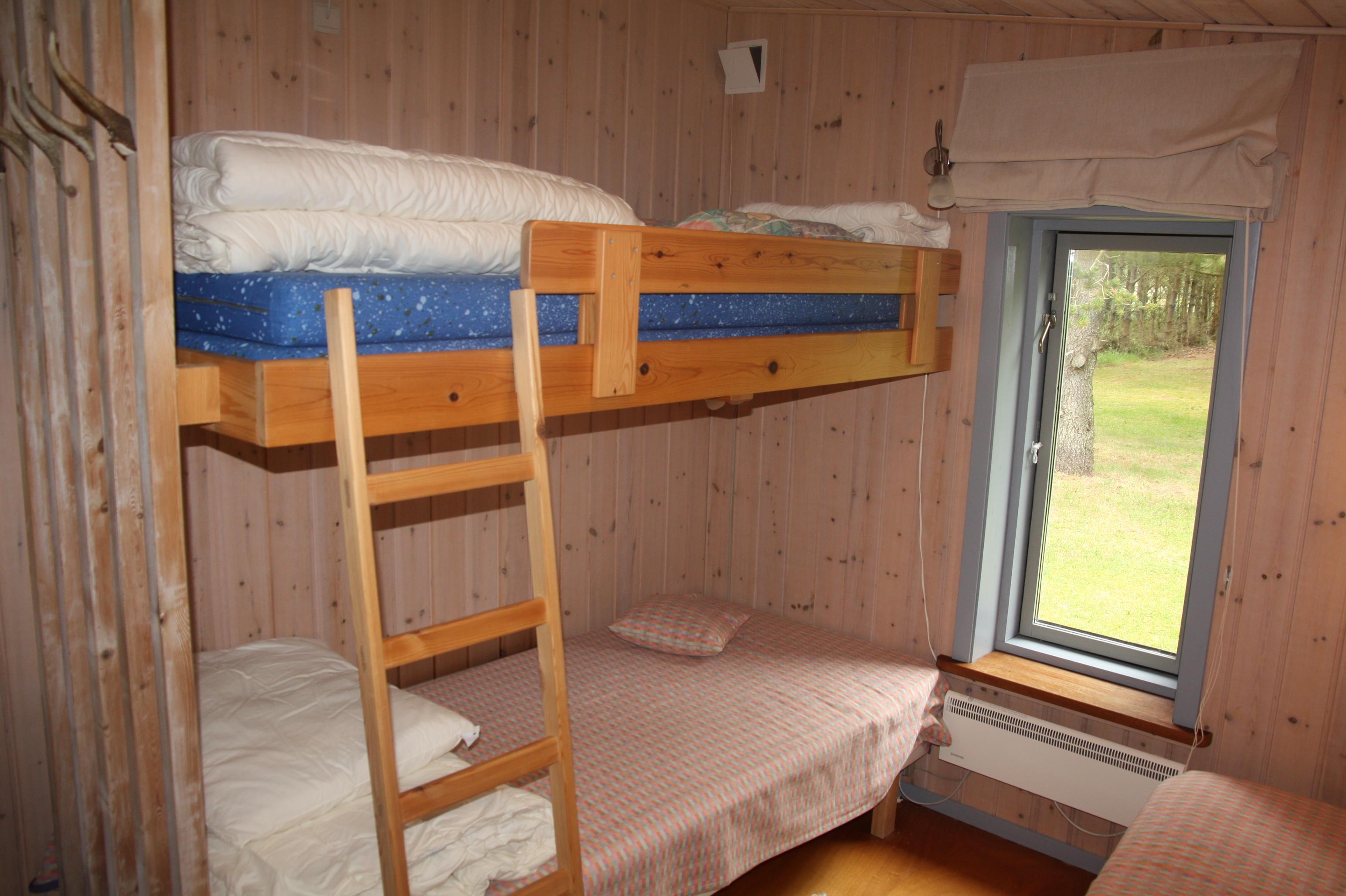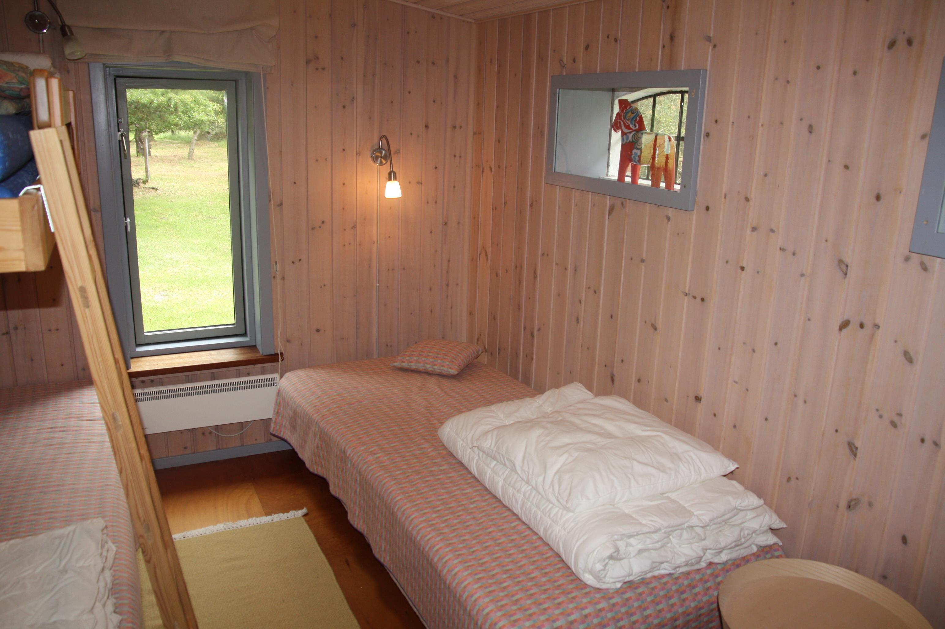 Das Haus verfügt über ein Schlafzimmer mit einem Einzelbett und einem Etagenbett, im Wohnzimmer gibt es ein Schlafsofa. Das Haus kann tageweise gemietet werden.