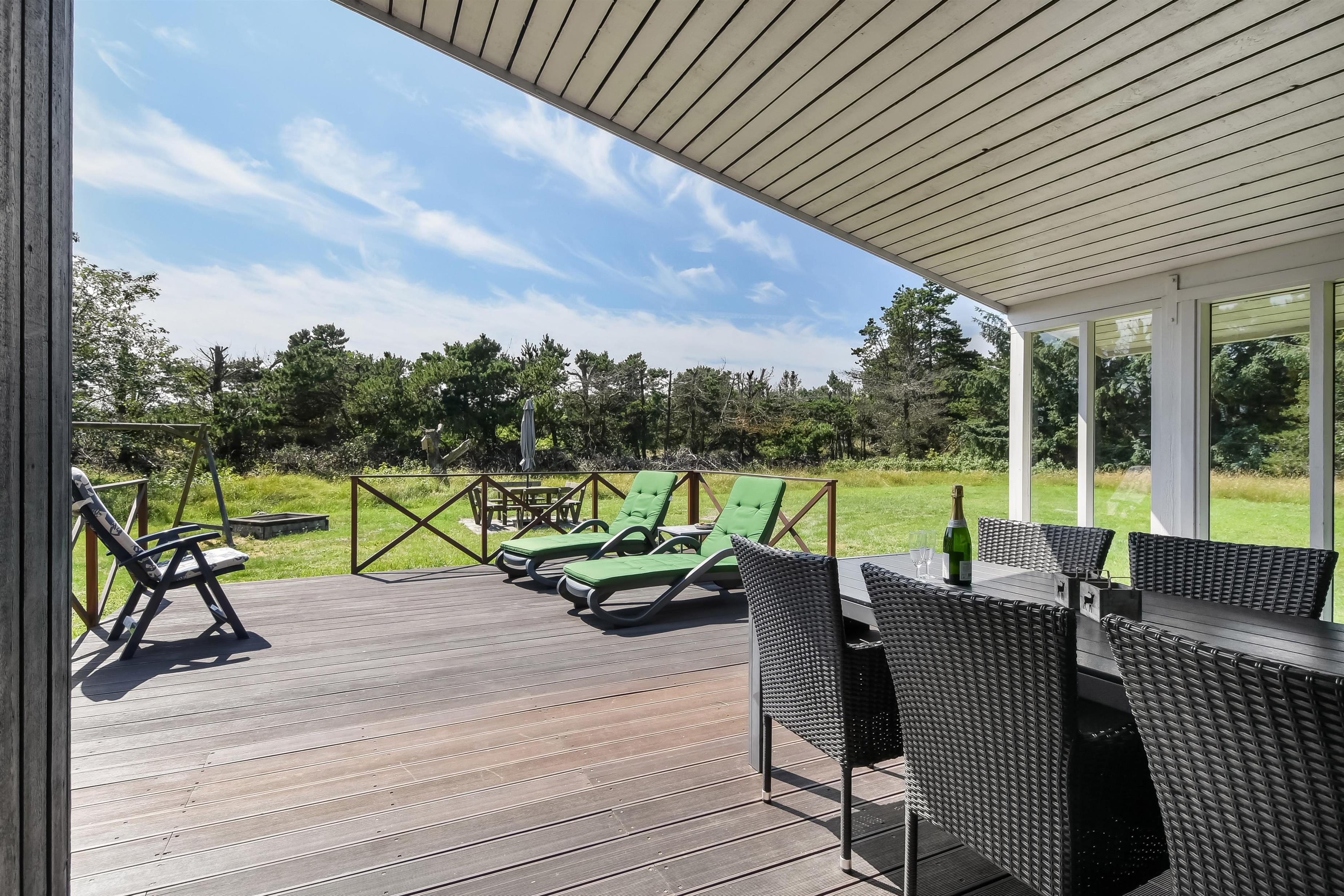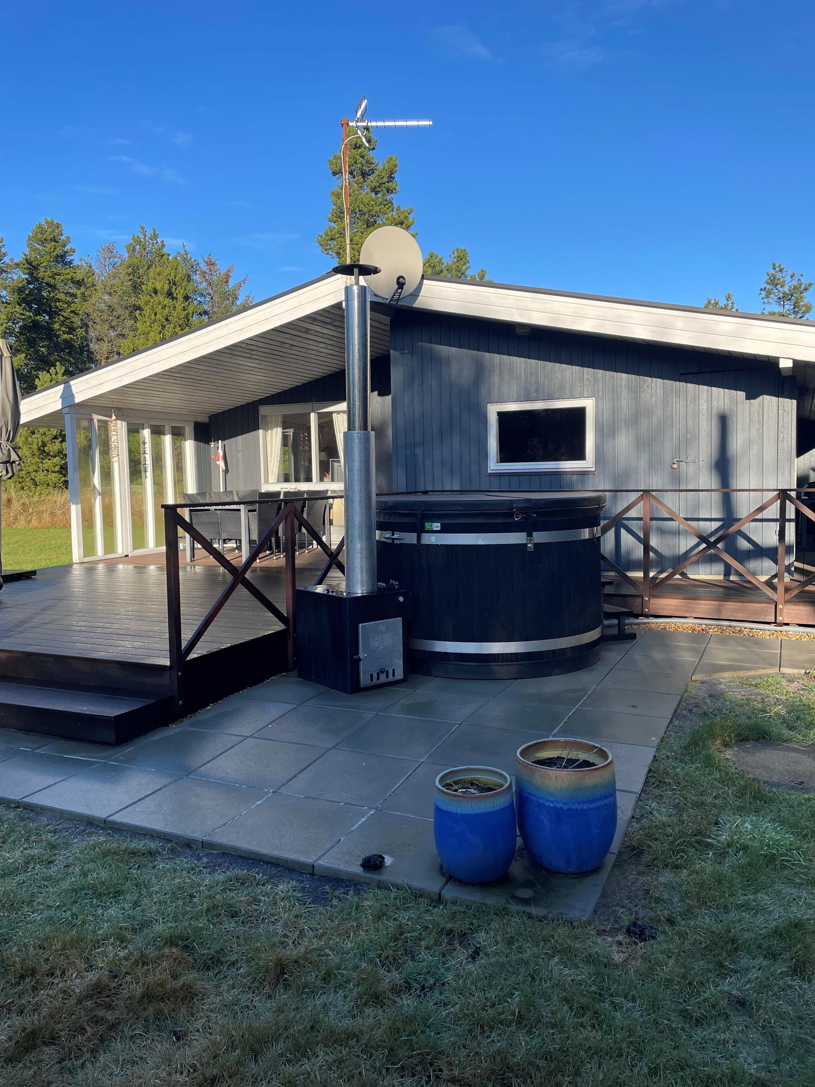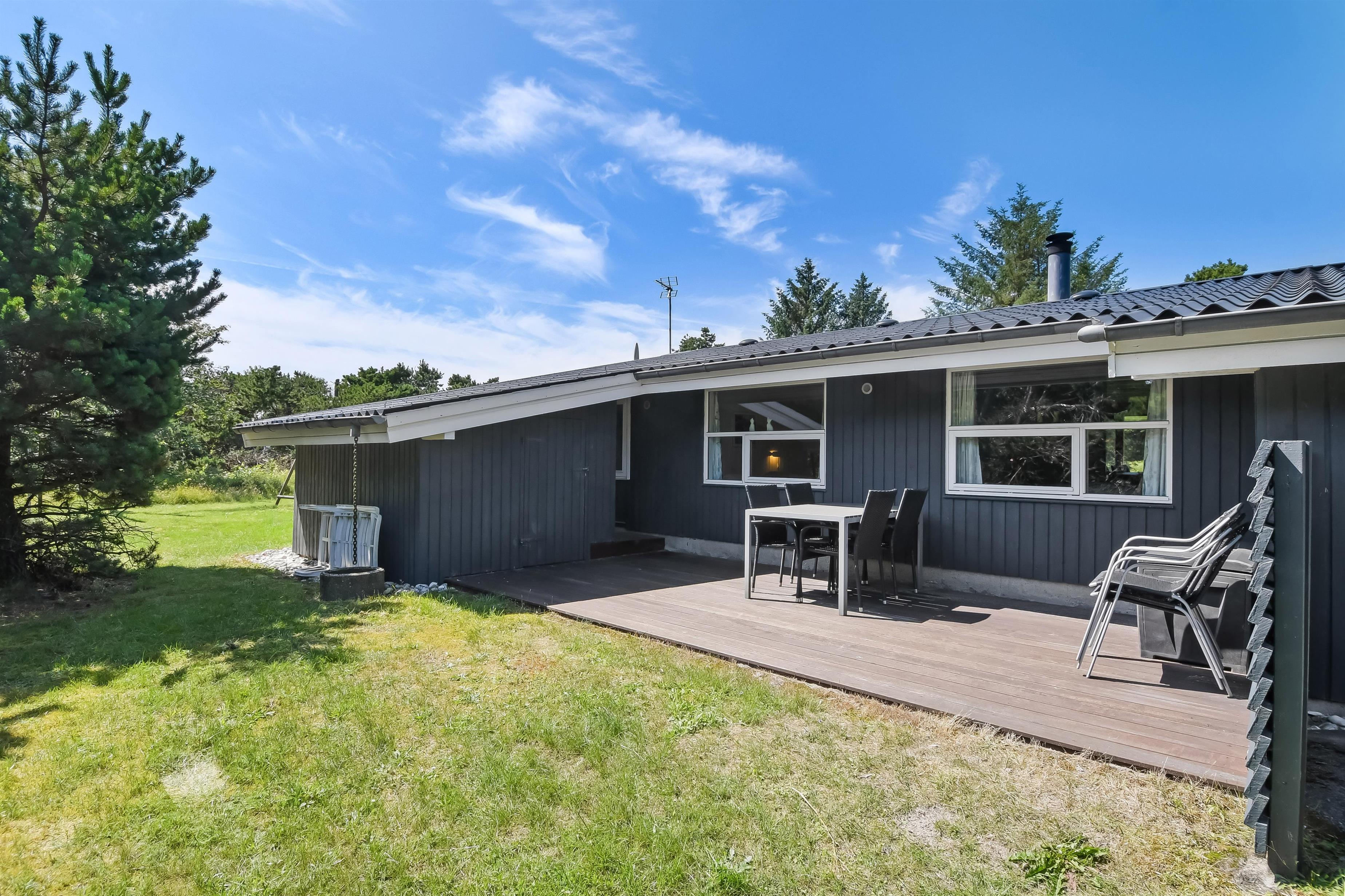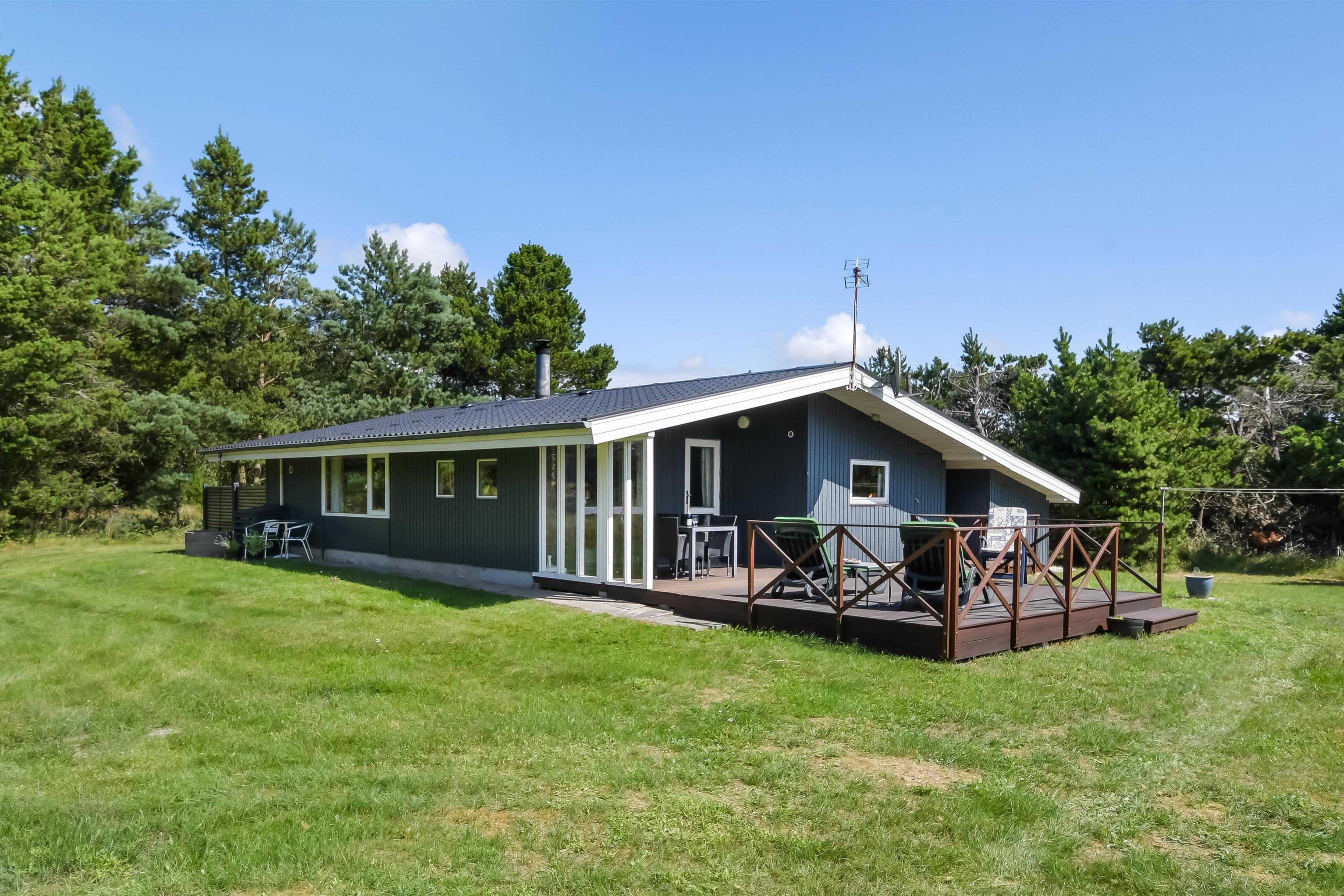 Ein schönes Holzhaus auf einem Naturgrundstück, nicht weit vom Blåvand Zoo und dem neuen, spannenden Tirpitz Museums entfernt. Das Haus ist hell og freundlich mit gutem Aussenareal Wildnisbad, überdachter Terrasse und Schaukel für die Kleinen. Das Haus ist sehr gut ausgerüstet, u.a. mit separatem Gefrierfach und WIFI. 1 doppelbett. 1 doppelbett. 2 einzelbetten. Baujahr 1977, Holzhaus, NICHT RAUCHER, Wärmepumpe, überdachter Terrasse, Hochstuhl, Kinderbett. Microwelle, Spülmaschine, Seperates Gefrierfach. Waschmaschine, Sauna, Fussbodenheizung im Badezimmer. DVD-player, Farb-TV und SAT-Empf., Kaminofen, Radio. Schaukel,Hängematten .
