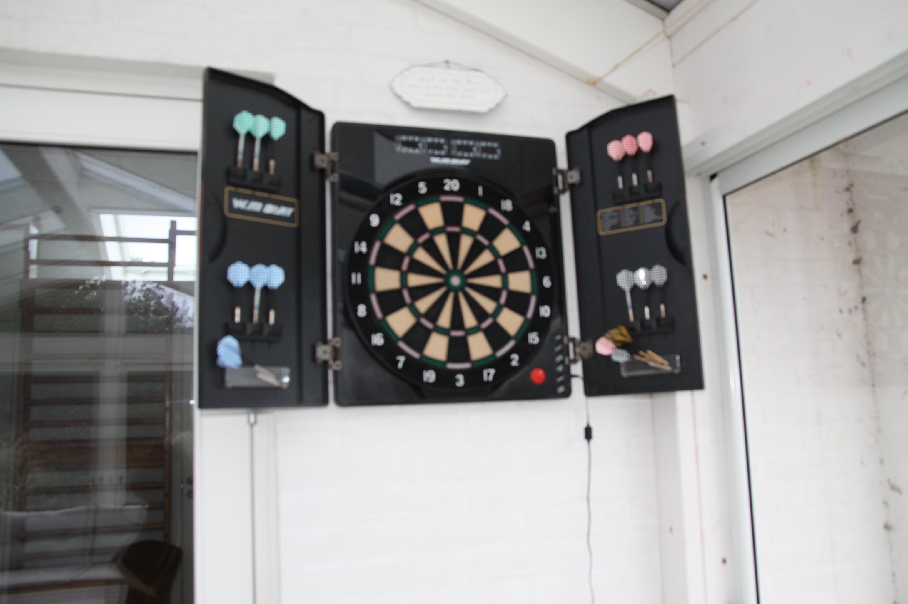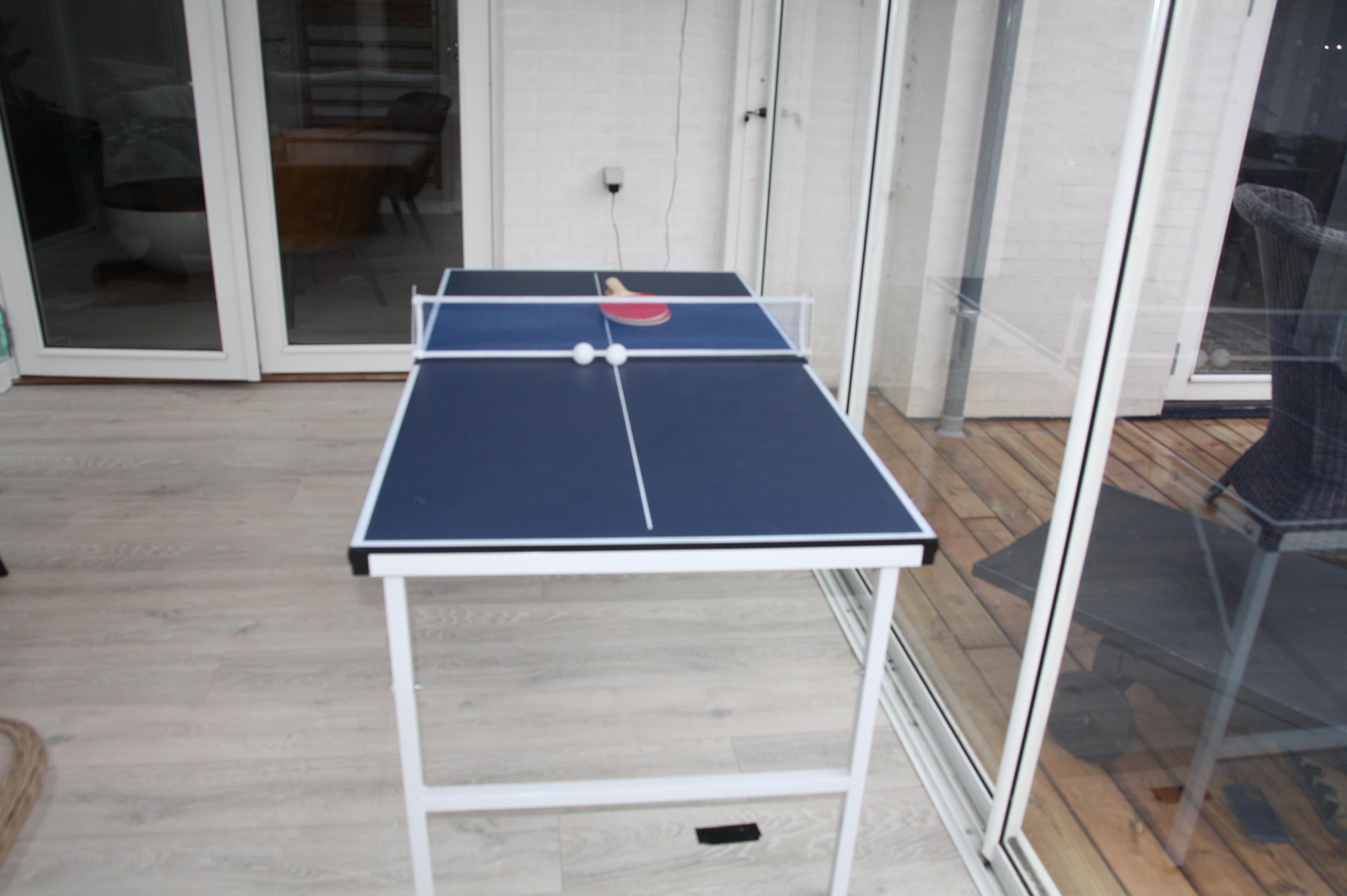 In dem großen 20 m2 großen Wintergarten kann man kühlere Abende mit Dartspielen, Tischfußball oder Tischtennis verbringen.