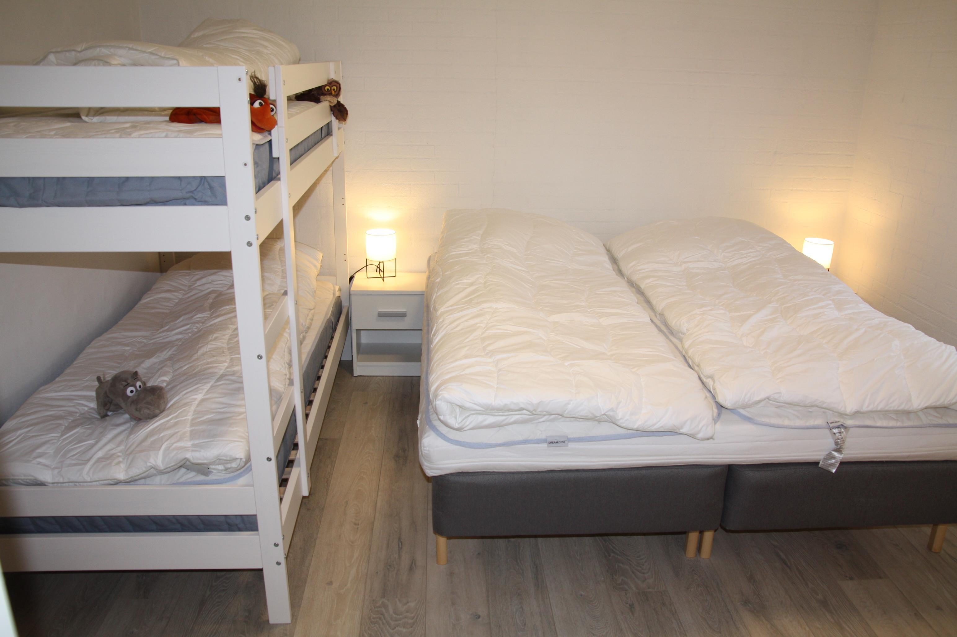 Es gibt vier Schlafzimmer und einen Dachboden. Alle Betten sind 90x200 und die Doppelbetten sind 180x200. Alle Schlafzimmer haben einen Fernseher.