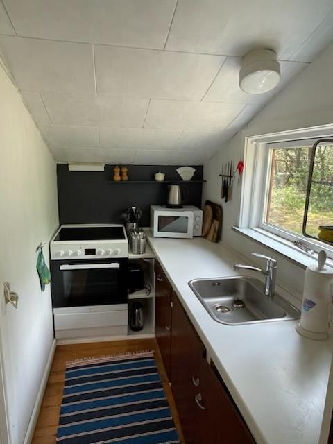 Älteres aber gemütliches Sommerhaus mit Internet,. Ein schön geschützes Grundstück, in Gehabstand zum Ort. Das Badezimmer ist sehr klein aber mit Dusche und WC. Wenn man die Atmosphäre einen älteres Haus mag, bekommt man diese hier zusammen mit WIFI und SmartTV mit Chrome Cast, zu einem günstigen Preis. Neue Holzterrasse im 2021 und renovierte Küche. Der Wasserverbrauch ist im Preis eingeschlossen. 1 doppelbett. Baujahr 1965, Holzhaus. Kaminofen. Naturgrundstück mit Bäumen.
