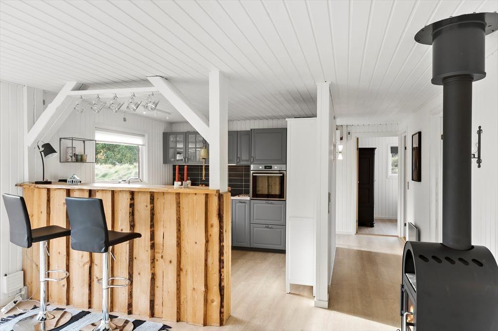 Im Inneren ist das Ferienhaus sowohl gemütlich als auch funktional eingerichtet und bietet eine helle und offene Atmosphäre. Es ist der perfekte Ort, um mit der Familie oder Freunden zusammenzukommen. Die großen Fenster bieten einen herrlichen Blick auf die umliegende Natur. Der geräumige Wintergarten ist der ideale Treffpunkt, um gemeinsam den Sonnenuntergang zu genießen oder einfach ein gutes Buch zu lesen, während draußen die Vögel singen. Die offene Küche bietet genügend Platz für gemeinsames Kochen, und es ist einfach, ein Abendessen zuzubereiten, das Sie im gemütlichen Essbereich genießen können. Wenn die Dunkelheit hereinbricht, ist es der perfekte Moment, um den Kamin anzuzünden und die Wärme und Gemütlichkeit zu genießen.