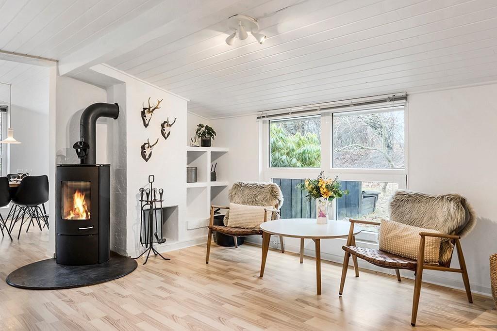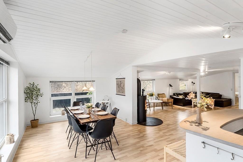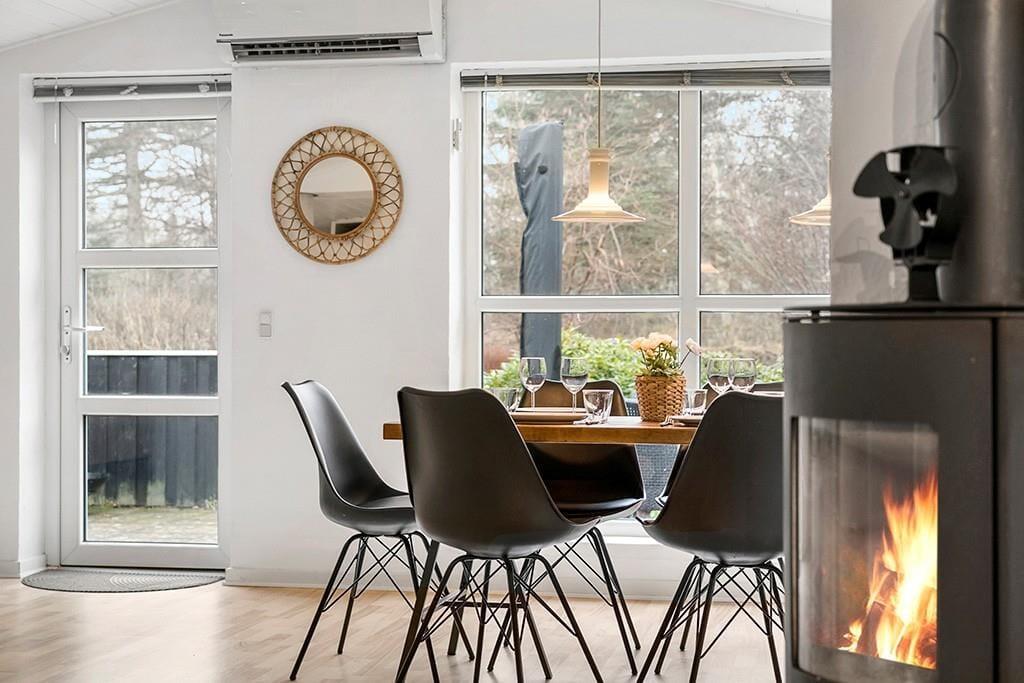 Dieses Ferienhaus bietet genügend Platz für zwei Familien. Hier können bis zu sechs Personen übernachten, verteilt auf zwei Schlafzimmer im Haupthaus sowie eins im Nebenhaus. Das stilvolle Badezimmer befindet sich mitten im Haus und der große, offene Wohnbereich mit Esszimmer, Wohnzimmer mit Kamin und TV. Wunderbare Rahmenbedingungen für jede Urlaubsform!