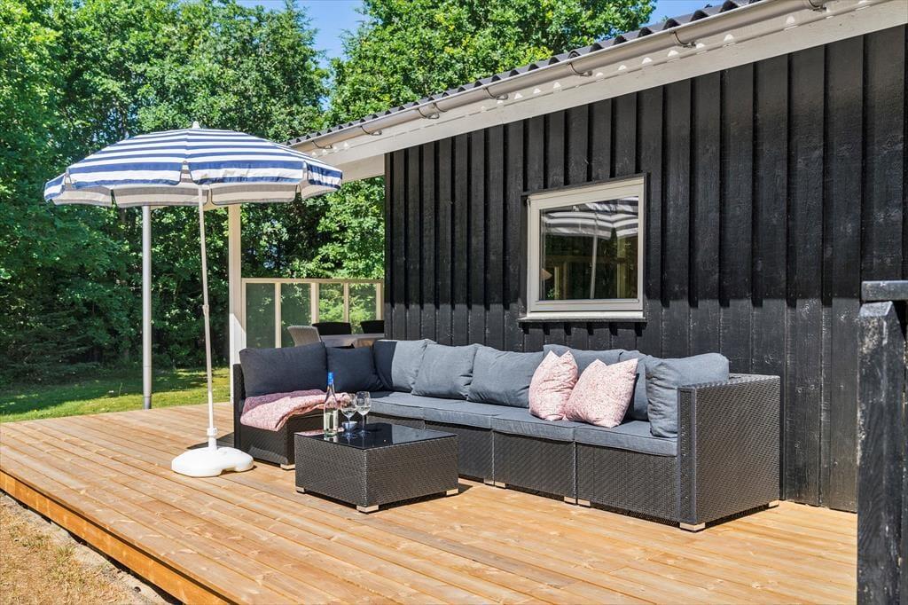 Die ringsum dichte Bepflanzung schirmt das 1.252 m² große Grundstück gegen neugierige Blicke ab, sodass Sie völlig ungestört die Sonne genießen können. Auf der südlich gelegenen Terrasse können Sie sich ohne weiteres den ganzen Tag über aufhalten. Und wenn Sie bis zur Schlafenszeit draußen sitzen möchten, können Sie sich auf den überdachten Teil der Terrasse zurückziehen, wenn der Tau fällt.