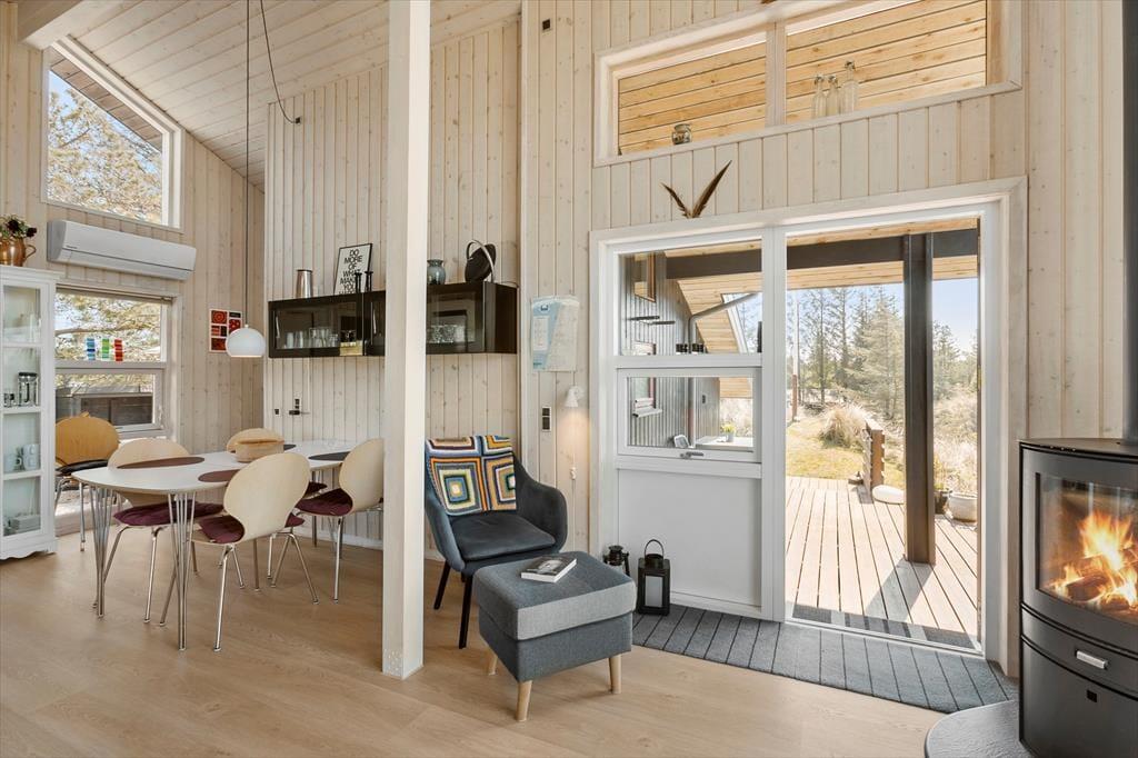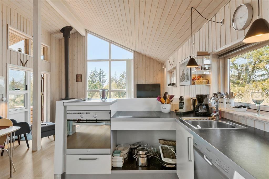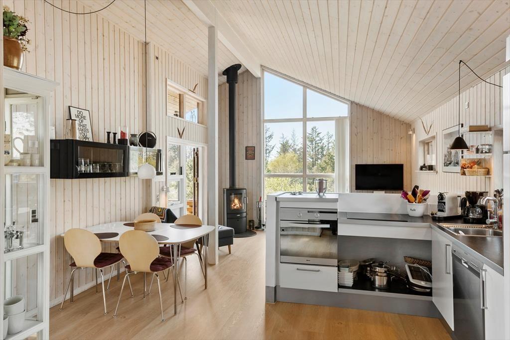 Zu jeder Jahreszeit und bei wirklich jedem Wetter, ist es wunderschön, einen Urlaub in diesem Haus inmitten der herrlichen Natur Kryle Klits zu verbringen. Ganz gleich, ob Sie gerade in der Küche ein sommerliches Mittagessen zubereiten, oder es sich an einem kühlen Herbsttag mit einem warmen Becher Kakao nahe dem Kaminofen gemütlich machen, Sie werden dabei stets die Aussicht durch die großen Fenster des Aufenthaltsraumes genießen, die Sie obendrein auch gleichzeitig mit einem wunderbaren Tageslichteinfall verwöhnen. Wenn Sie sich von diesem schönen Anblick lösen können, bietet sich Ihnen die Möglichkeit, Filme und Serien auf dem Flachbild-TV zu streamen, der nahe der gemütlichen Sofaabteilung platziert ist. Die gemütliche Stimmung setzt sich auch unvermindert in den drei gut eingerichteten Schlafräumen fort. Selbst das schöne und gepflegte Badezimmer steht den anderen Räumlichkeiten in punkto "Atmosphäre und Stimmung" in nichts nach.