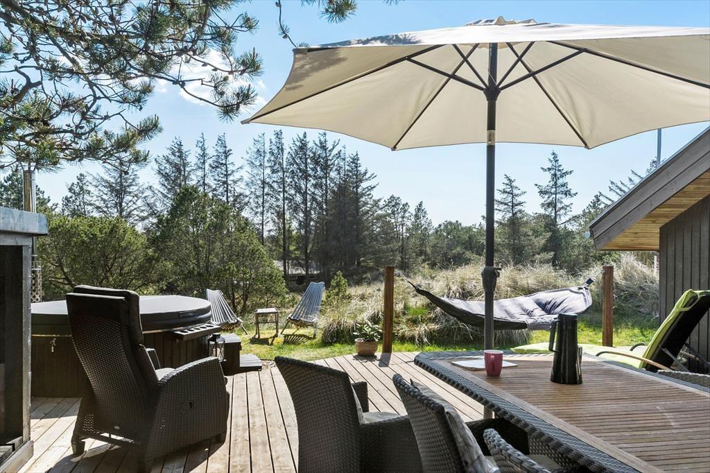 Dieses Ferienhaus befindet sich inmitten der herrlichen Natur von Kryle Klit - einem der attraktivsten Gebiete von Blokhus. Die schöne und friedvolle Umgebung harmoniert wunderbar mit der gemütlichen Atmosphäre und der schönen Einrichtung dieses Urlaubsdomizils. Unter freiem Himmel lockt darüber hinaus eine schöne Terrassenanlage, die Ihnen Ihre Urlaubstage versüßen wird.