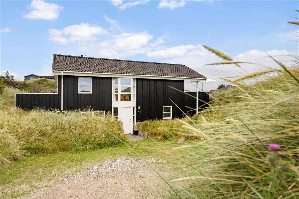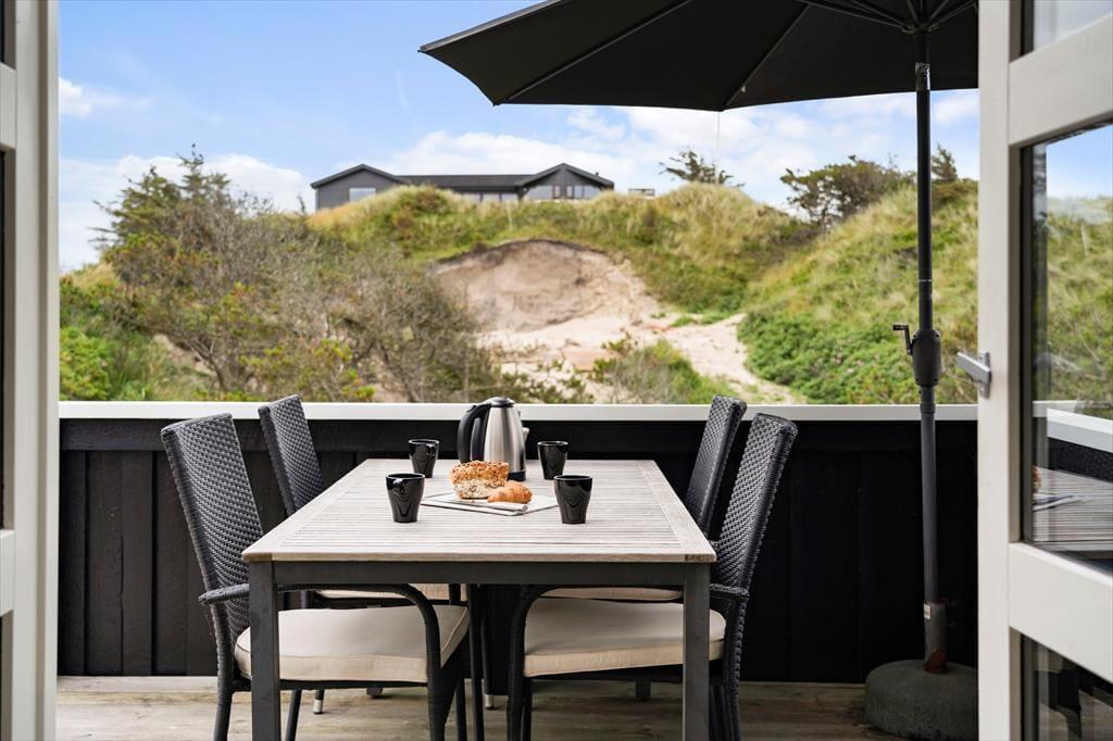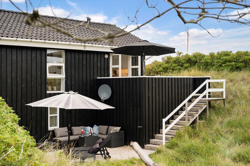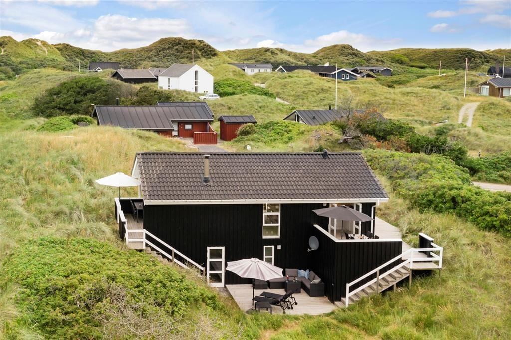 Das Ferienhaus liegt auf einem leicht hügeligen Dünengrundstück das mit Strandhafer und Hagebuttenbüschen hervorragenden Schutz vor dem Westwind bietet. Mehrere Terrassen an unterschiedlichen Stellen am Haus auf beiden Etagen vorhanden, damit Sie immer einen Platz in der Sonne finden und die besten Stunden des dänischen Sommers in vollen Zügen genießen können. Gartenmöbel, Liegestühle und Grill sind selbstverständlich vorhanden.