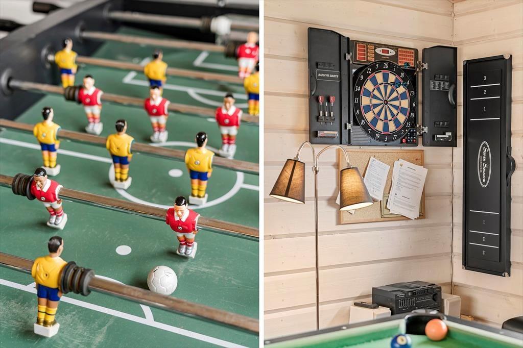 Das Ferienhaus bietet eine großzügige und offene Einrichtung, die Gemütlichkeit und Entspannung ausstrahlt. Das Wohnzimmer und der Küchen-Essbereich sind so gestaltet, dass sie sich ideal für gemeinsames Beisammensein eignen, und die großen Fenster sorgen für viel Tageslicht. Hier kannst du dich rund um den Kaminofen versammeln und Zeit mit gemütlichen Aktivitäten verbringen. Wenn du etwas Ruhe suchst, gibt es eine angenehme Leseecke, in der du dich mit einem guten Buch zurückziehen kannst oder einfach die Stille genießen kannst. Das geräumige Badezimmer ist mit einer Sauna und einem Whirlpool ausgestattet, in denen du nach einem langen Tag am Strand entspannen und dich verwöhnen kannst.