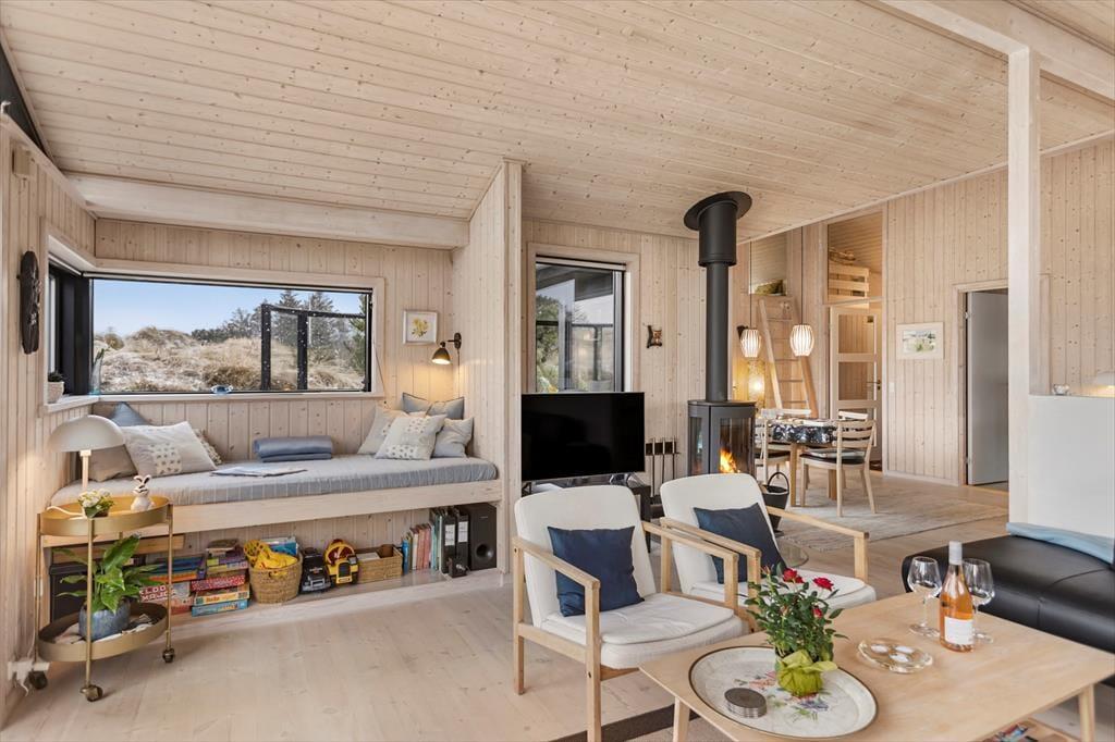 Dieses wunderschöne Ferienhaus in der Lärkevej 29 bietet dir ein unvergleichliches Ferienerlebnis. Das offene Wohnzimmer, das sich nahtlos mit dem großzügigen Küchen- und Essbereich verbindet, lädt zu gemütlichen Momenten mit der Familie ein, während die wohlige Wärme des Kaminofens den Raum erfüllt. Hier gibt es genug Platz für ruhige Stunden und gemeinsames Beisammensein. Mit einer Leseecke, einem luxuriösen Badezimmer mit Sauna und Whirlpool sowie einem großen, einladenden Dachboden hast du alles, was du für einen unvergesslichen Urlaub benötigst. Das Haus liegt in Gehweite sowohl zum Blokhus Strand als auch zum gemütlichen Stadtzentrum und ist daher die ideale Basis für deinen Urlaub.