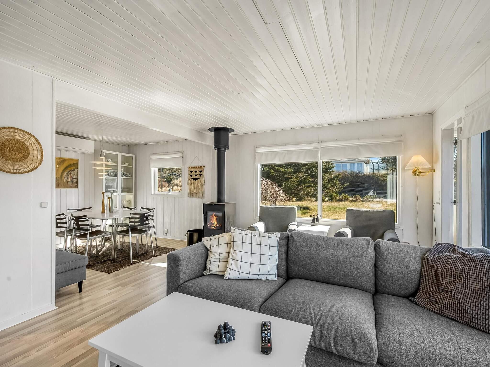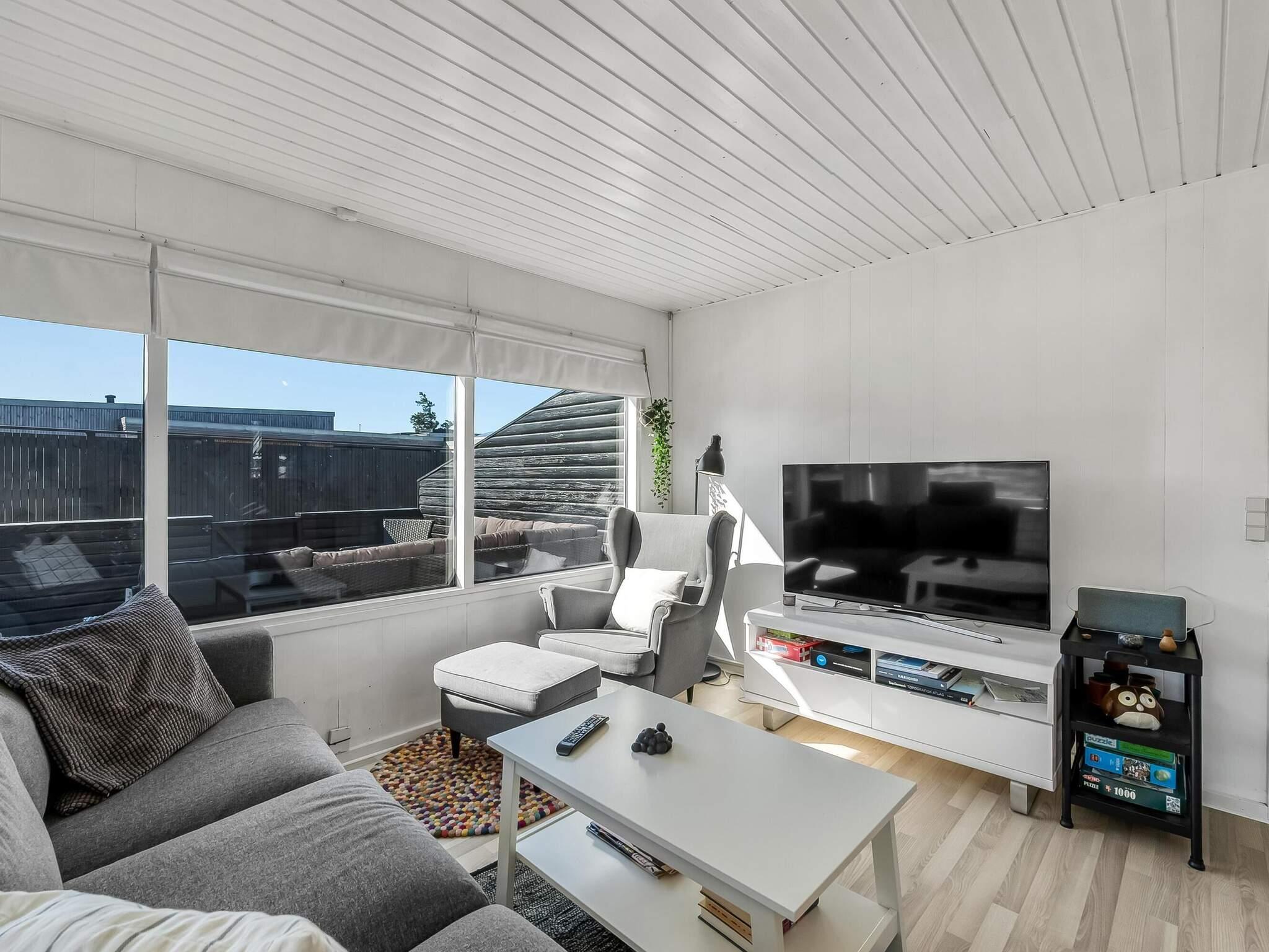 1 Opholdsstue: Brændeovn, Chromecast, tv, barneseng og høj stol