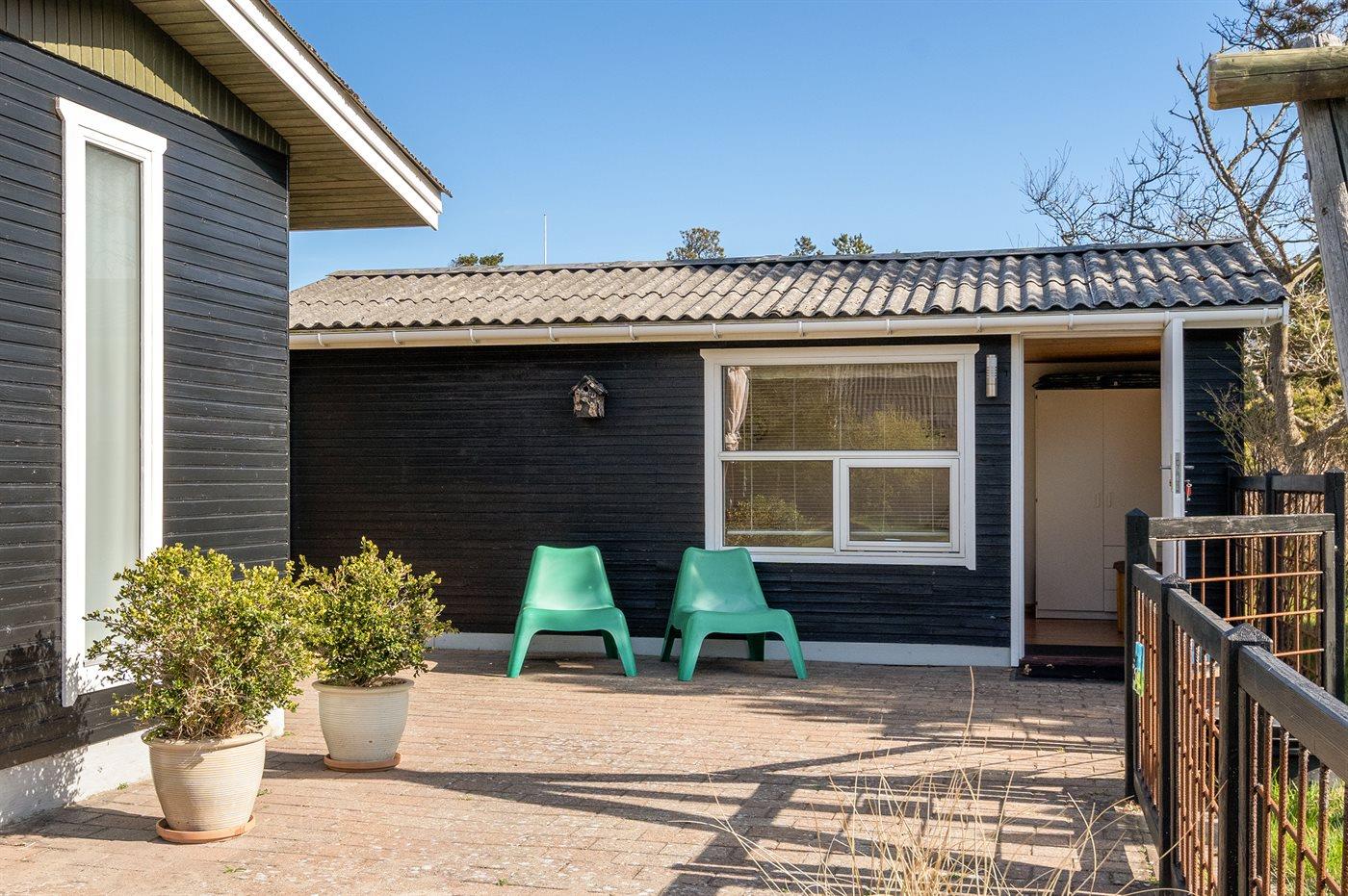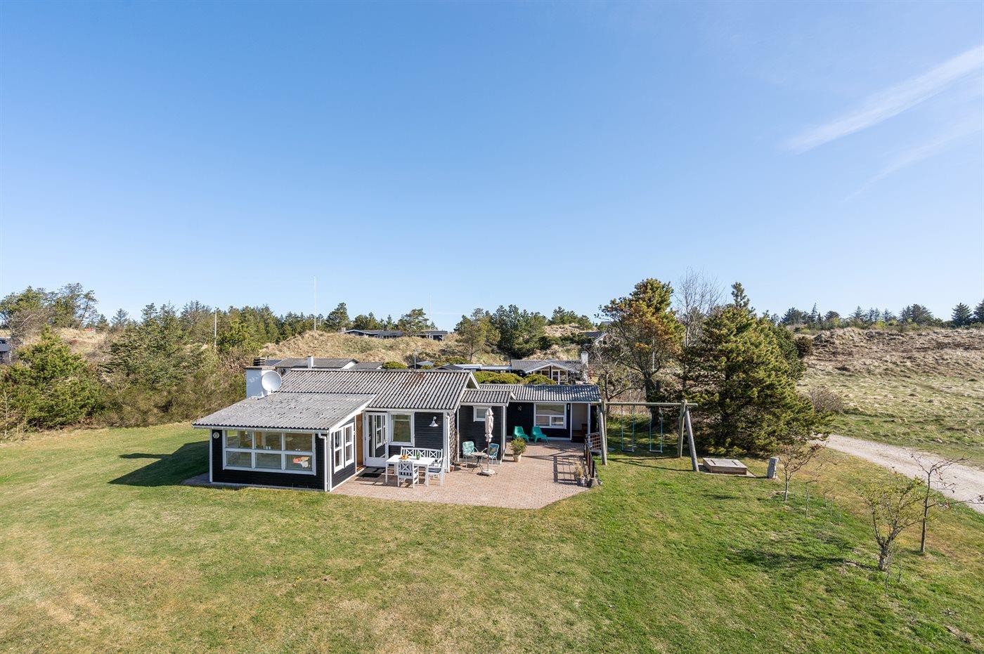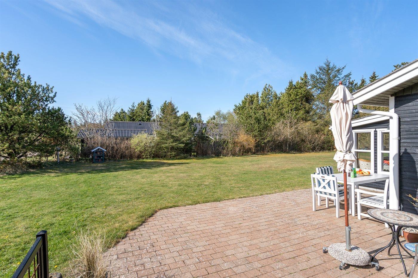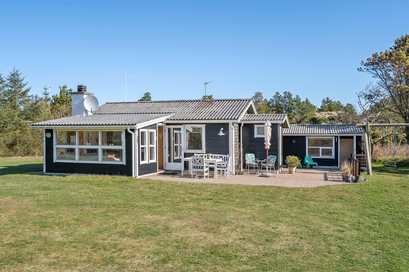 Gemütliches Ferienhaus mit Terrasse auf Naturgrundstück nahe Naturschutzgebiet in Blokhus, Dänemark, ideal für Familien.