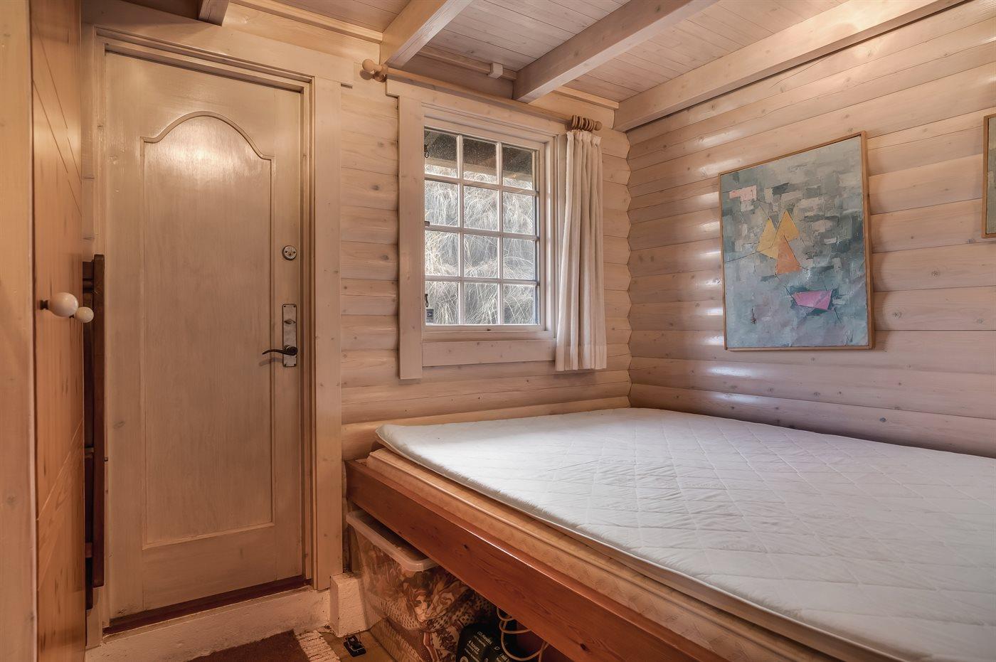 Die Schlafplätze verteilen sich auf 2 Schlafräume. 2 Schlafplätze in einem Doppelbett. 3 Schlafplätze in Etagenbetten. 1 von diesen Schlafplätzen befindet sich im offenen Obergeschoss.
