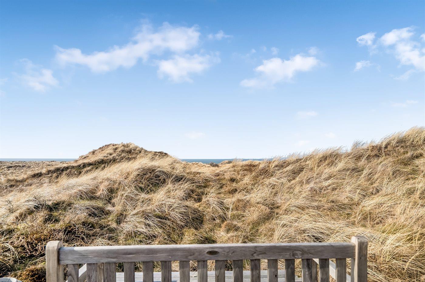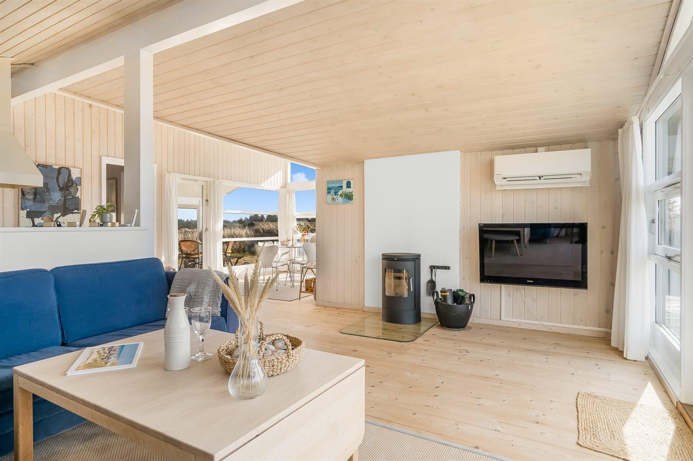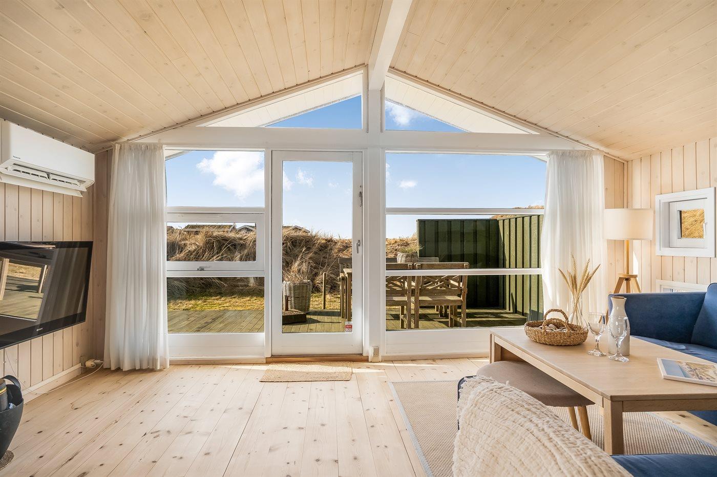 Charmantes Ferienhaus in Blokhus mit Meerblick, großer Terrasse und moderner Ausstattung für entspannte Tage in der Natur.