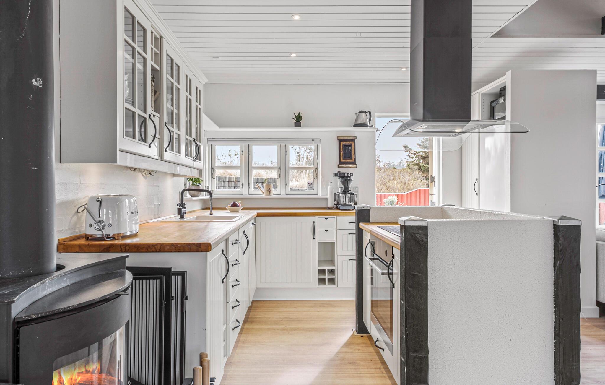 Ein helles, gemütliches Ferienhaus mit Kaminofen und großer Terrasse nahe Blokhus Strand.