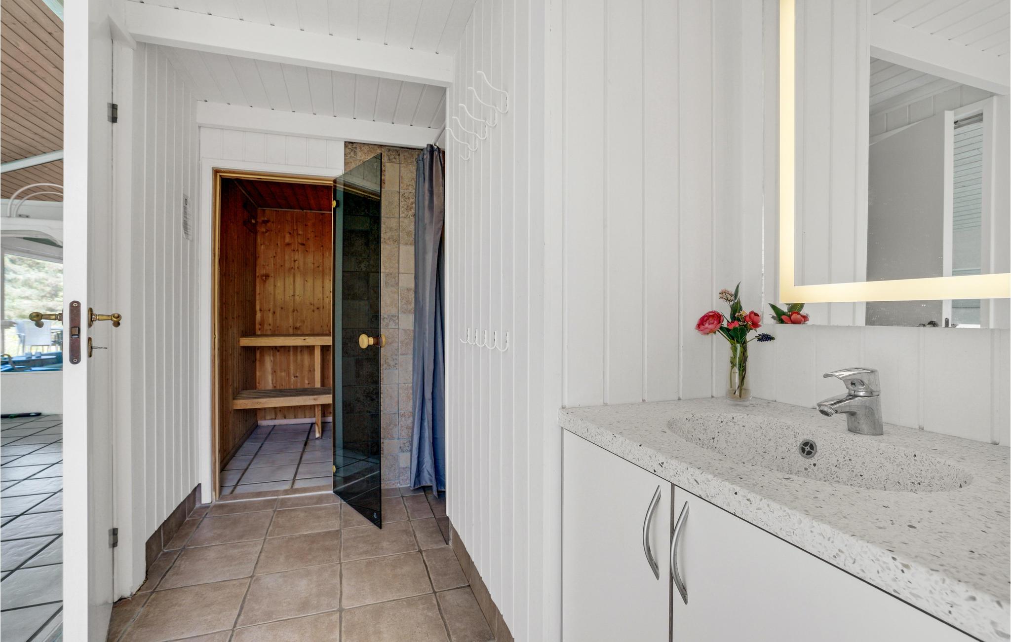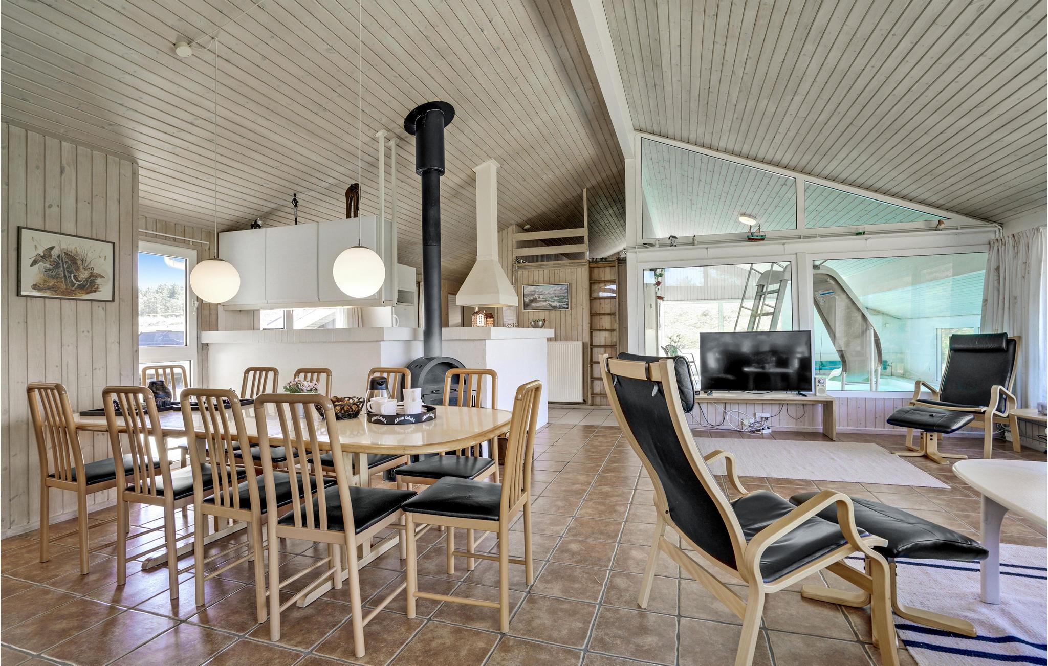 Naturerlebnisse erster Klasse, das wird Ihnen hier geboten. Das Haus liegt am Ende einer Sackgasse mitten in einem schönen Naturgebiet. Hier können Sie vom Wohnzimmer aus das Treiben Ihrer Kinder im Poolraum beobachten, gleichzeitig bekommen Sie den Eindruck als ob Sie im Freien sitzen, denn die Panoramafenster geben den Blick auf Heide, Dünen und Wald frei. Boxer-TV sorgt für eine große Auswahl an Fernsehkanälen. Hier ist es in jeder Jahreszeit schön. Ein Ausflug ins Fårup Sommerland ist ein besonderes Erlebnis, hier warten Vergnügungen für Jung und Alt.