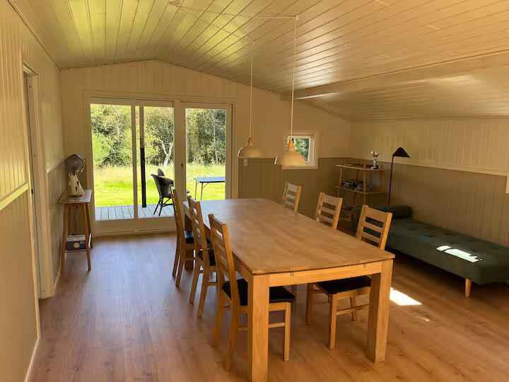 Neu renoviertes, geräumiges Ferienhaus mit 4 Schlafzimmern mit Doppelbetten und 1 zusätzlichem Schlafplatz. Fußbodenheizung und Kaminofen. Großes Grundstück und 85 m² Holzterrasse. Nahe Strand, Stadt und Aktivitäten.