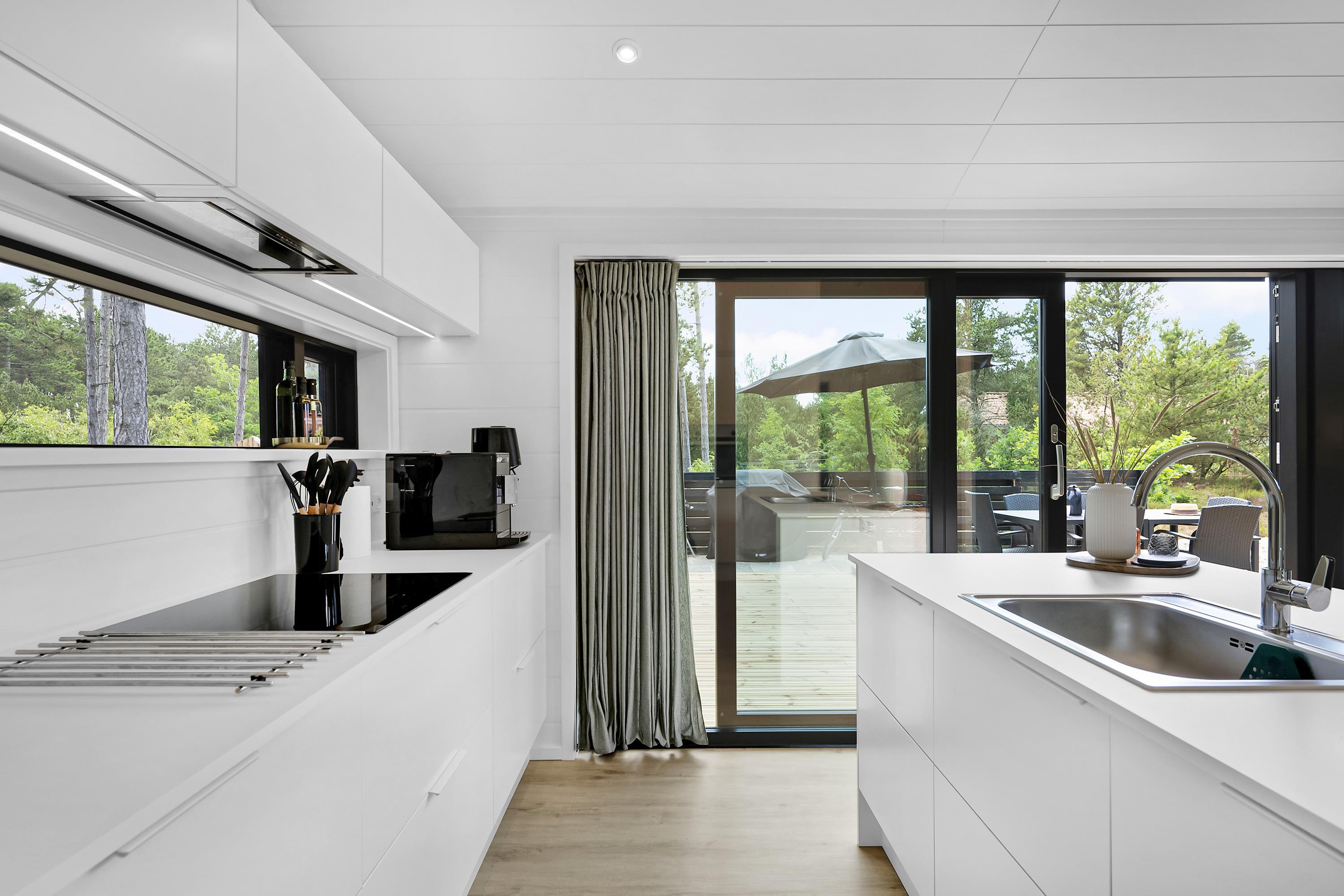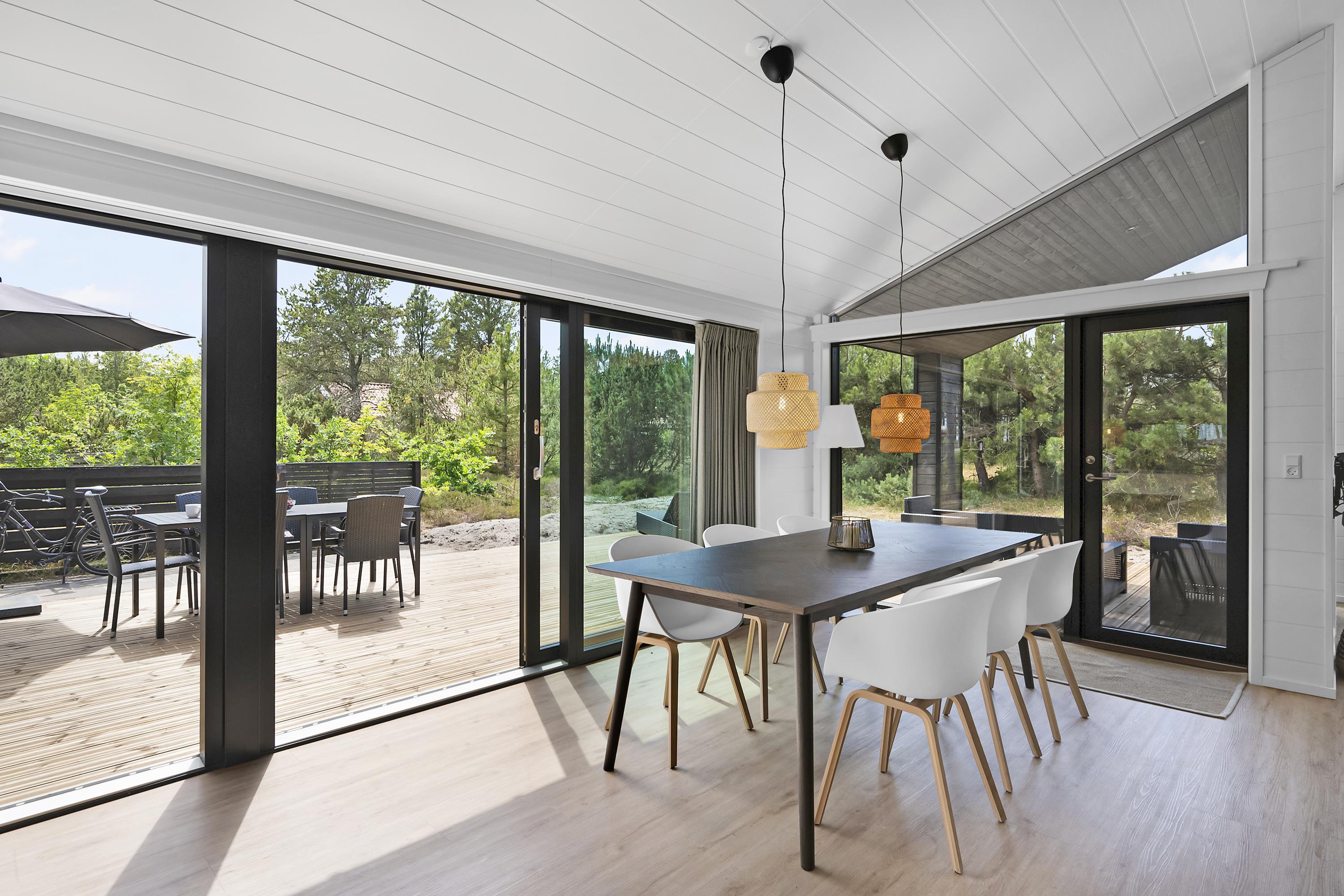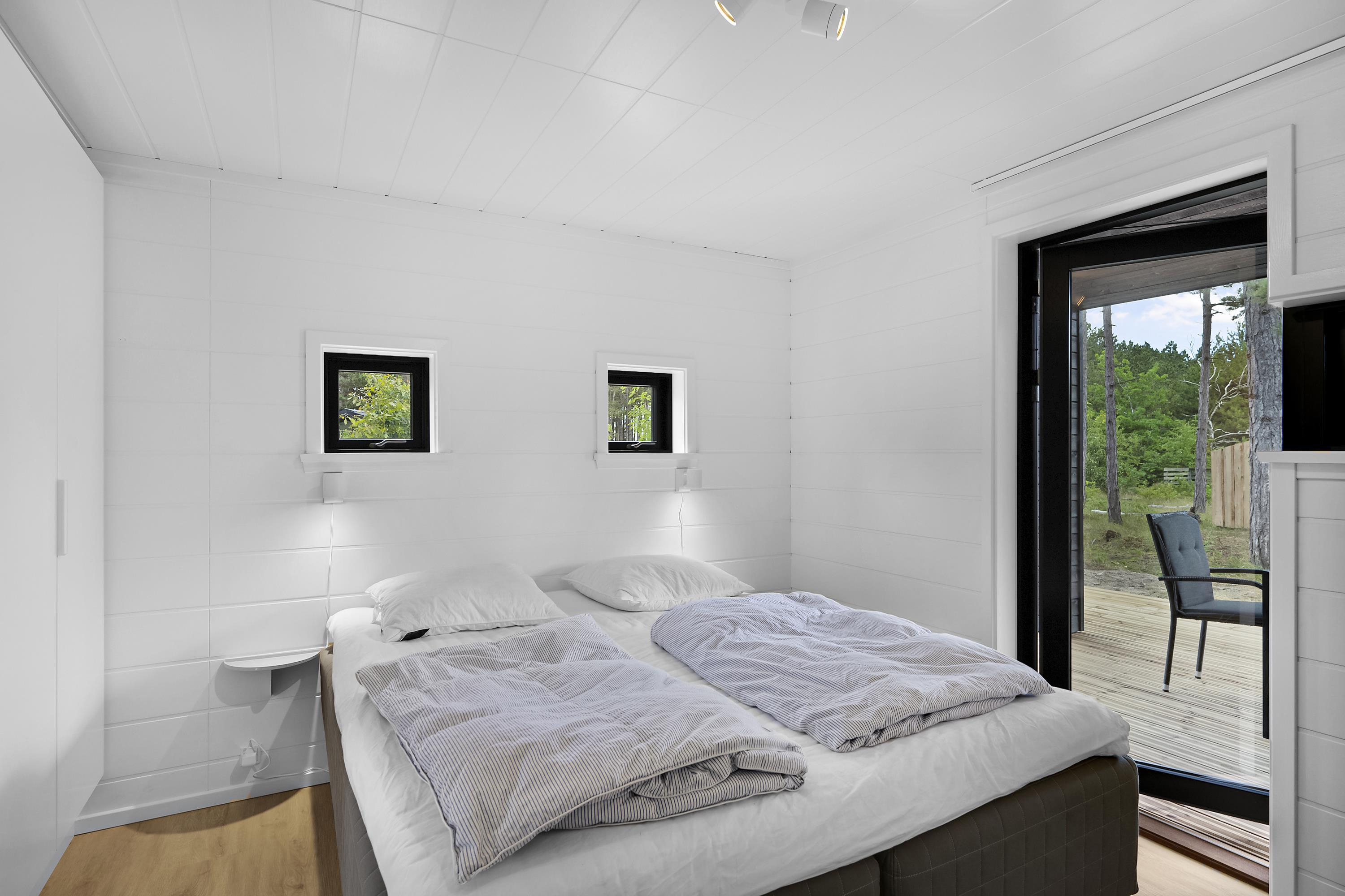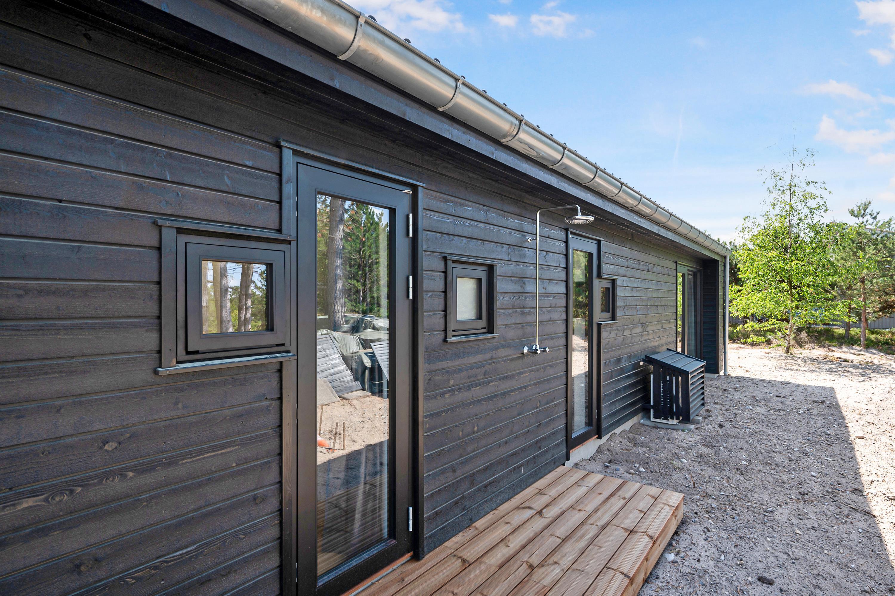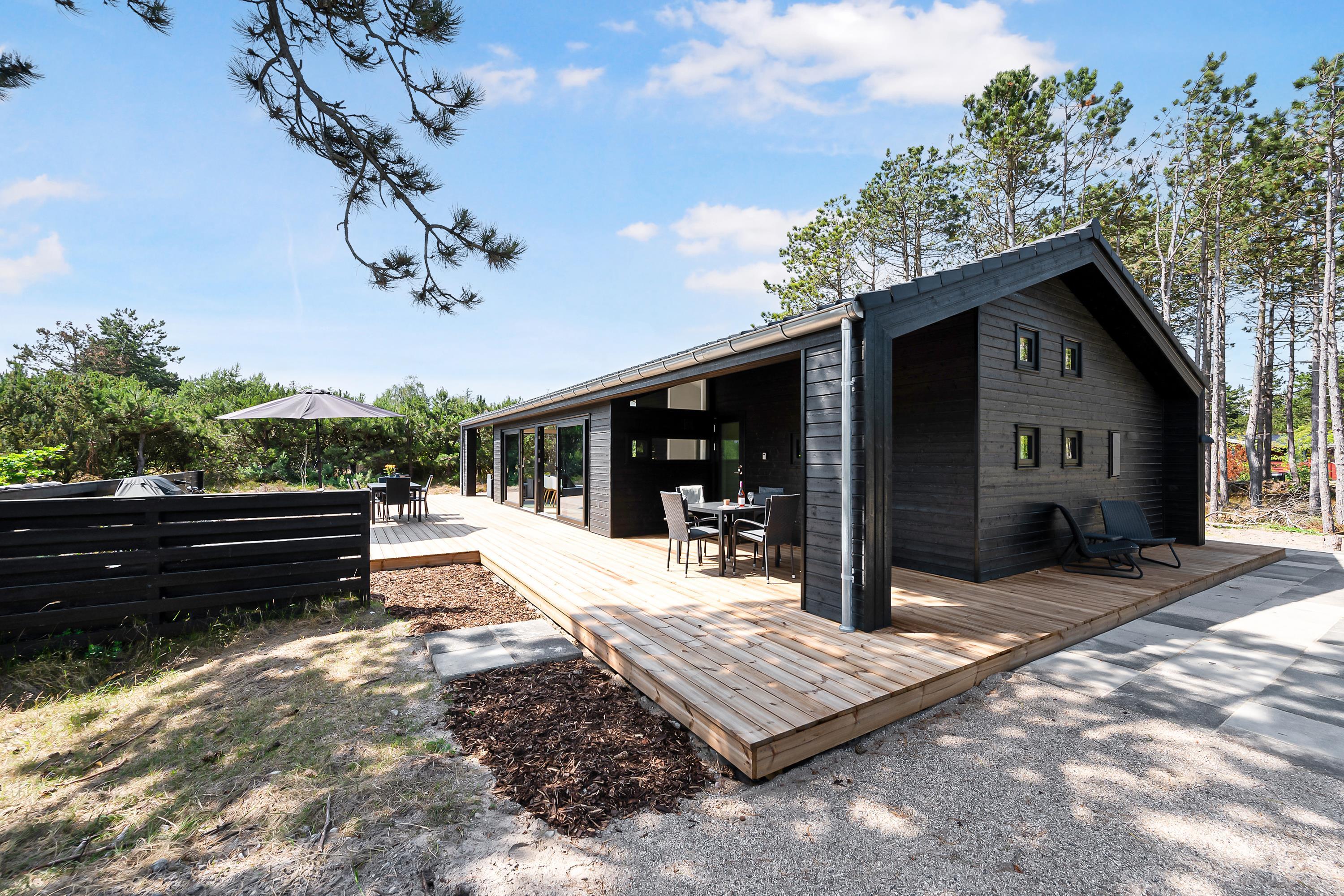Sehr schönes Ferienhaus im Bau, nur 150 Meter von einem schönen Sandstrand entfernt. Das Haus ist 101 m2 groß und wird ein großes, helles und gut eingerichtetes Wohnzimmer mit guten Möbeln, Wärmepumpe und Biokamin enthalten. In Verbindung mit dem Wohnzimmer finden Sie die gut ausgestattete Küchenabteilung mit Kücheninsel. Die sieben Schlafplätze des Hauses verteilen sich auf drei gute Zimmer; davon zwei mit Doppelbetten und ein Zimmer mit einem Doppelbett und einem Etagenbett. Zwei schöne Badezimmer mit Fußbodenheizung und ebenerdiger Dusche. Es wird sowohl eine überdachte als auch eine offene Terrasse mit Gartenmöbeln, Liegestühlen und einem Grill geben. Für die kleinen Urlauber wird es einen Hochstuhl geben. WLAN ist vorhanden.