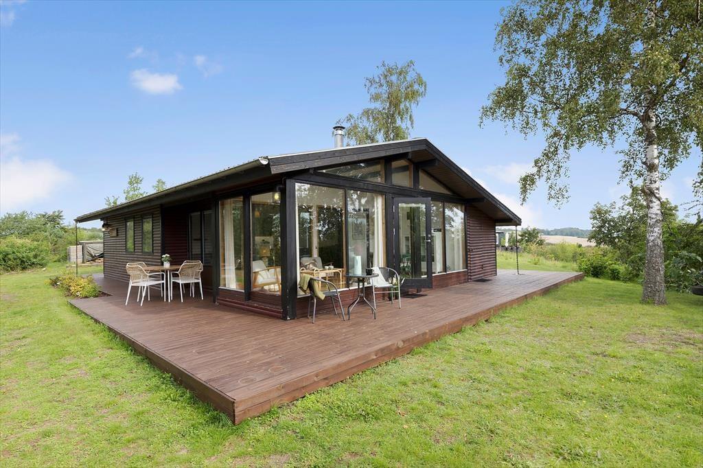 Dein Ferienhaus liegt auf einem attraktiven Grundstück, das sich bestens zum Spielen, zum Entspannen und für gemütliche Stunden unter freiem Himmel eignet. Auf den schönen Terrassenarealen stehen Gartenmöbel und ein Grill bereit, sodass du die langen Sommerabende im Kreise deiner Lieben in vollen Zügen genießen kannst. Wenn du im Urlaub gern die Angelrute auswirfst, darfst du dich auf einen Outdoor-Fischreinigungsplatz freuen. Dein Ferienhausgrundstück besticht mit einer fantastischen Aussicht über die hübsche Landschaft. Am Horizont siehst du sogar das Meer glitzern.