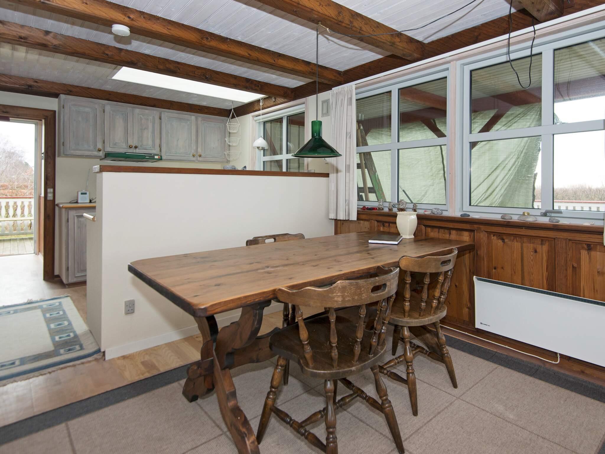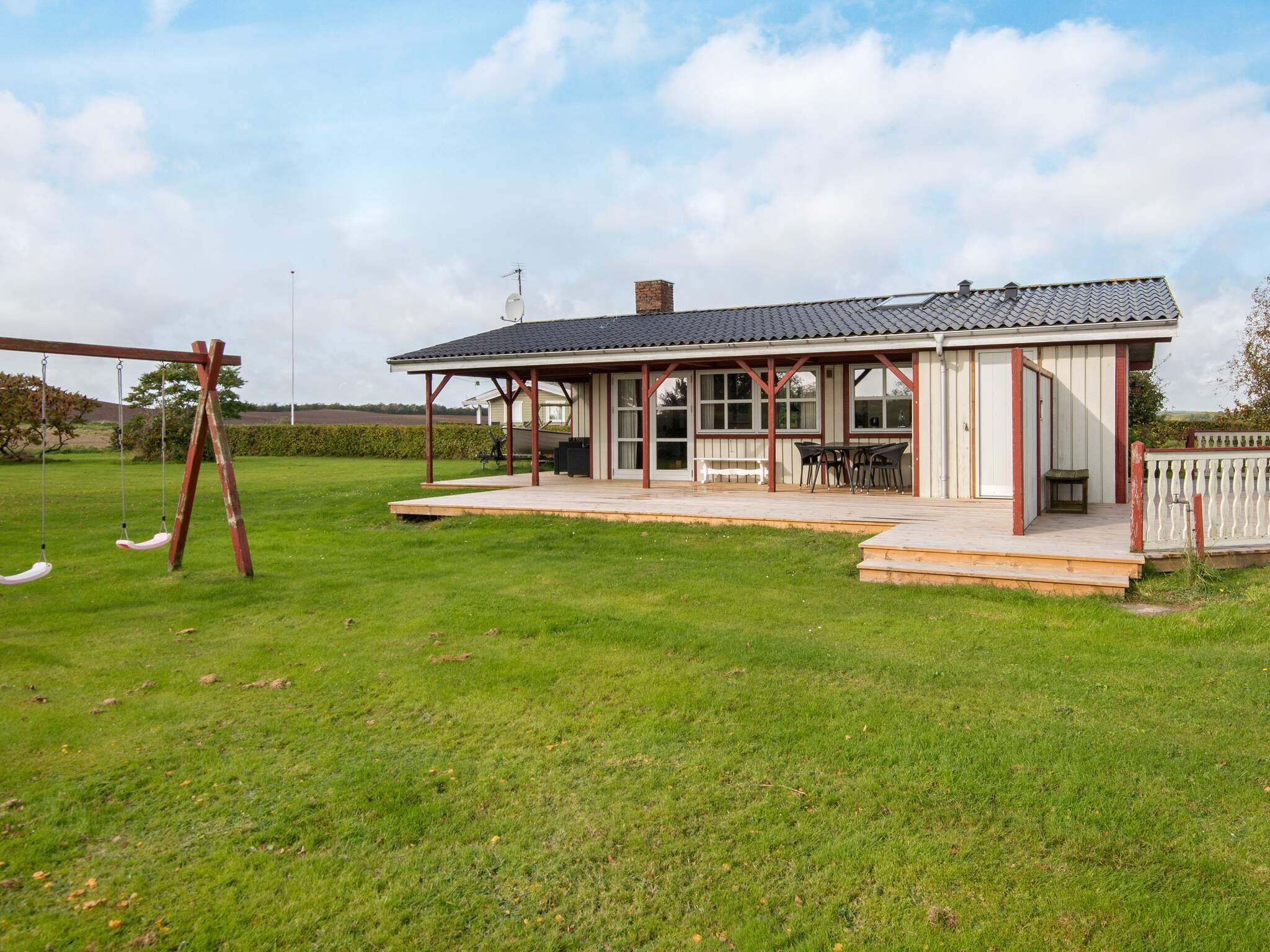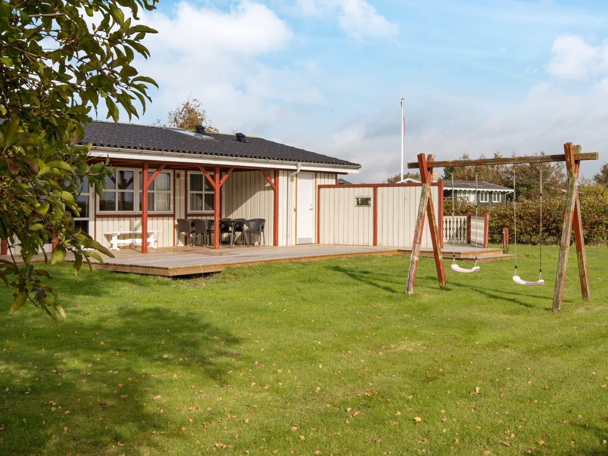 In der Nähe des Badestrands von Holme Strand, am Ende einer Straße, liegt, wunderbar ruhig, dieses Ferienhaus. Von der Terrasse aus kann man ein wenig vom Wasser sehen.