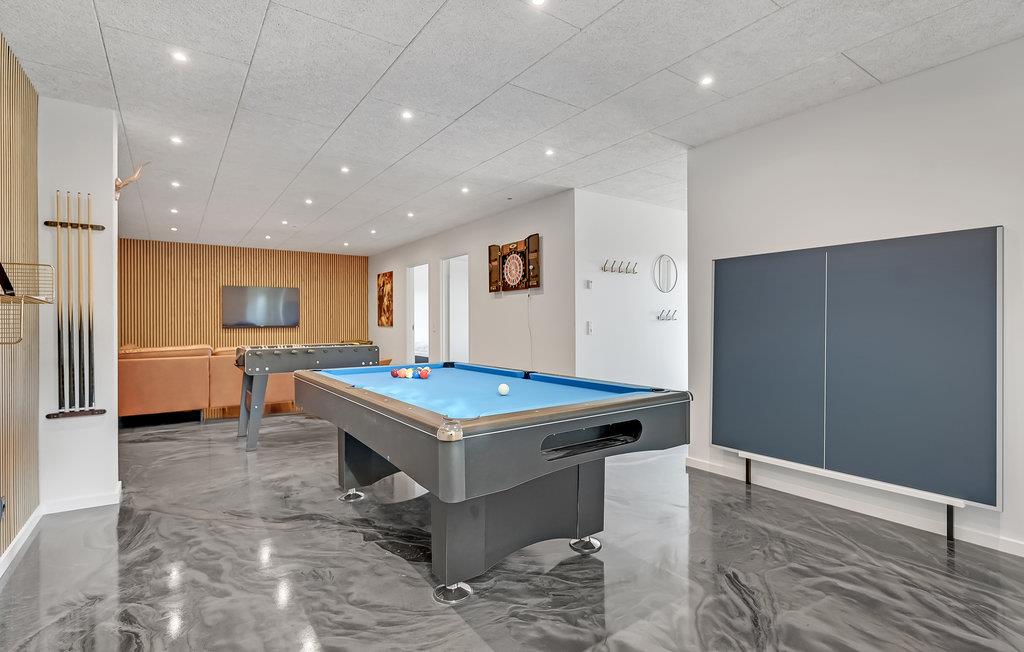 Betreten Sie mir Ihrer Großfamilie oder befreundeten Familien dieses wunderschöne Ferienhaus und fühlen sich hier direkt wie zuhause. Alle Bewohner werden auf Ihre Kosten kommen. Vor allem die Jüngeren werden Sie über die vielen Annehmlichkeiten freuen. Im Aktivitätsraum können Sie sich bei Billard, Tischtennis und Fußballspielen messen. Außerdem gibt es eine gemütliche Sofagarnitur mit Flatscreen-TV zum Spielen. Die Küche ist gut ausgestattet und in offener Verbindung mit Esstisch und Wohnzimmer, so dass Sie beim Kochen Spaß haben und sich mit den Köchen unterhalten können.