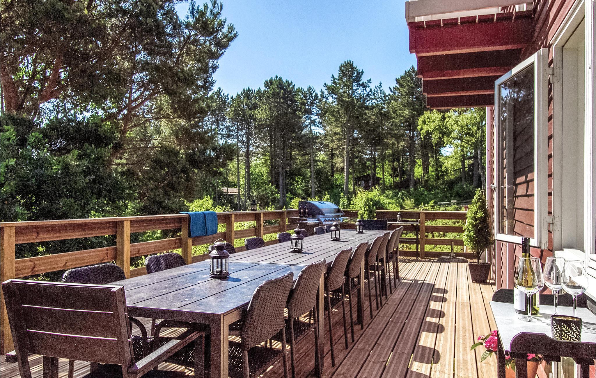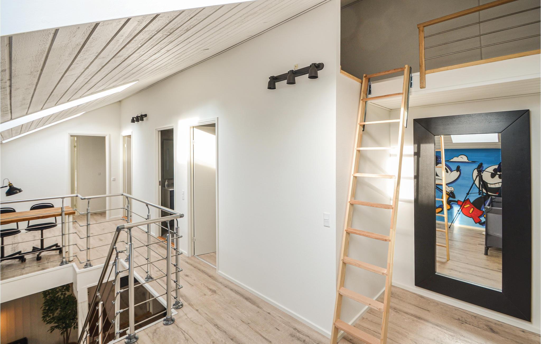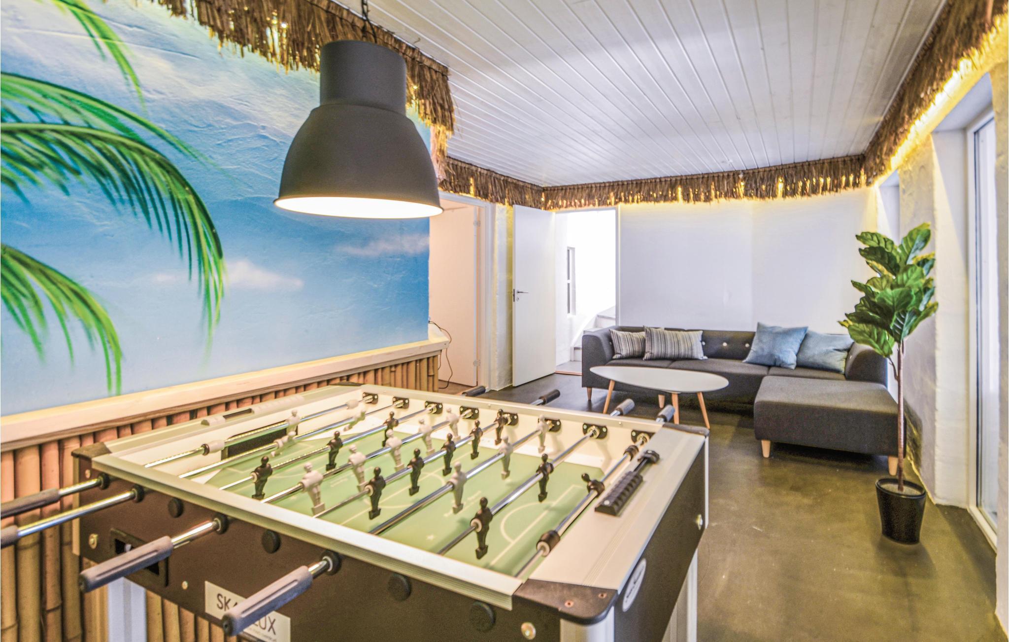 Nach einer umfassenden Renovierung wird Ihnen hier auf über 400 m² ein Ferienhaus mit hochmoderner Ausstattung geboten. Ein wunderschöner Urlaub ist somit garantiert. Das Haus ist auf drei Etagen und mit insgesatm 8 Schlafzimmern, mehreren Schlafzwischenböden so eingerichtet, dass hier insgesamt 26 Personen Platz finden. Ideal also für einen Aufenthalt mit mehreren Familien. Außerdem bietet die Inneneinrichtung Unterhaltung: Ein großer Wellnessbereich mit Swimmingpool und Sauna sowie ein Aktivitätsraum mit Kicker, Pooltisch und einer kleinen Bar sorgen für ein abwechslungsreiches Programm. Der große Spielplatz gehört nicht zum Haus, sondern ist ein öffentlicher Spielplatz, den Ihre Kinder natürlich gerne nutzen können.