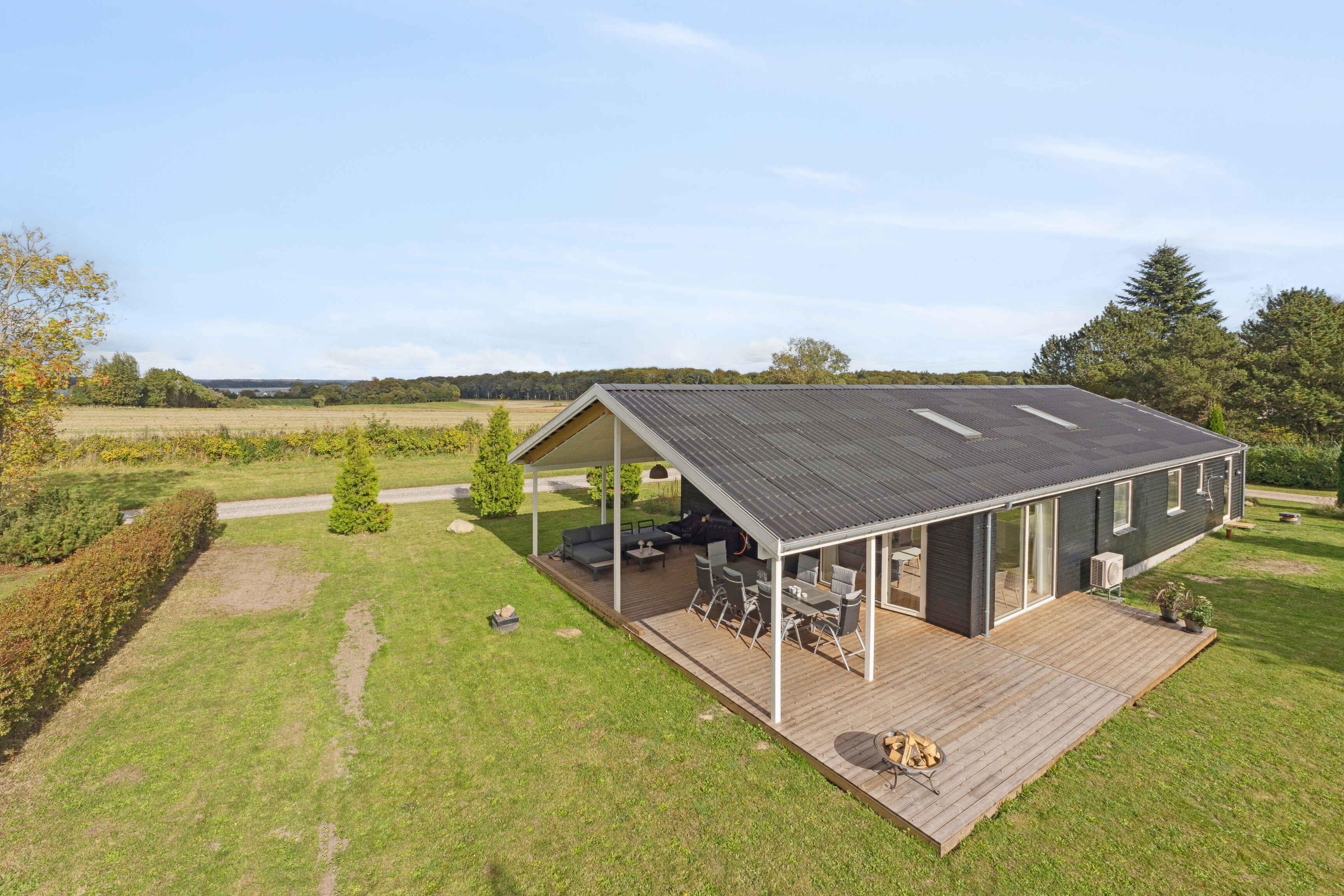 Neues Ferienhaus mit schöner Aussicht auf Felder und Wald, Wärmepumpe, Internet, Grundstück mit Platz zum Spielen, Außenküche, Außendusche, Spielgerüst, Schaukel, Rutsche