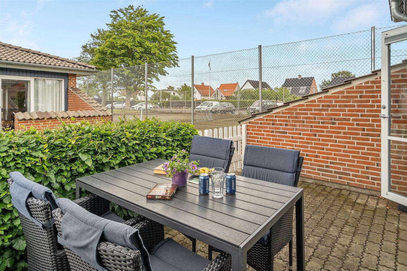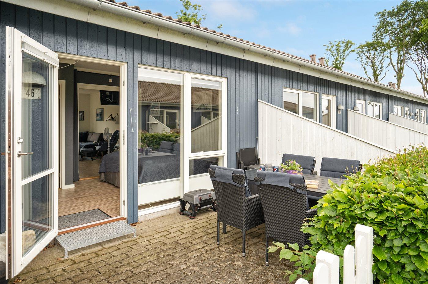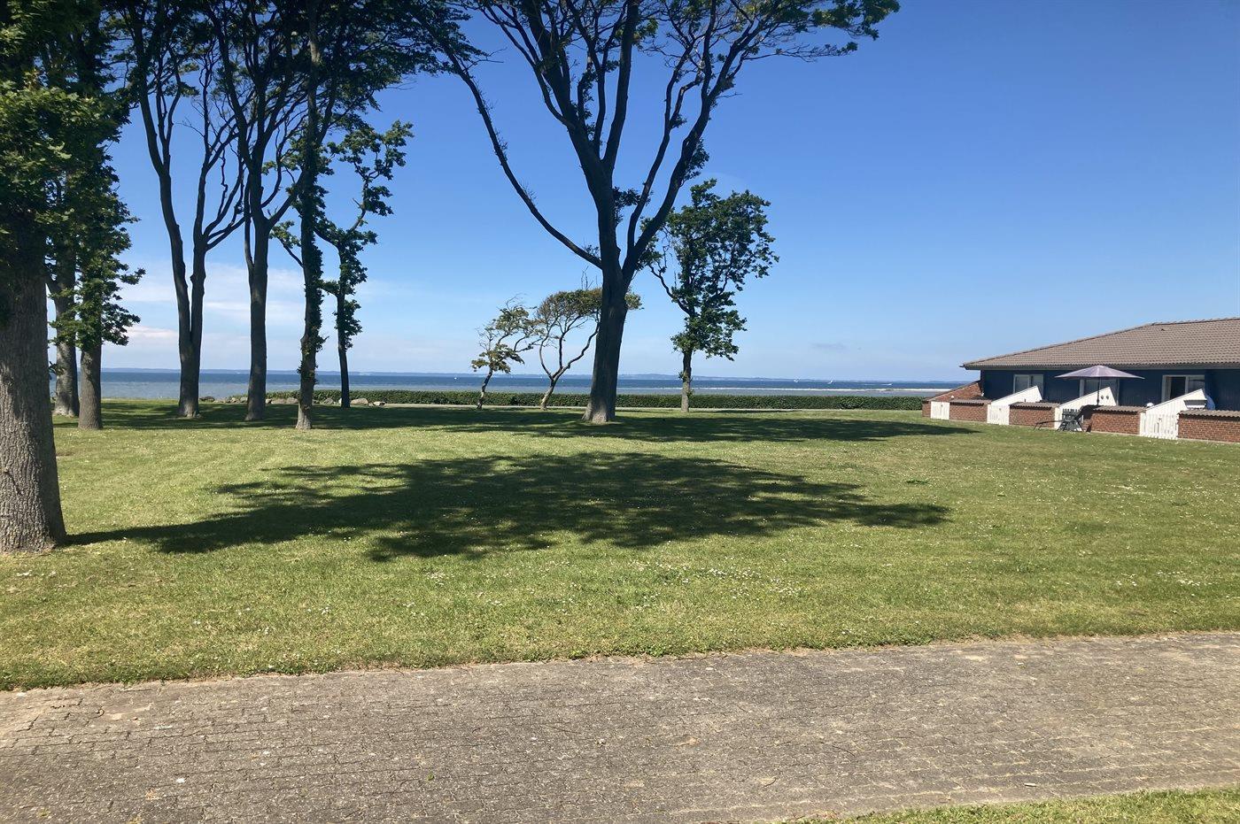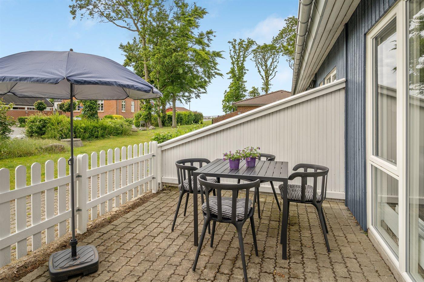 Großzügige Ferienwohnung in Bogense mit Meerblick, zwei Terrassen und kostenlosem Tennisplatz.