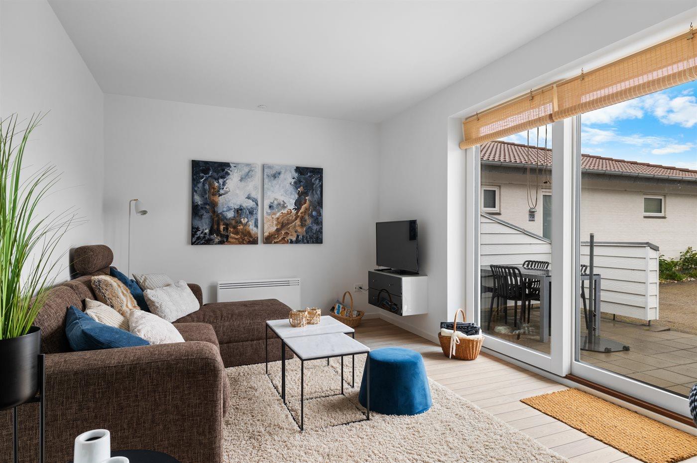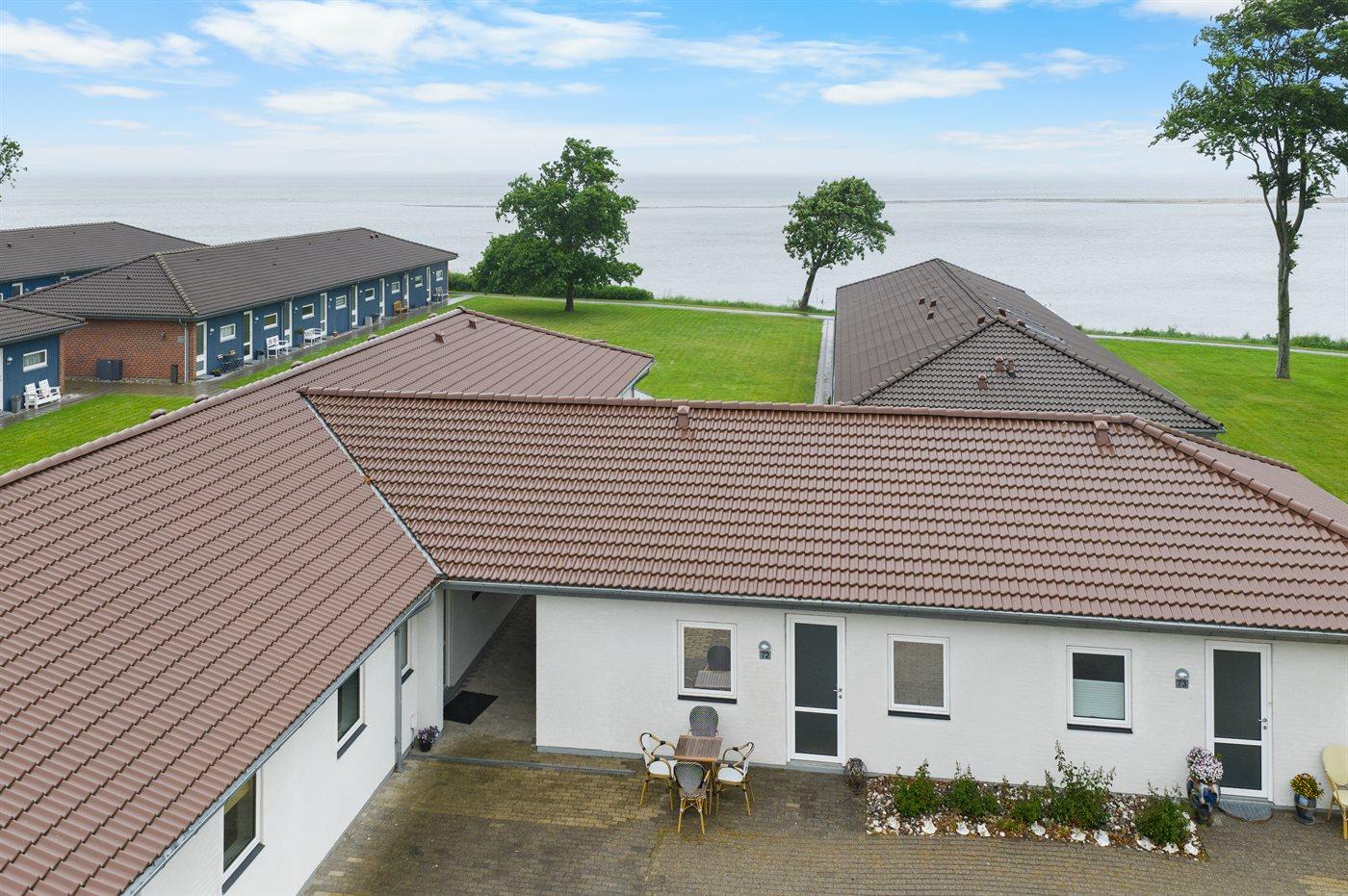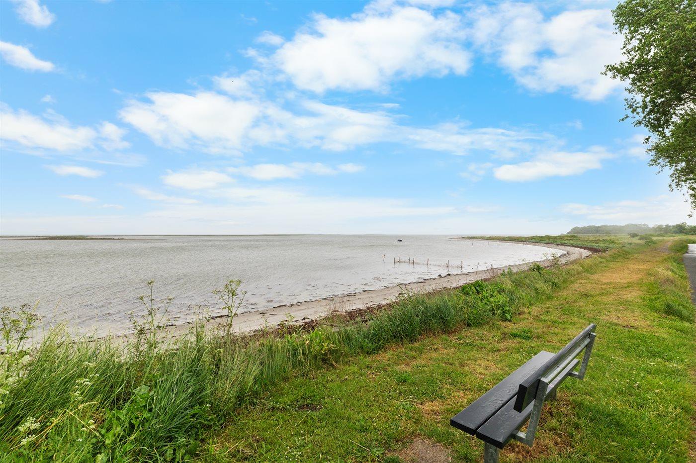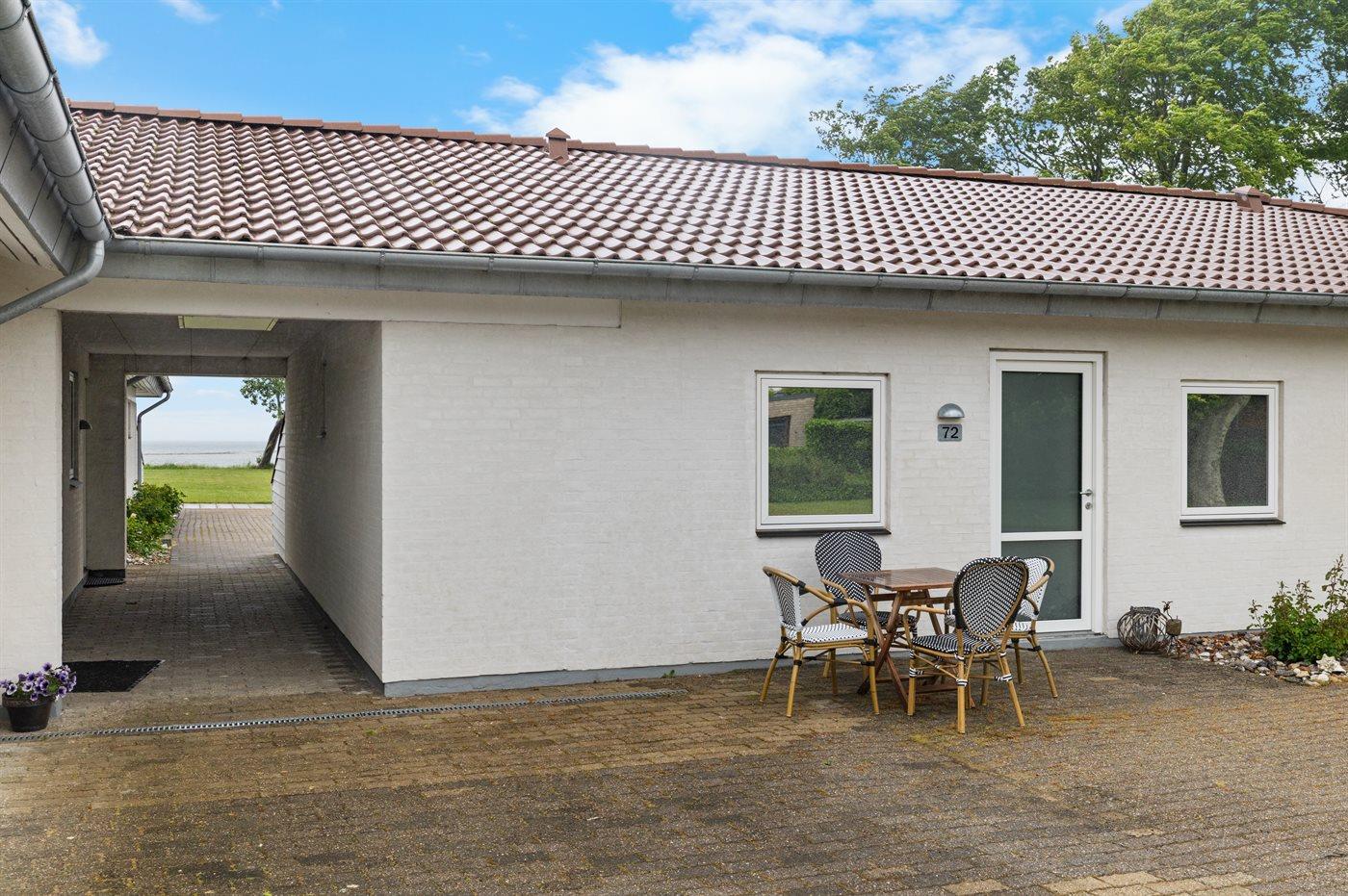 Moderne Ferienwohnung mit Meerblick und Terrasse nahe Bogense Hafen.