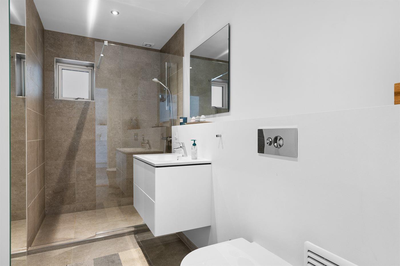 Es gibt 1 Badezimmer mit Duschnische und 1 Toilette.