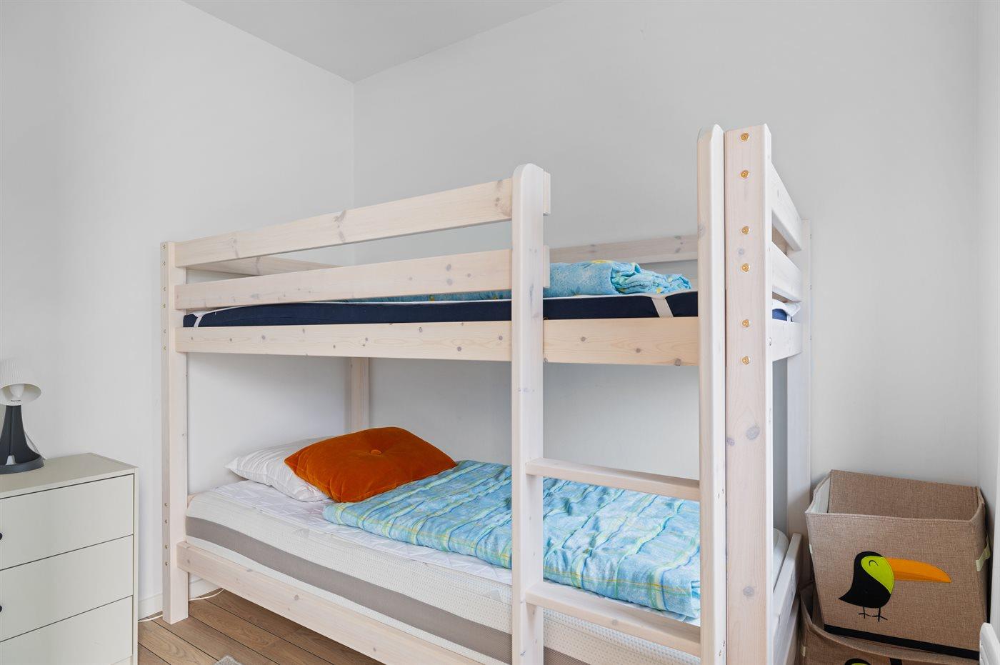 Die Schlafplätze verteilen sich auf 2 Schlafräume. 2 Schlafplätze in einem Doppelbett. 2 Schlafplätze in einem Etagenbett. Ferner steht ein Kinderbett zur Verfügung.