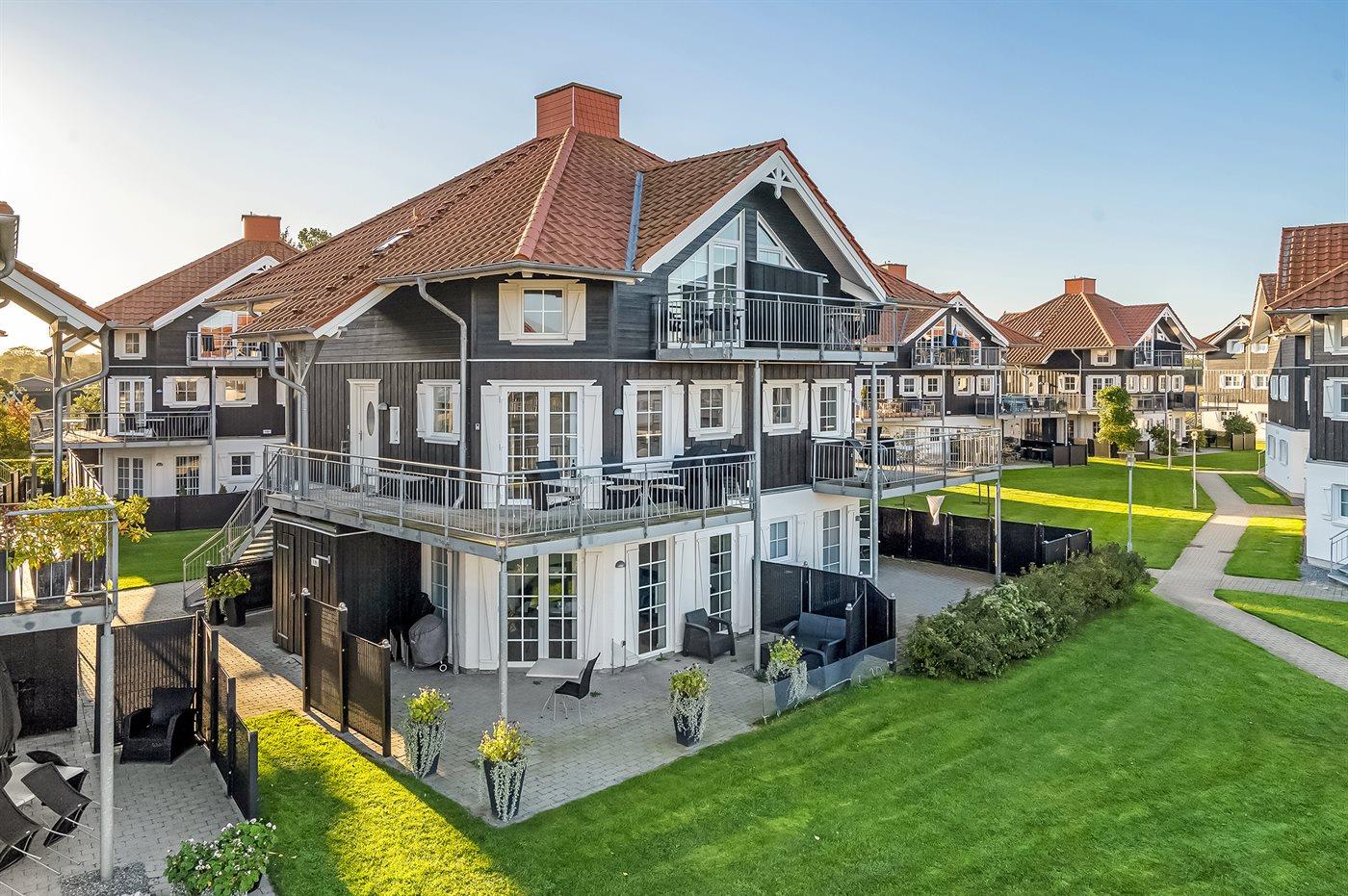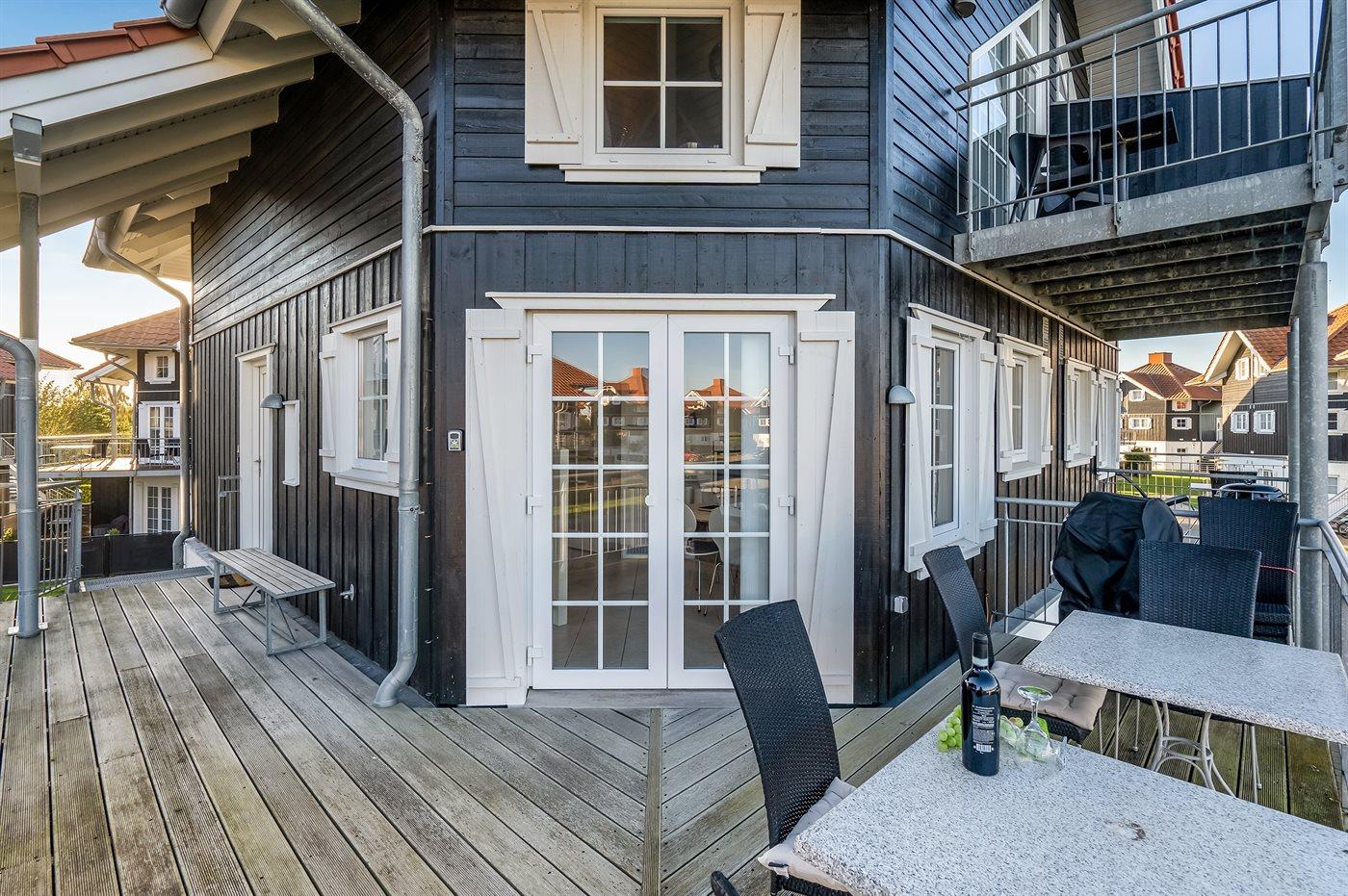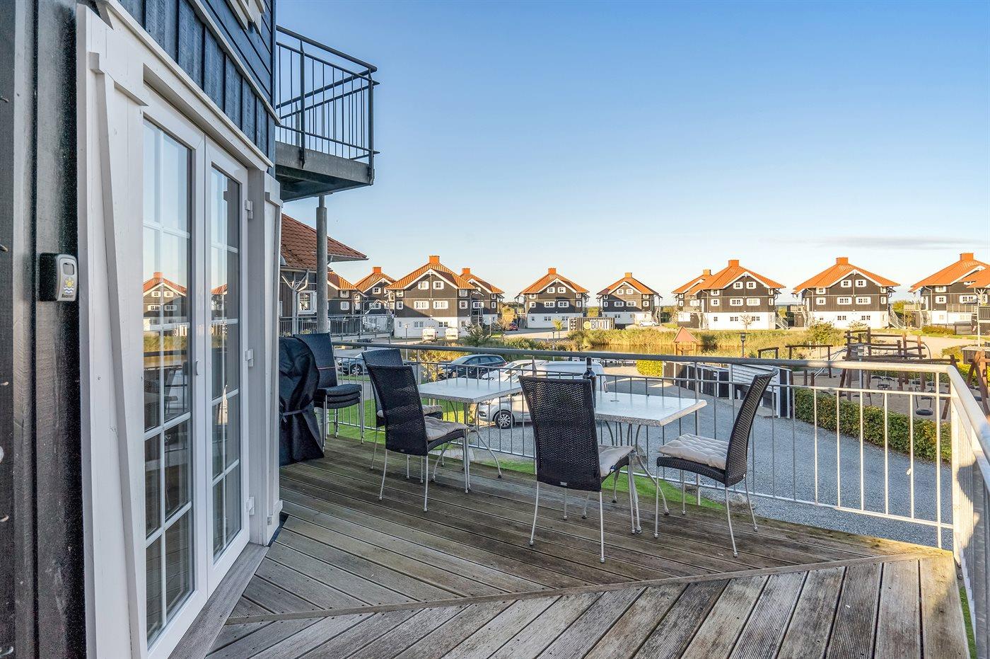 Gemütliche Ferienwohnung in Bogense mit Meerblick, Sauna, Whirlpool und großer Terrasse für entspannte Urlaubstage.
