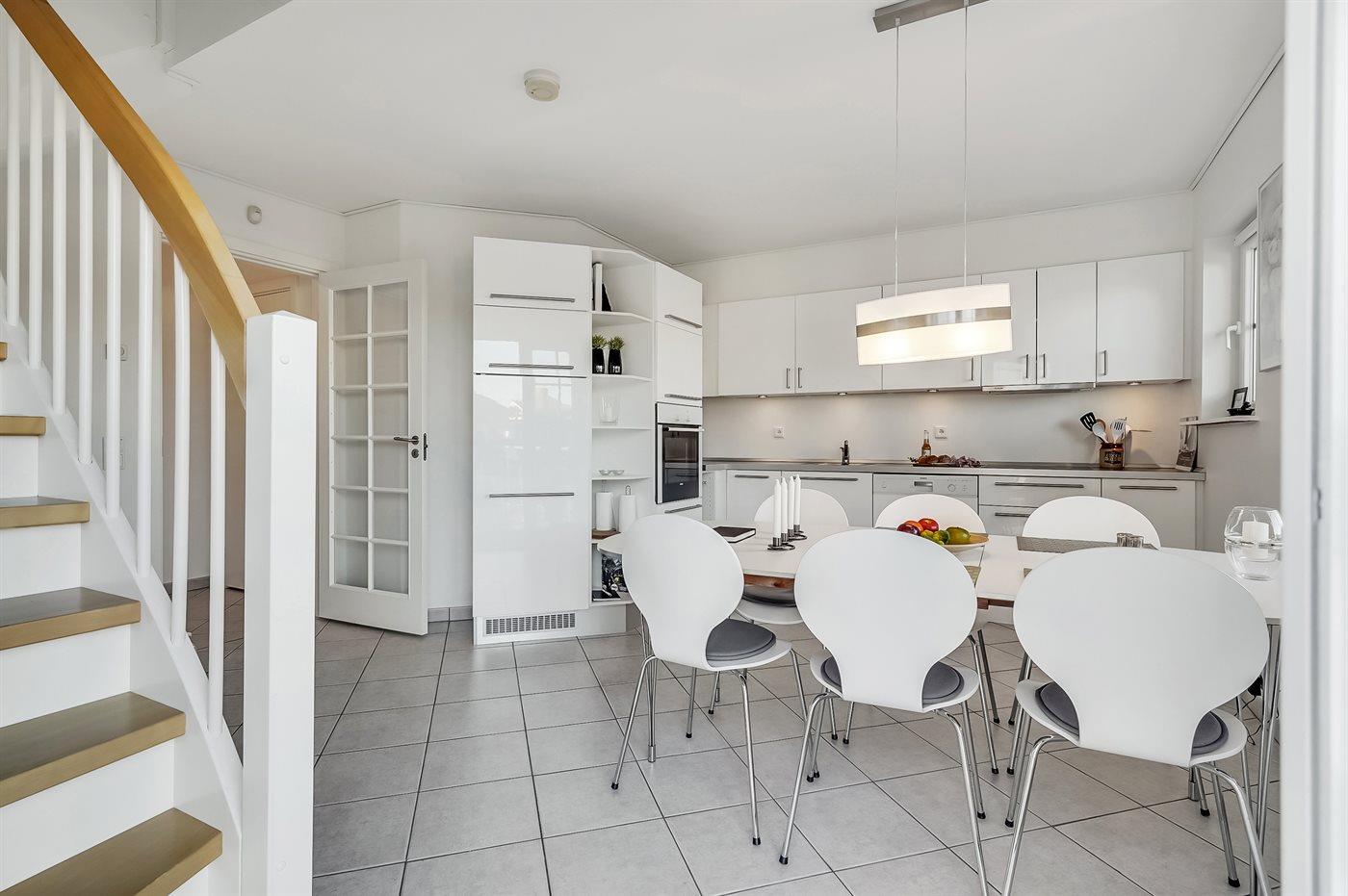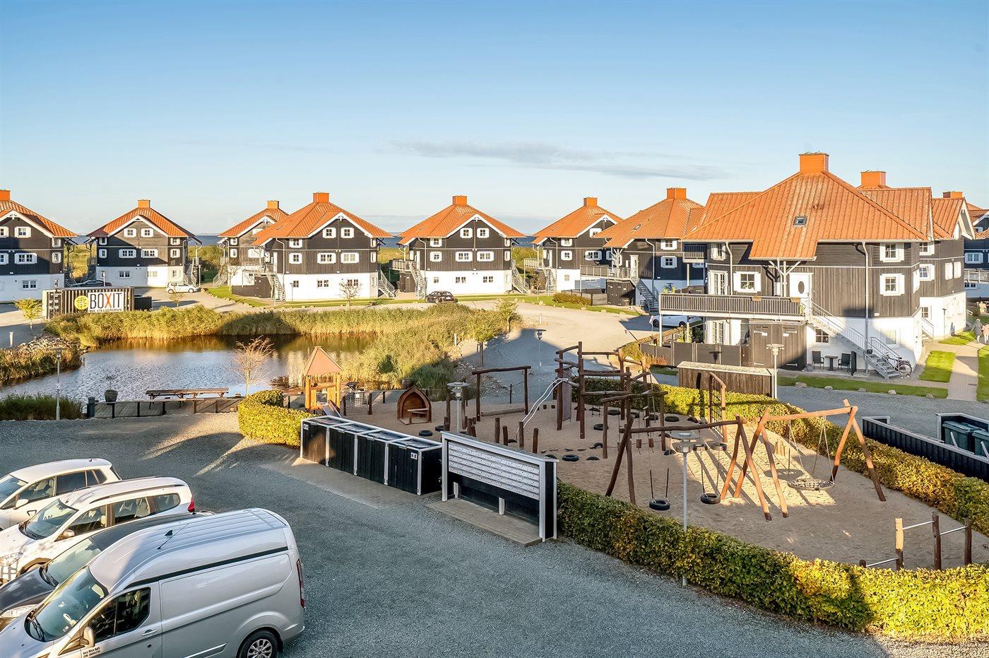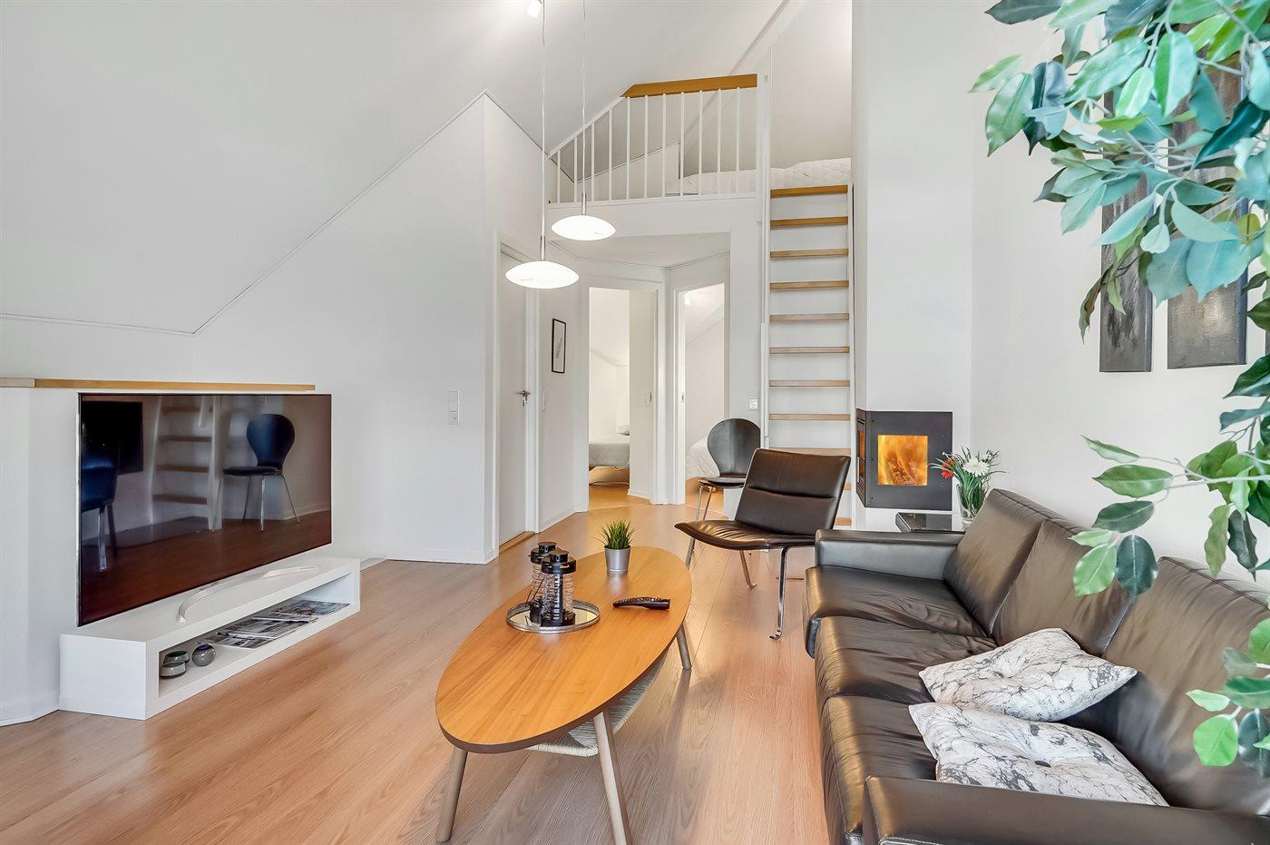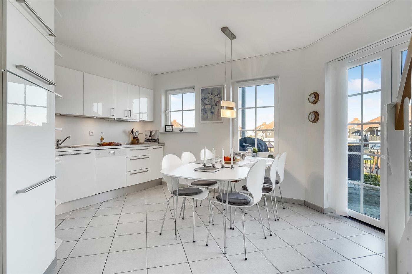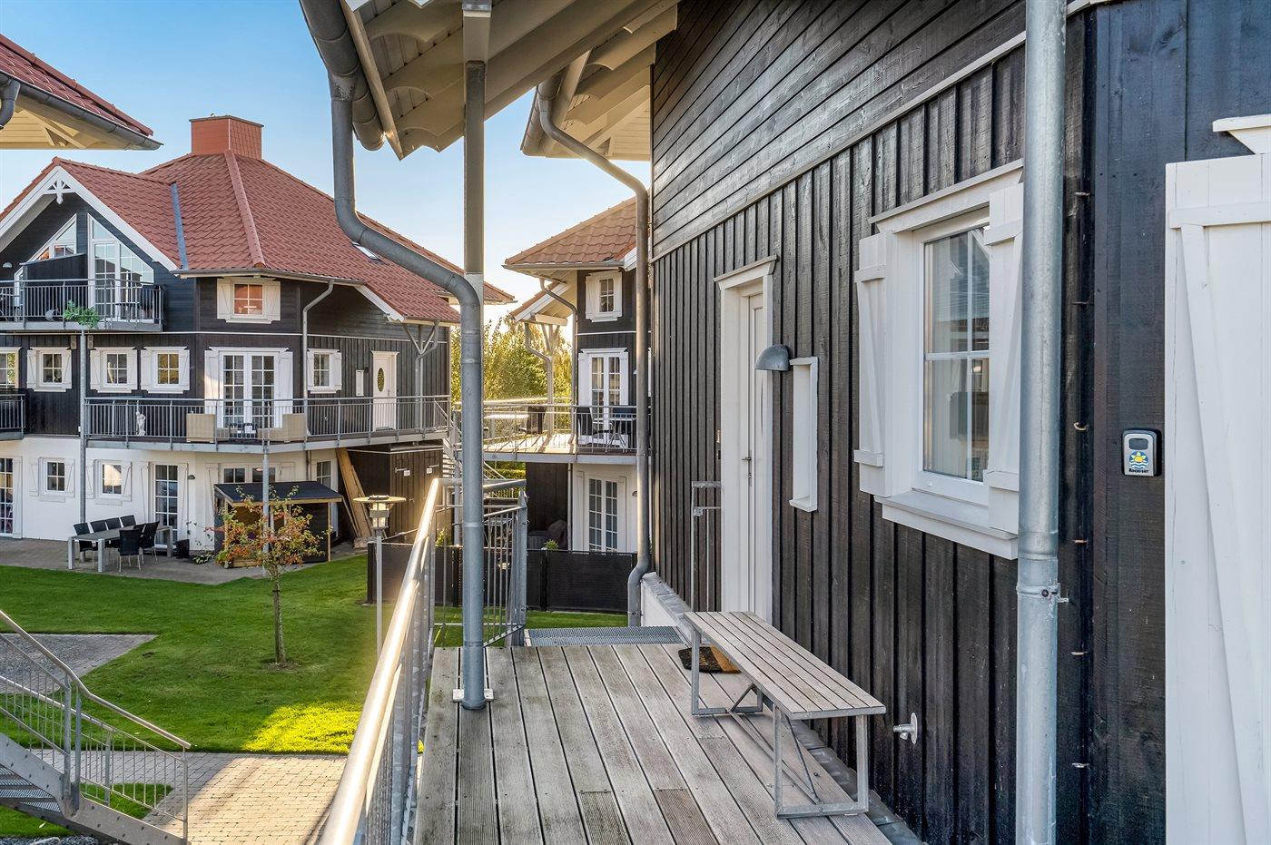 In dem gemütlichen Feriengebiet Bogense, nahe an Yachthafen und Strand finden Sie diese besonders schöne und gut eingerichtete Ferienwohnung. Die Wohnung die sich auf 2 Ebenen verteilt liegt in dem beliebten Ferienhausgebiet, das als ”Tyrolerhusene” auf deutsch ”die Tiroler Häuser” bekannt ist. Die Wohnfläche verteilt sich auf den 1. und 2. Stock und verfügt u. a. über eine große Terrasse/Balkon, von wo aus Sie die Aussicht auf die Umgebung und das Wasser genießen können. Übrigens: 2 der insgesamt 8 Schlafplätze finden Sie in Form von Matratzen im offenen Obergeschoss. Diese Schlafplätze sind aufgrund der Zugänglichkeit am besten für die jüngere Generation geeignet.