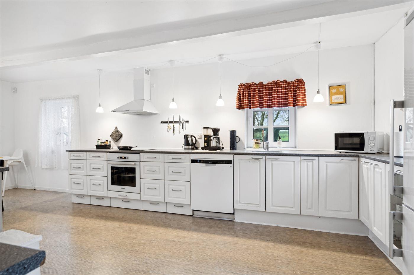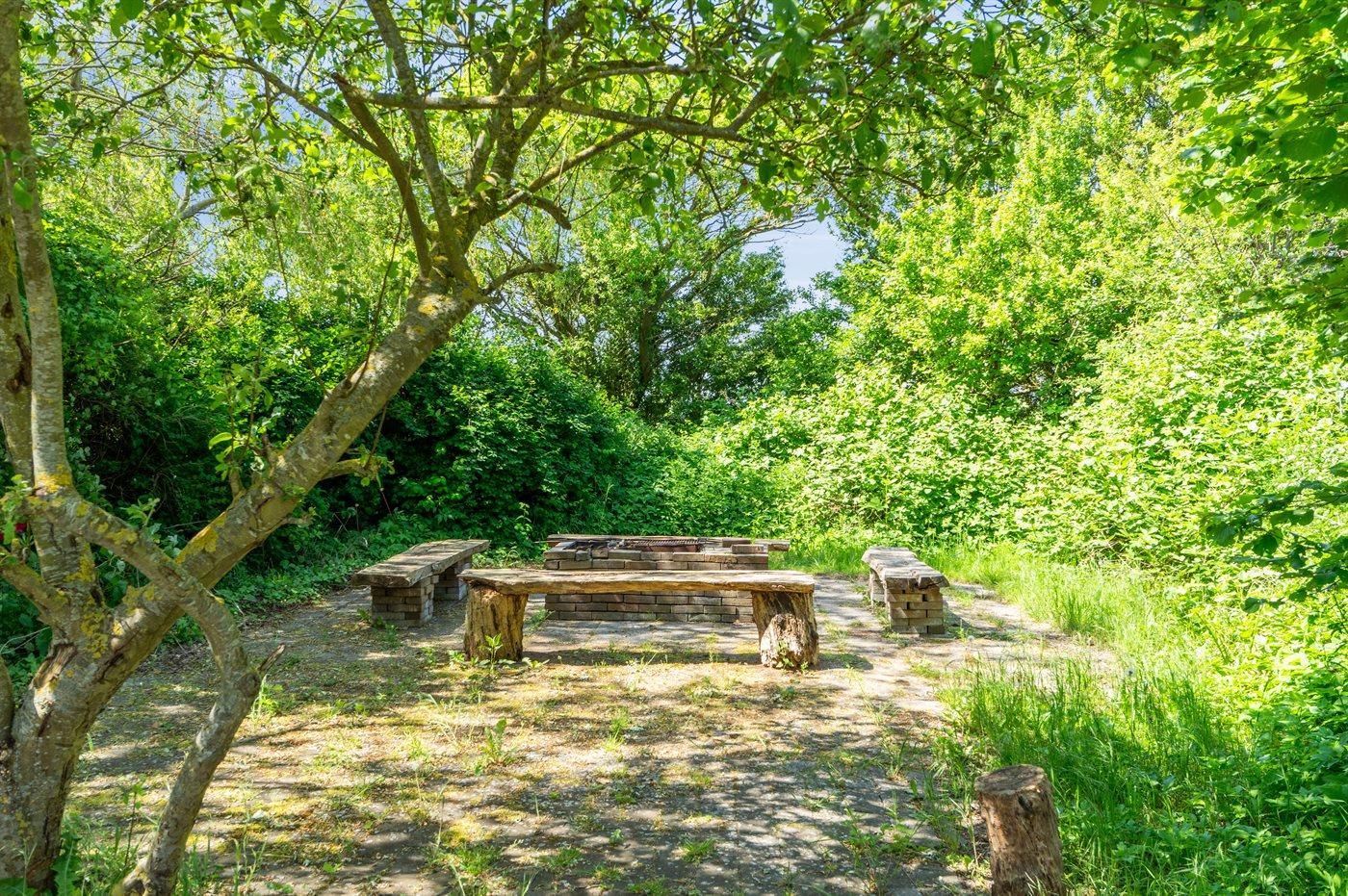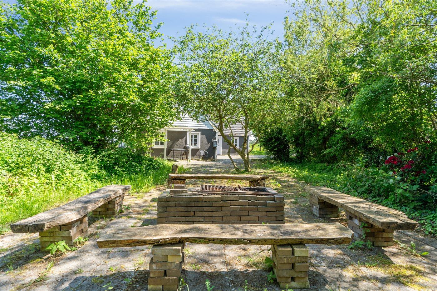 Großes Ferienhaus in ländlicher Umgebung nahe dem Gyldensteen Strand mit Naturgarten und Lagerfeuerstelle.