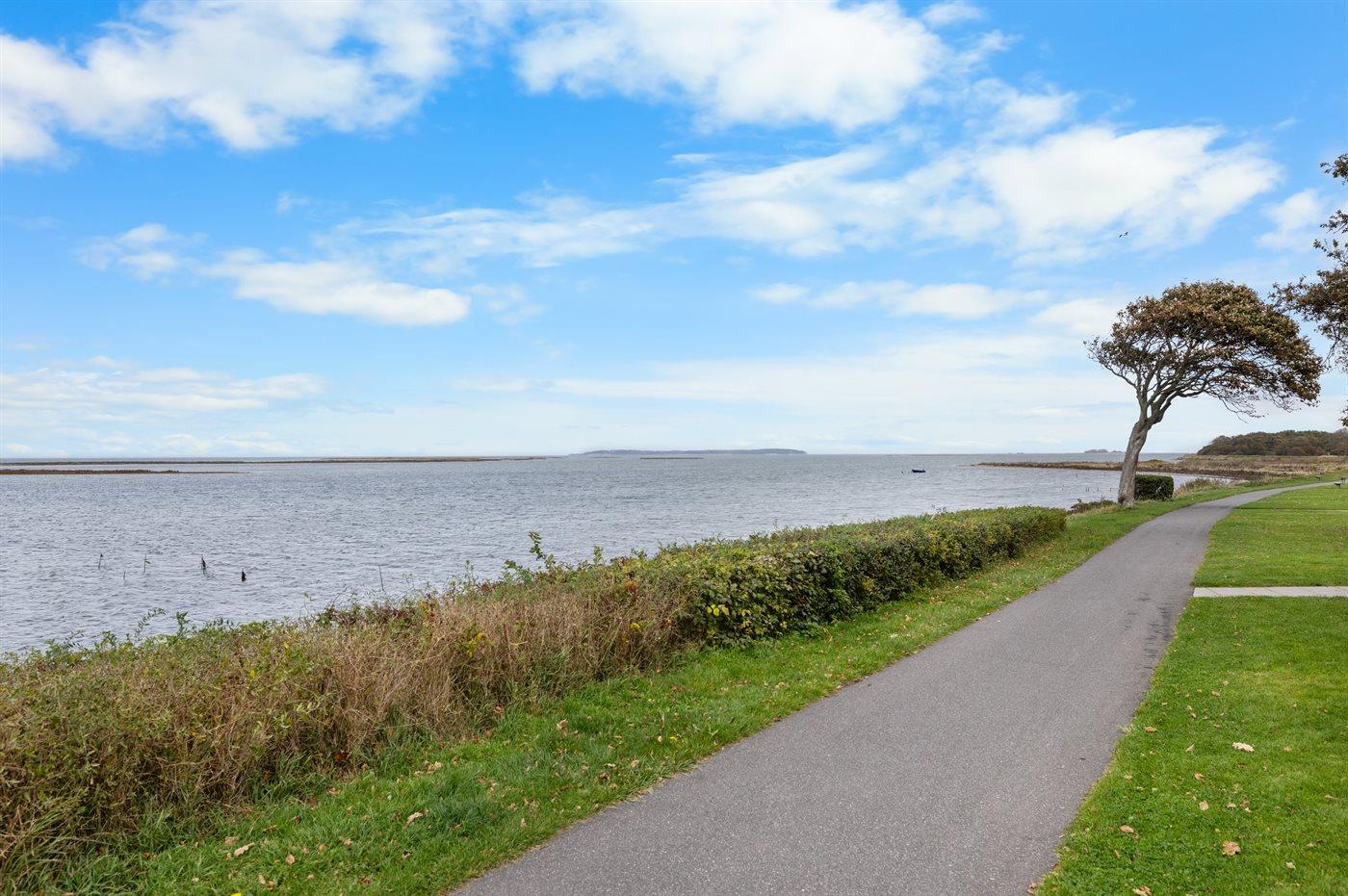 Von der Terrasse aus hast du einen Blick über das Wasser, und es ist nicht weit bis zur Stadt Bogense, zum Yachthafen mit Restaurants usw. oder zum Strandbad am Ende des alten Fischereihafens.