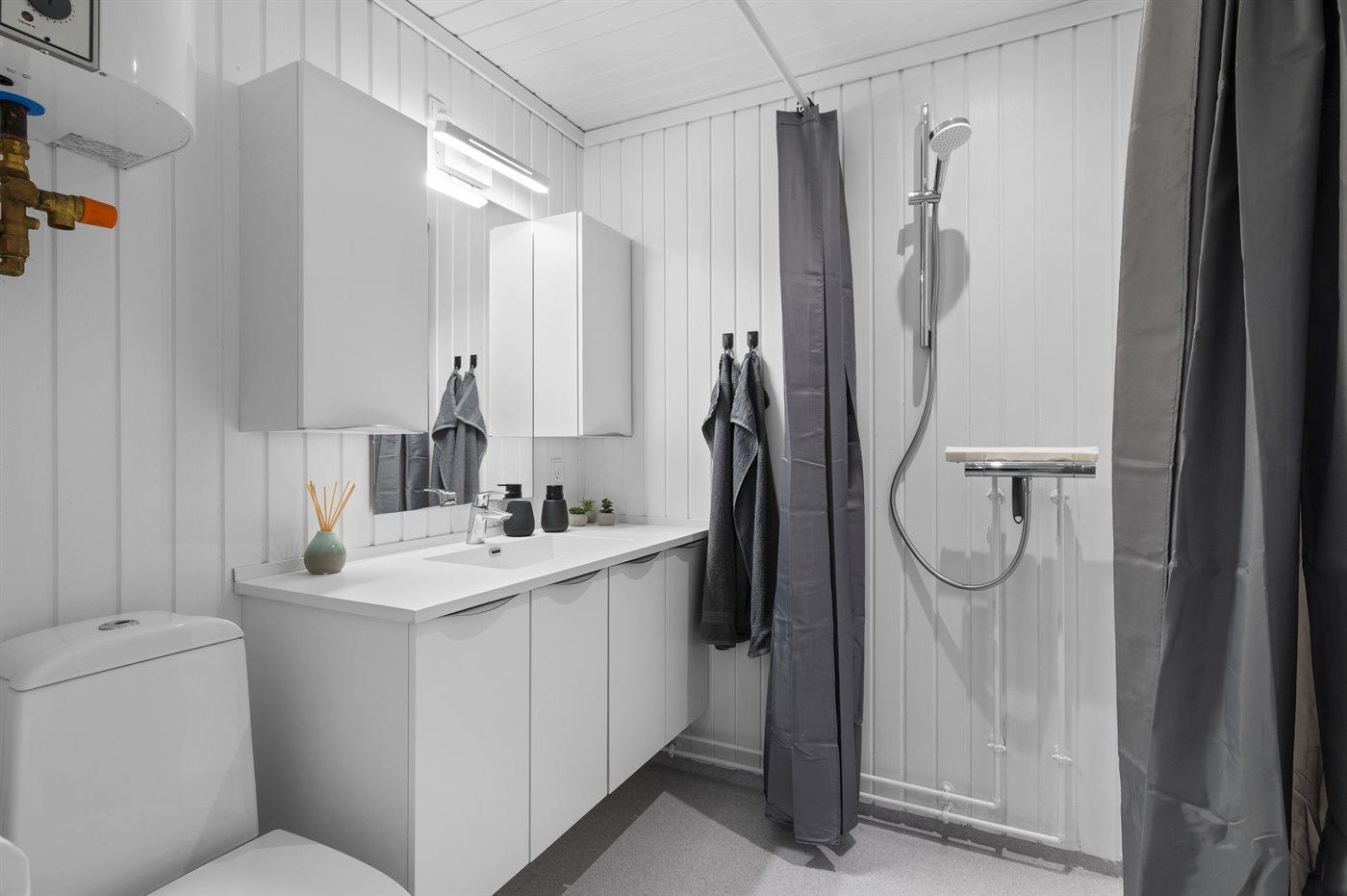 Es gibt 1 Badezimmer mit Dusche und 1 Toilette.