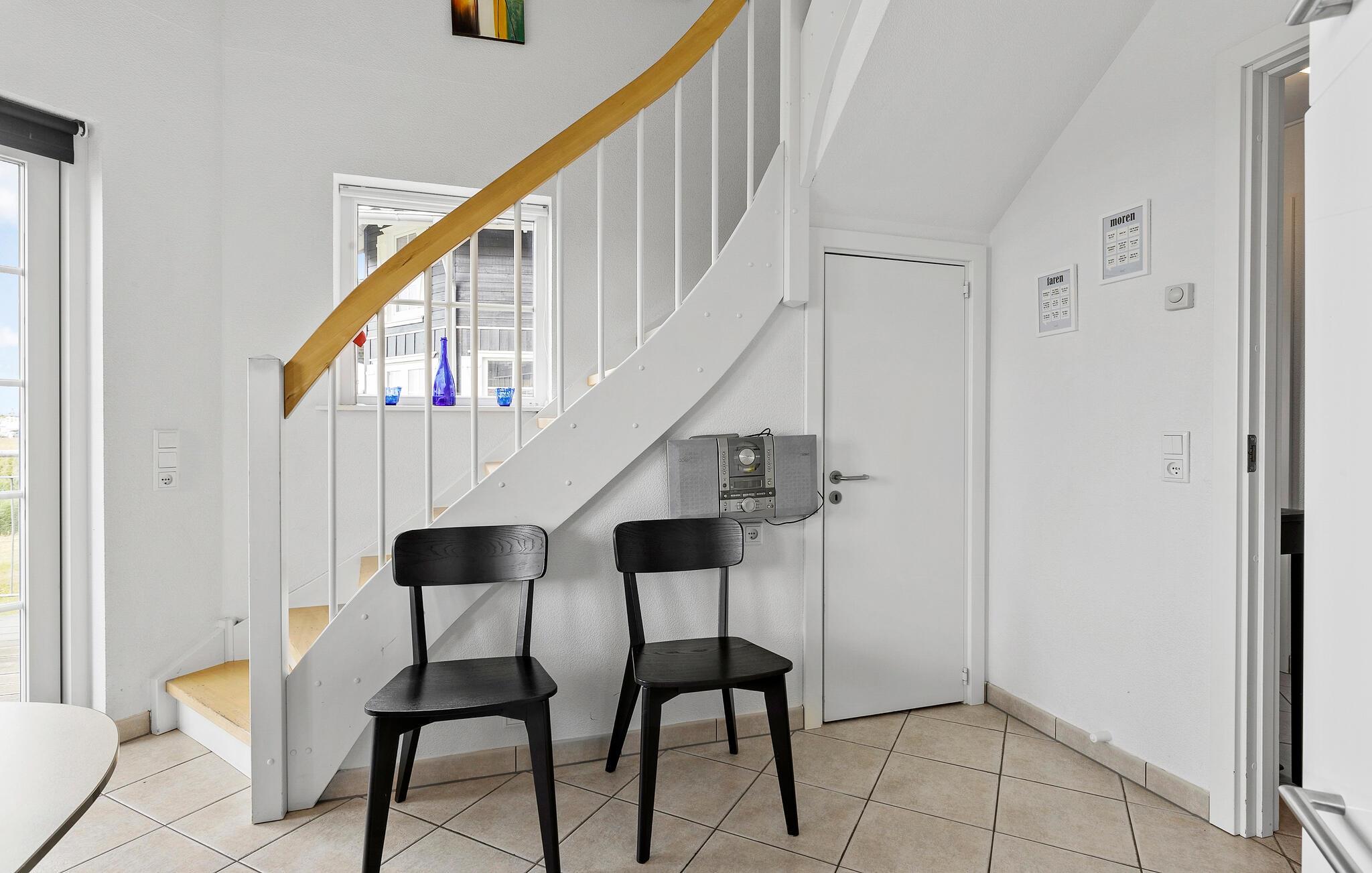 Genießen Sie bei schönem Wetter den ersten Kaffee des Tages auf einem der zwei Balkone, jeder auf einer Etage. Sie wohnen nur einen kleinen Spaziergang vom Sandstrand entfernt, der im Sommer ein tägliches Ziel für sonnige Badeausflüge wird. Das ganze Jahr über lädt die Küste zu erfrischenden Spaziergängen ein. In der kühlen Jahreszeit finden Sie nachher wohlige Wärme im Whirlpool oder in der Sauna, oder Sie können sich vorm Kaminofen bei einem Tee gemütlich machen.